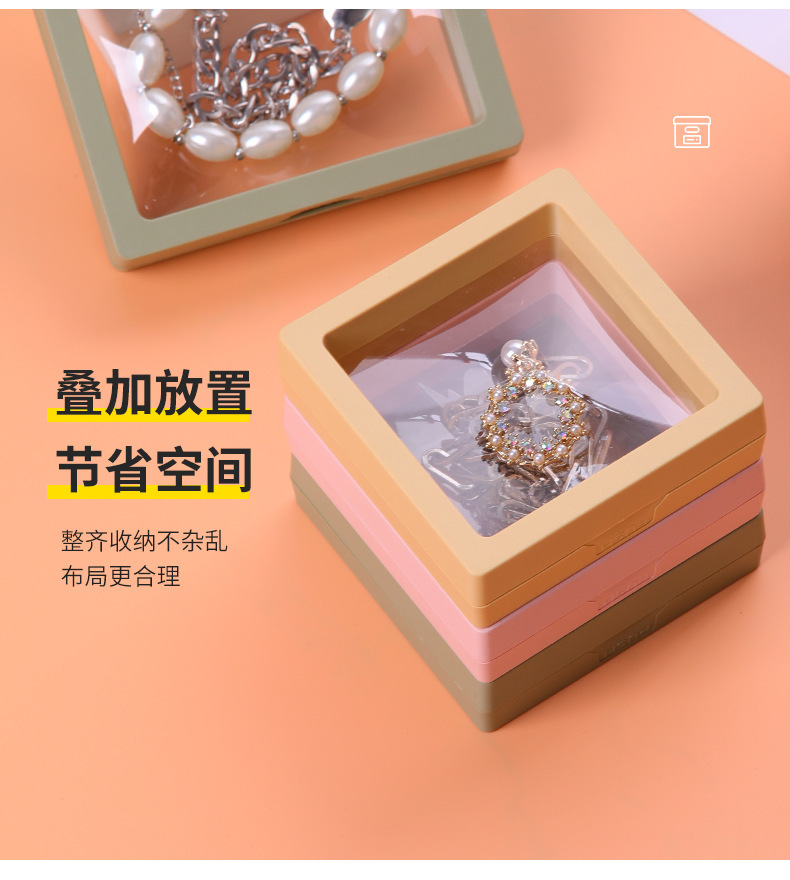 pe膜首饰盒收纳盒便携耳环戒指项链防氧化小精致饰品悬浮盒展示架