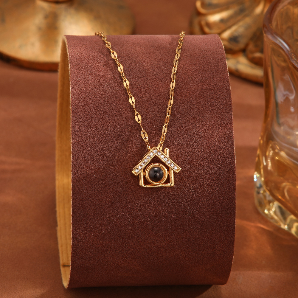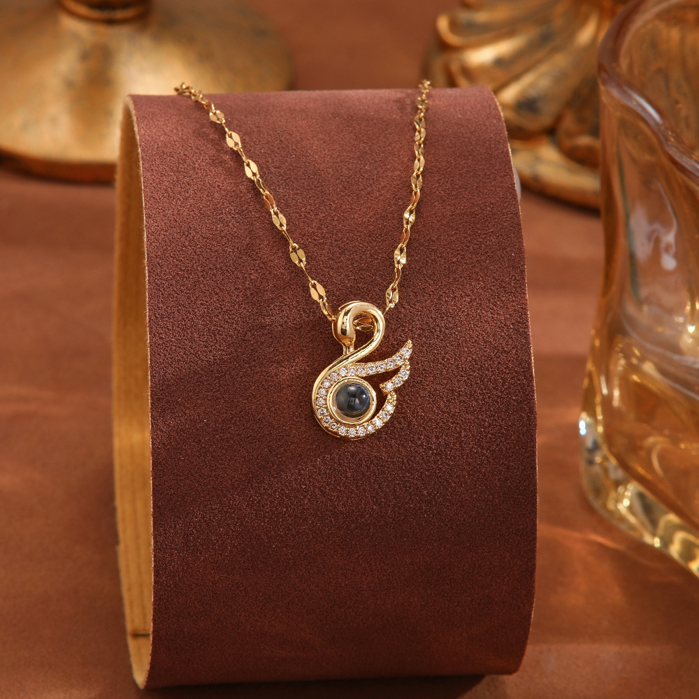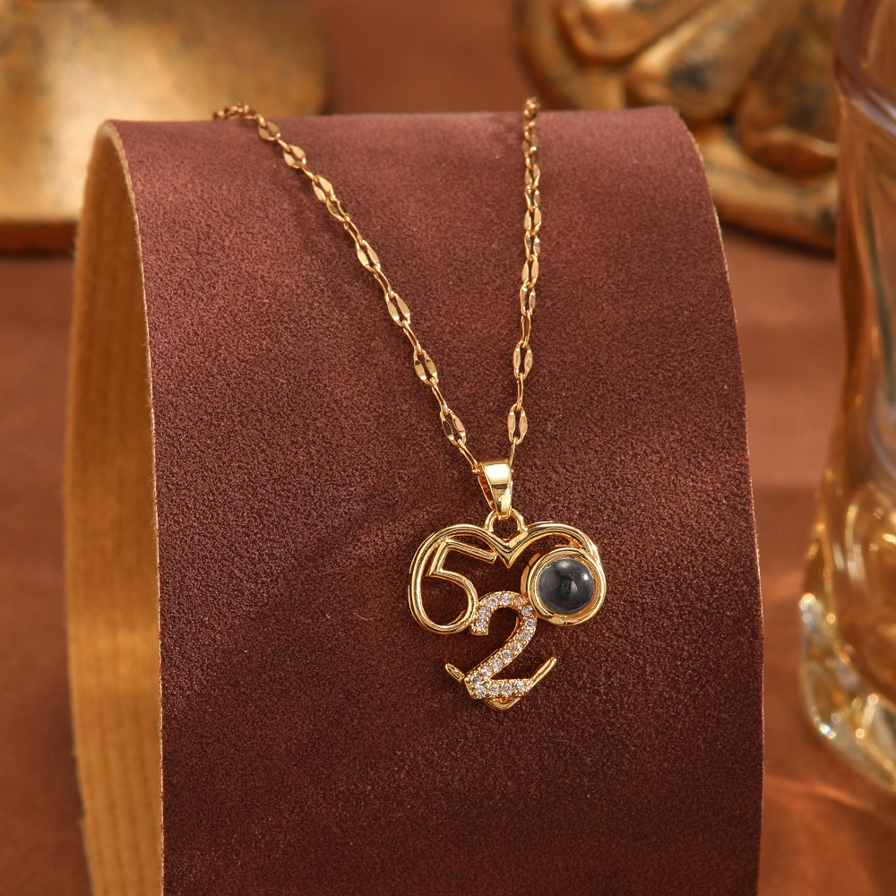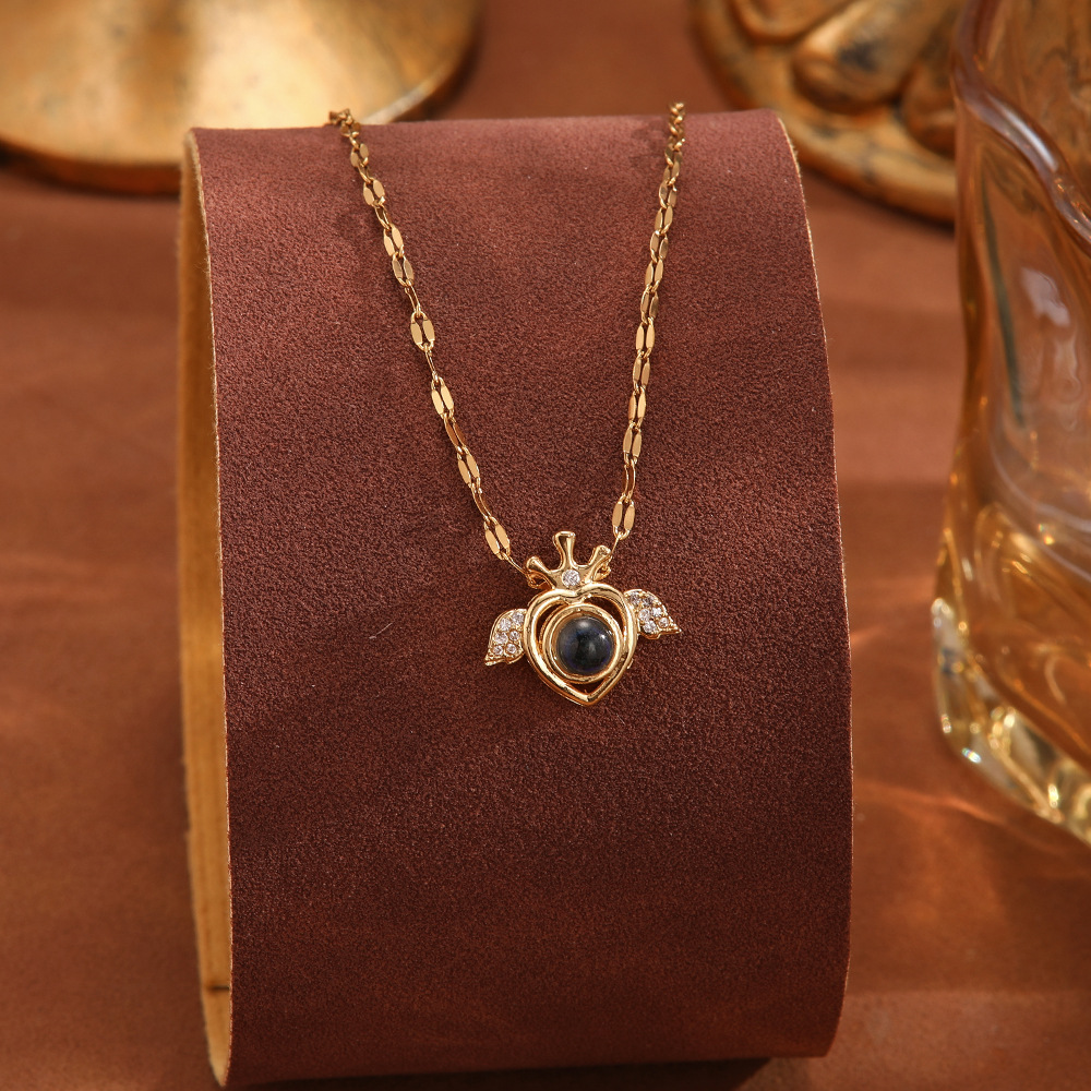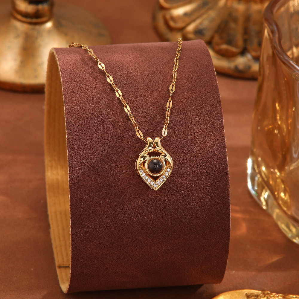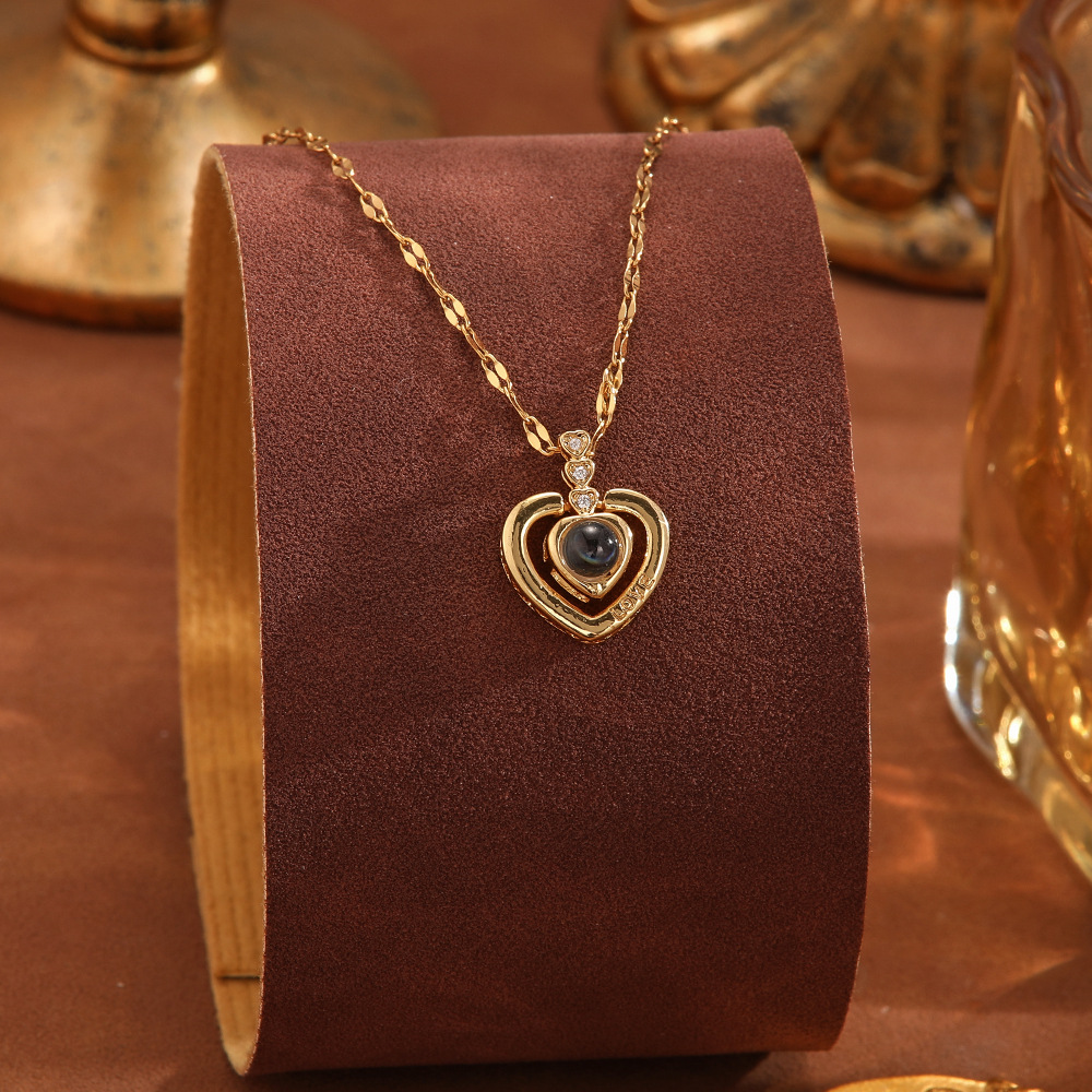跨境100种语言我爱你爱心投影项链不掉色清新甜美时尚优雅锁骨链