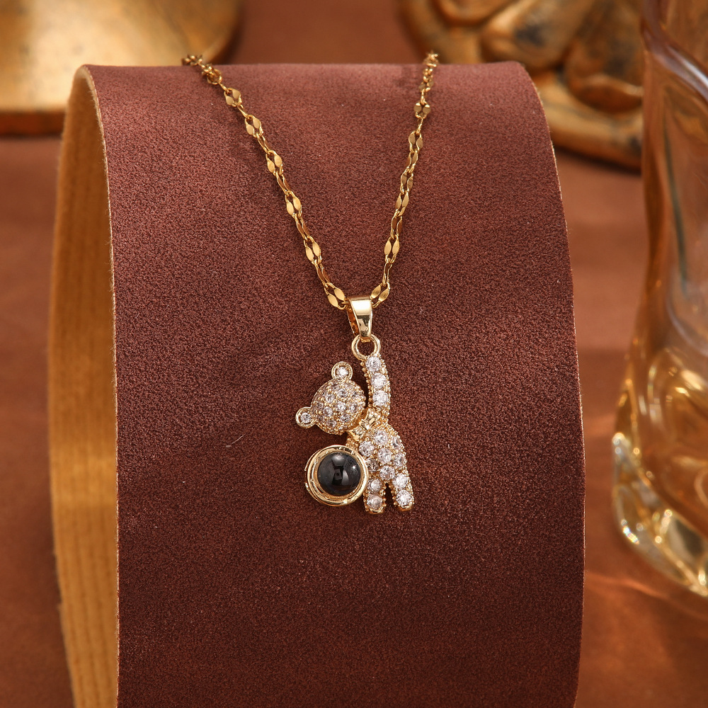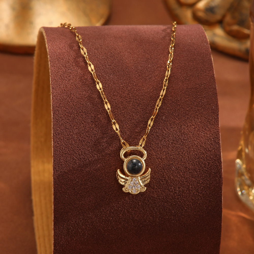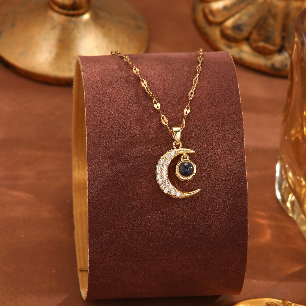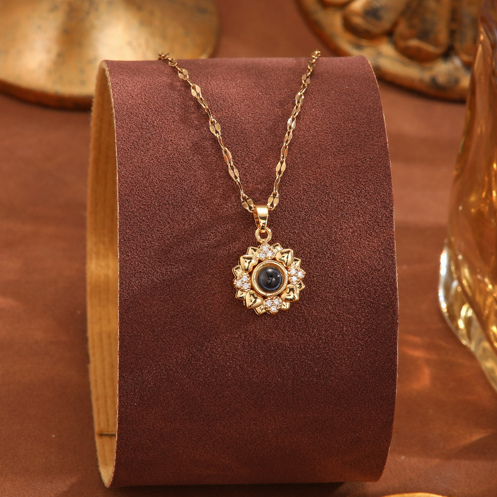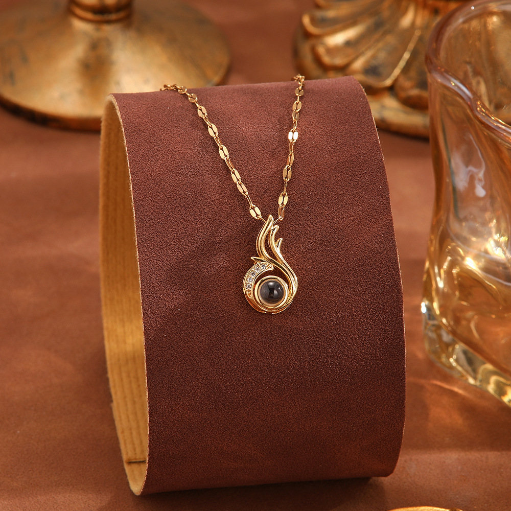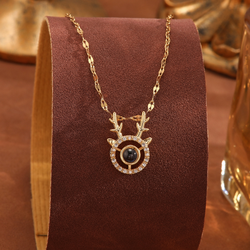 跨境100种语言我爱你爱心投影项链不掉色清新甜美时尚优雅锁骨链