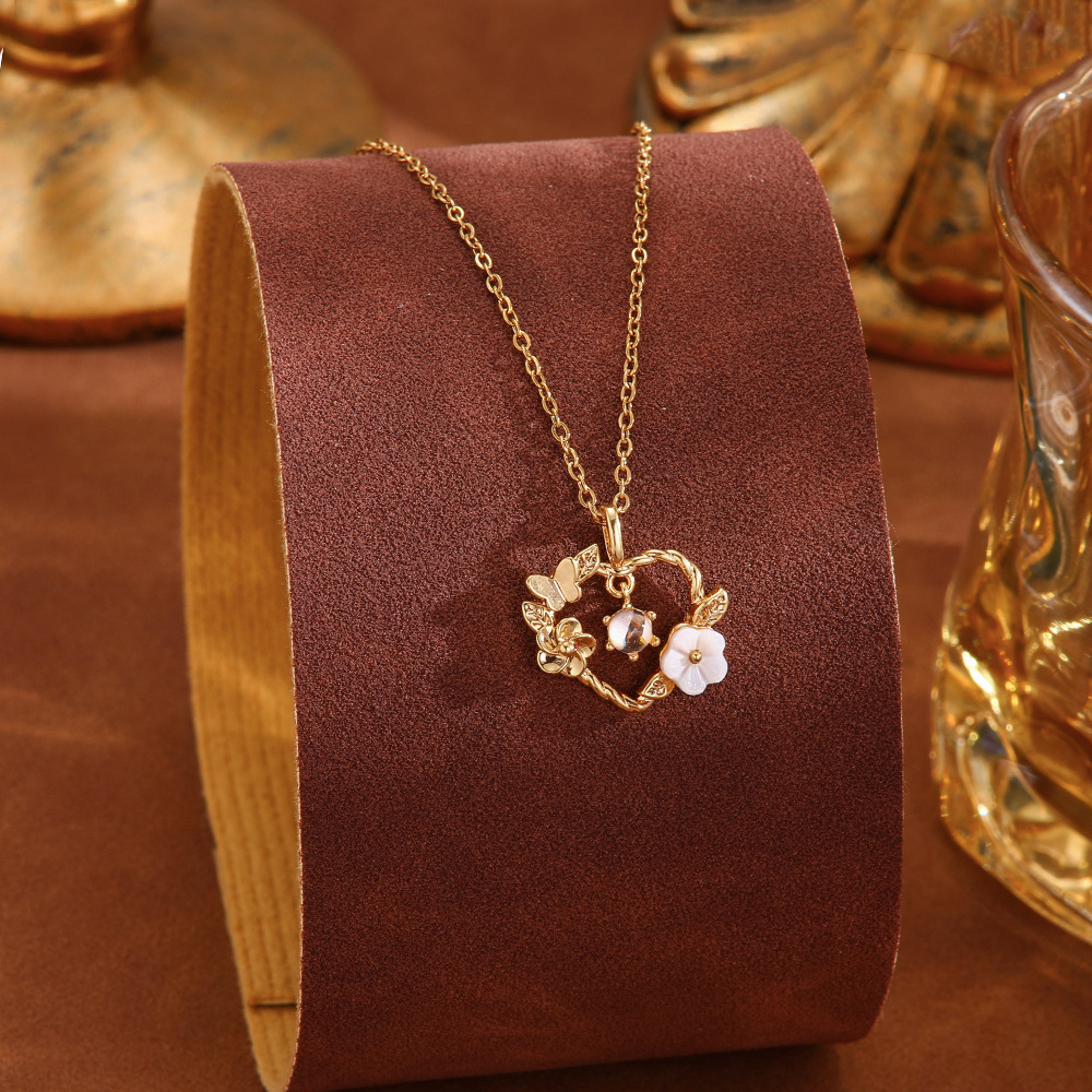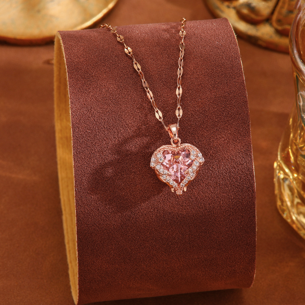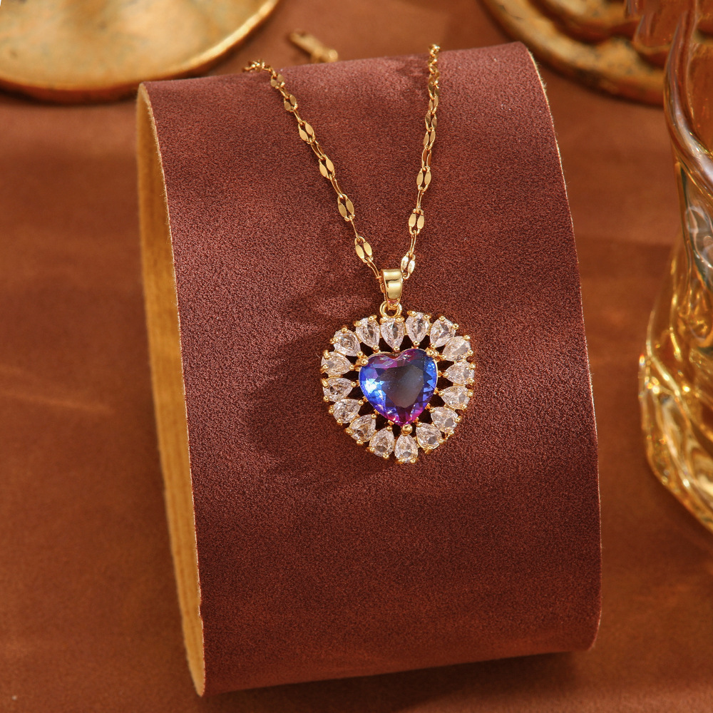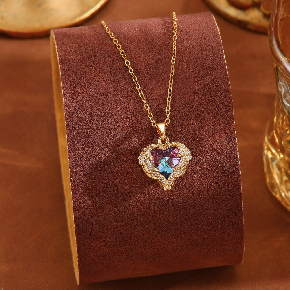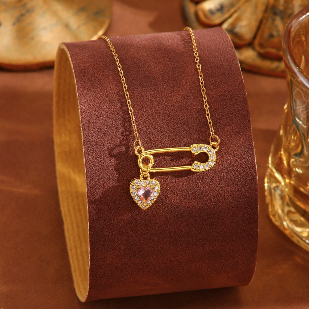 日韩风钛钢项链女百搭小众设计高级感轻奢锁骨链爱心吊坠饰品批发