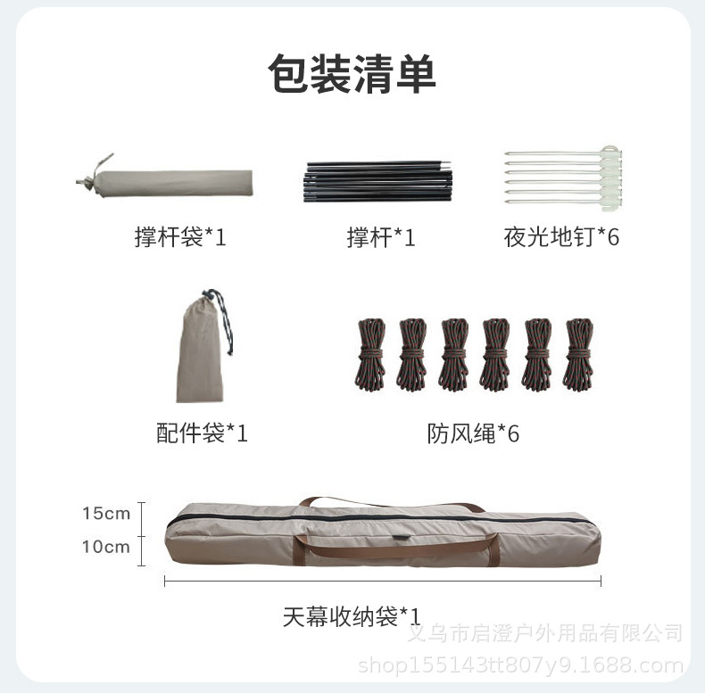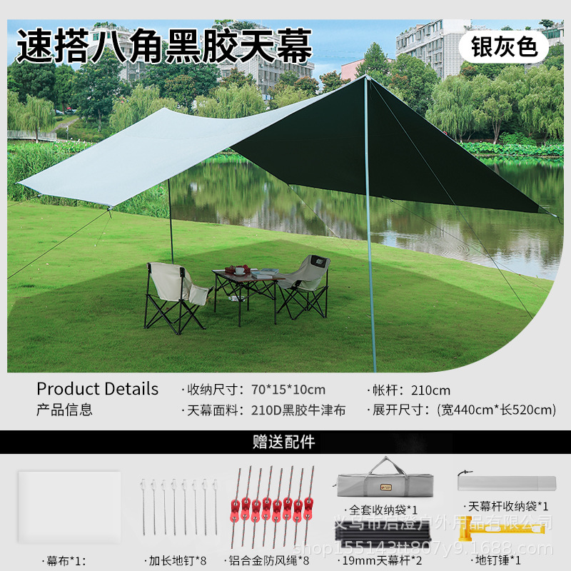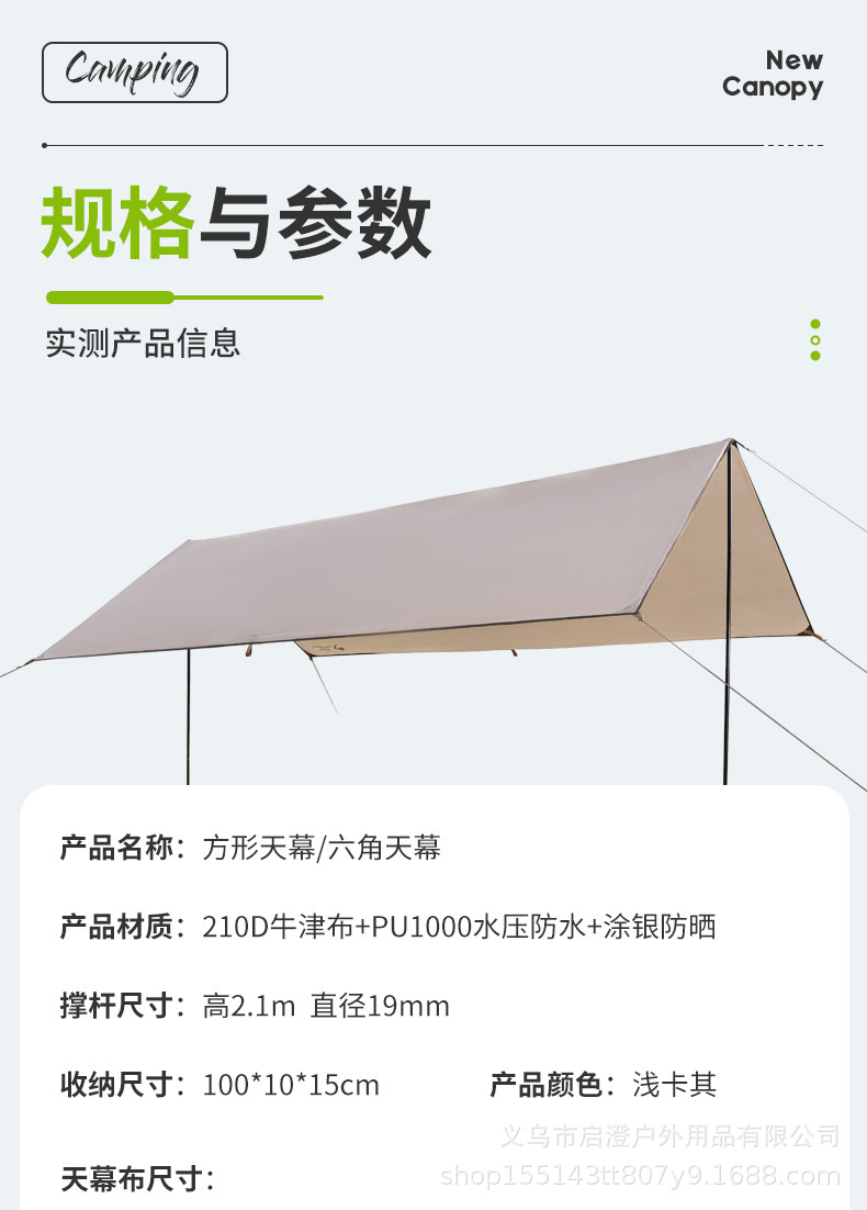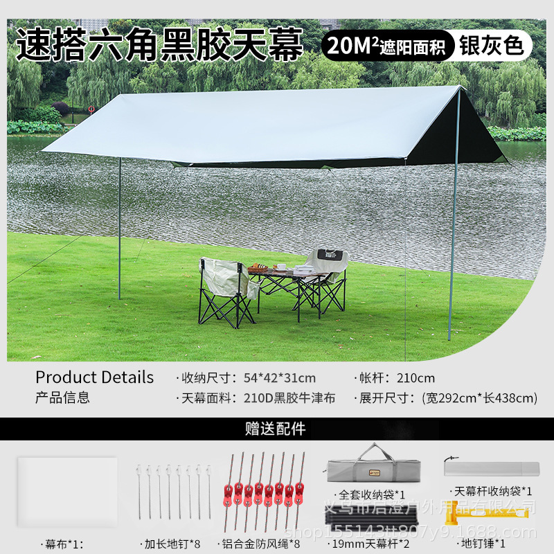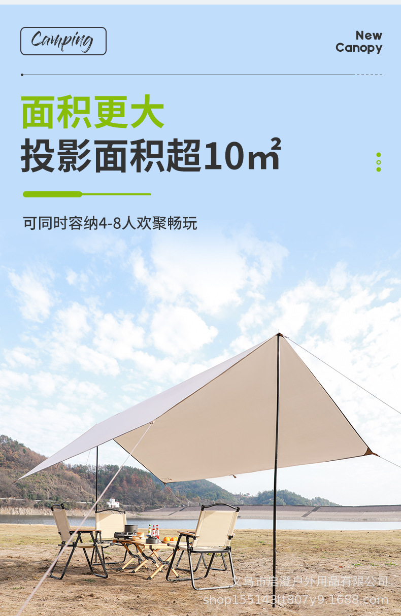 天幕户外露营帐篷涂银黑胶防晒防雨遮阳凉棚超轻便携式野餐露野营