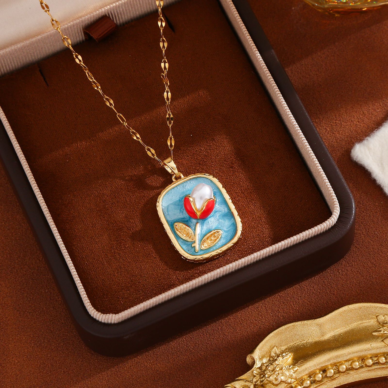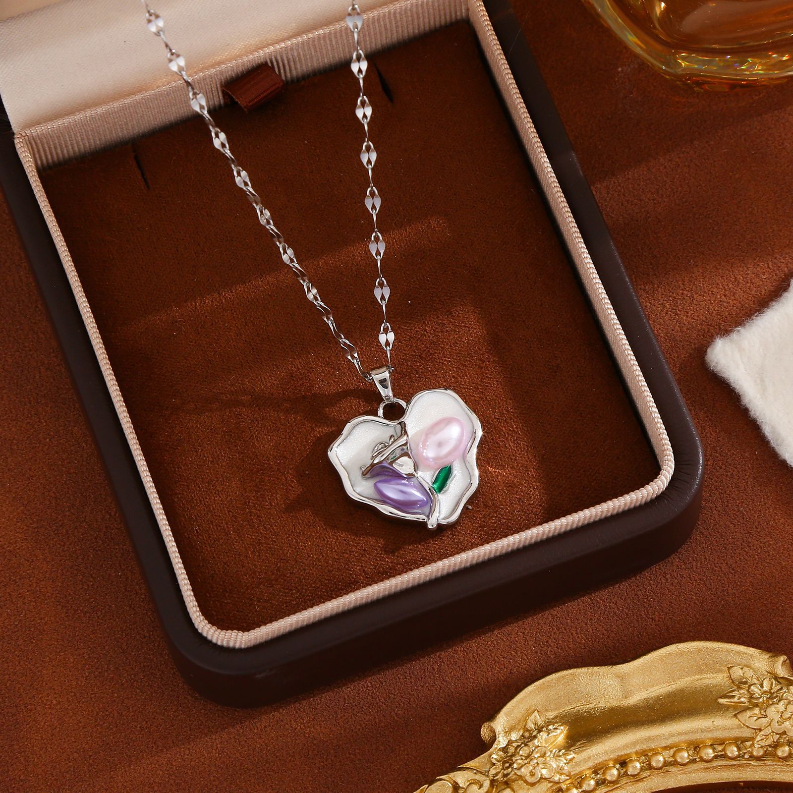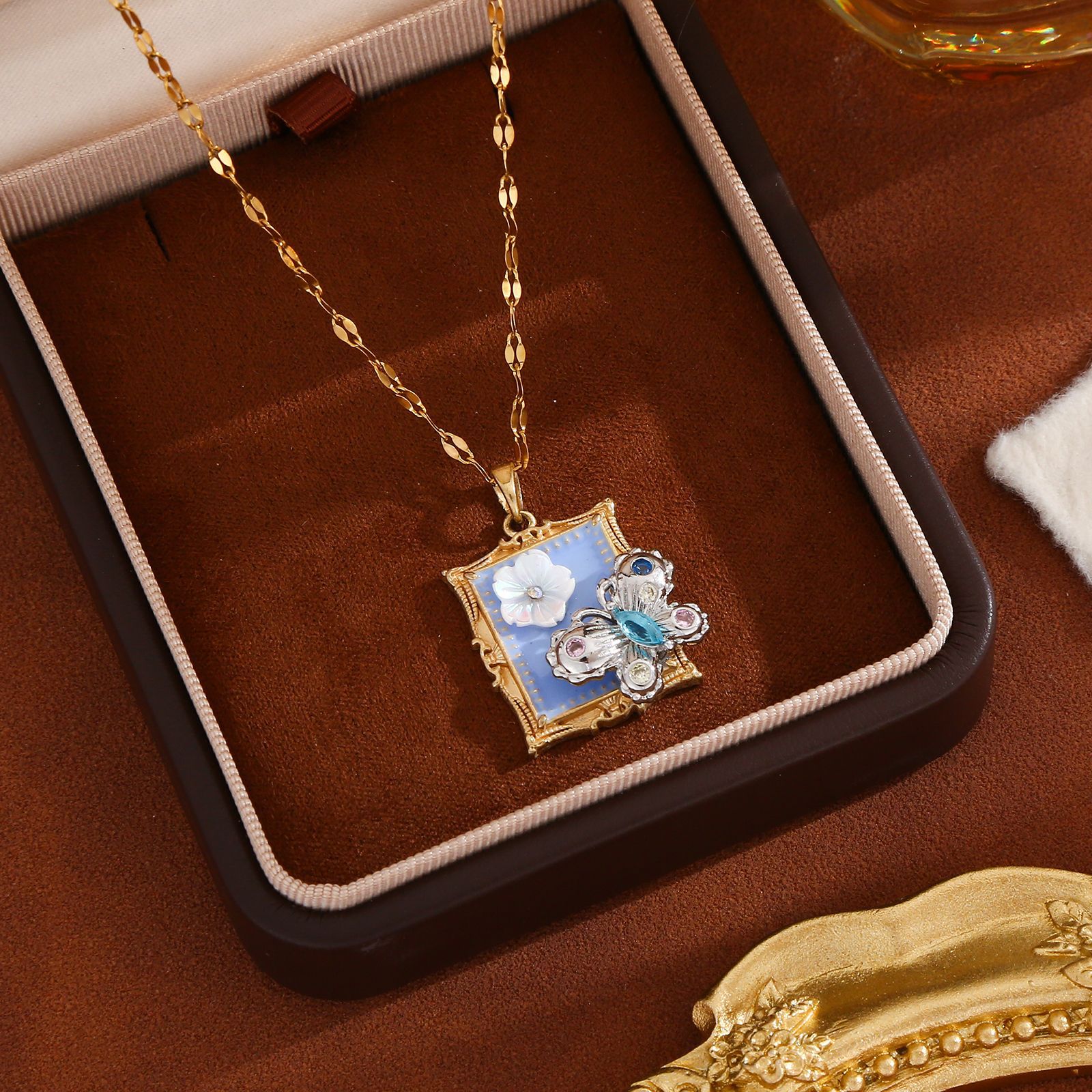 跨境莫奈花园油画风蝴蝶吊坠项链新法式高级感轻奢锁骨链首饰批发