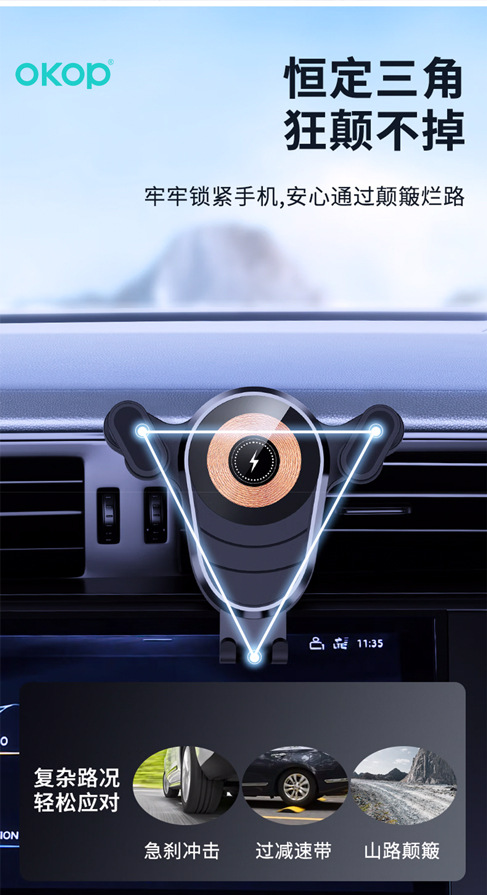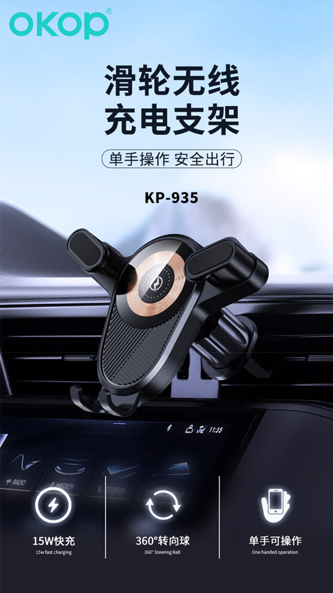 935车载手机支架无线充电15W快充360度自由调节导航汽车配件跨境