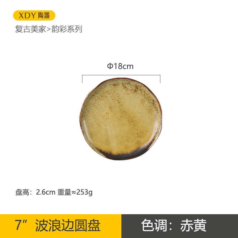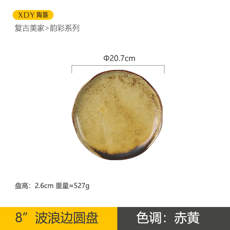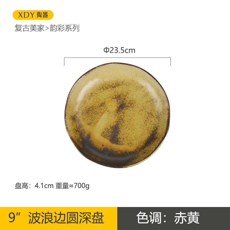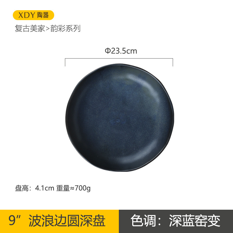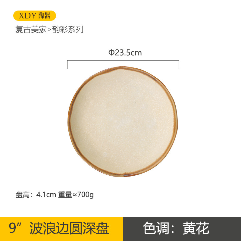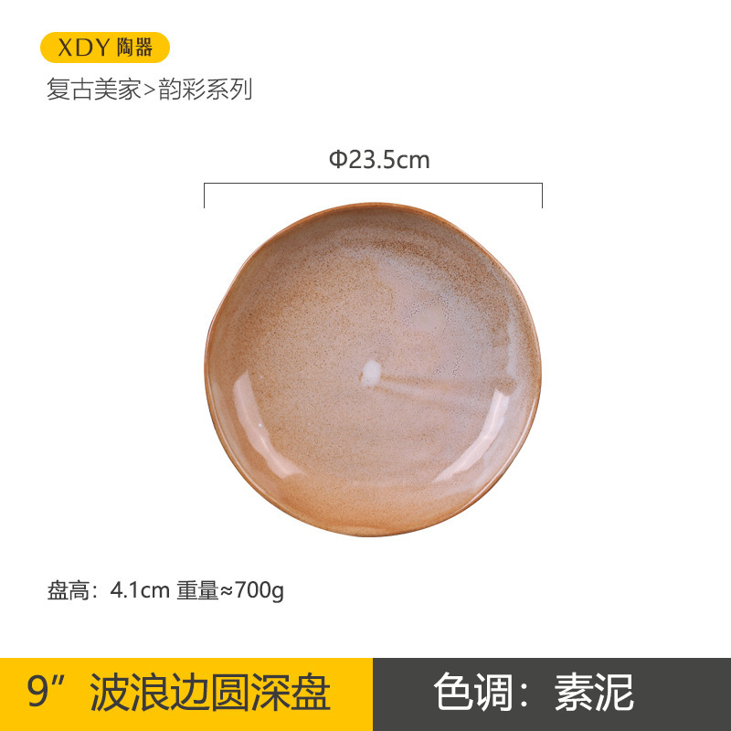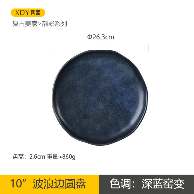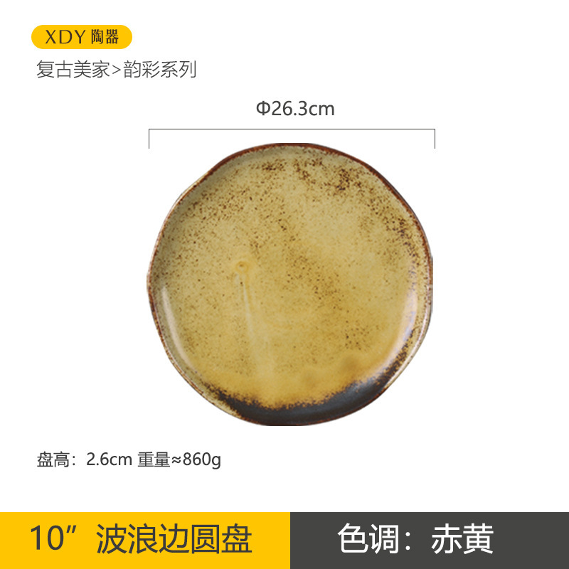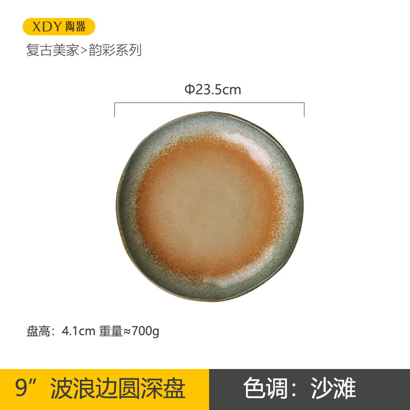 复古陶瓷盘子高颜值酒店餐具套装日系西餐盘可微波炉圆形沙拉碗碟