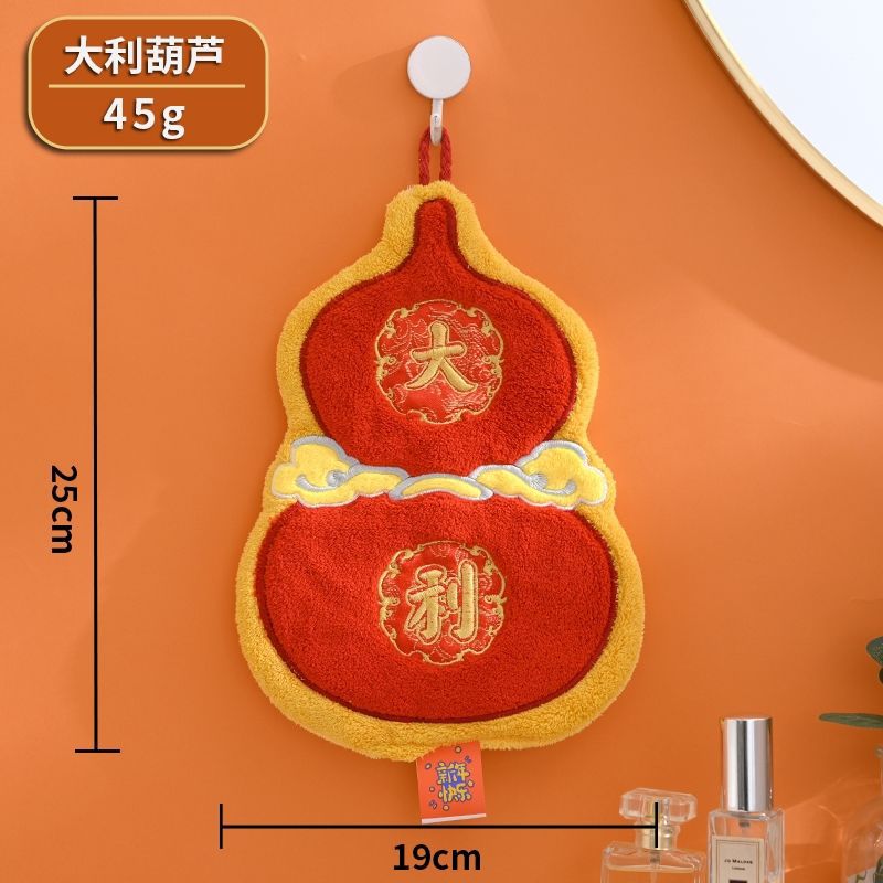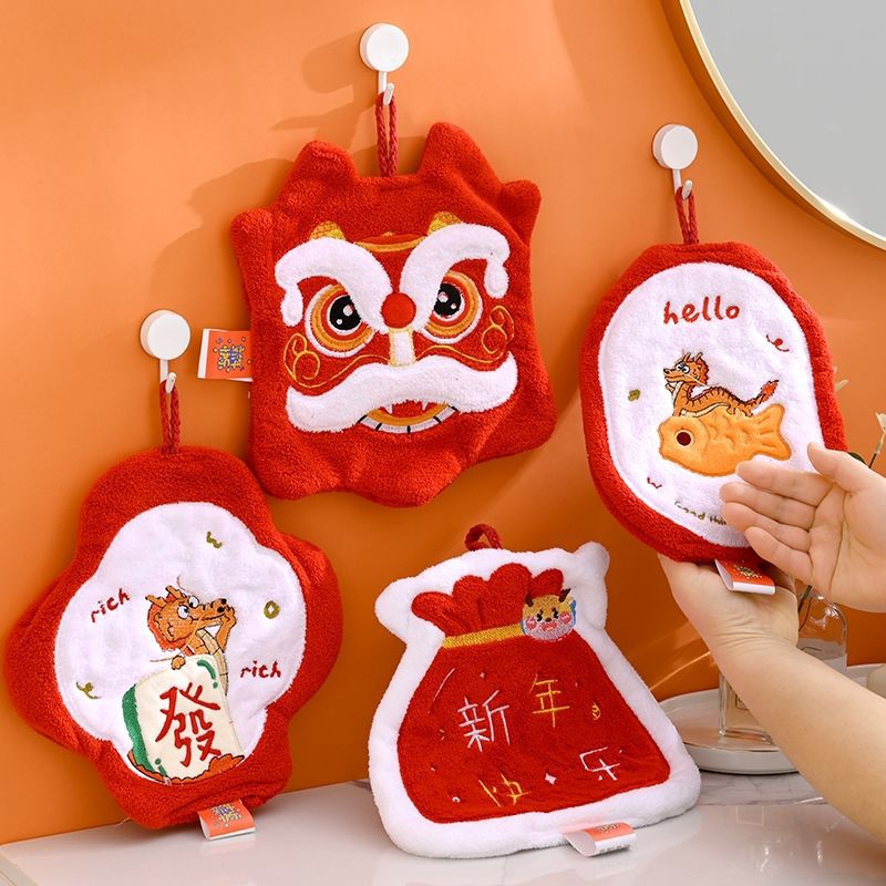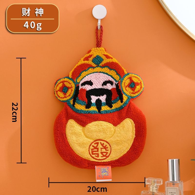 红色结婚擦手巾伴手礼可挂式小毛巾福财神喜庆珊瑚绒手帕面巾速吸