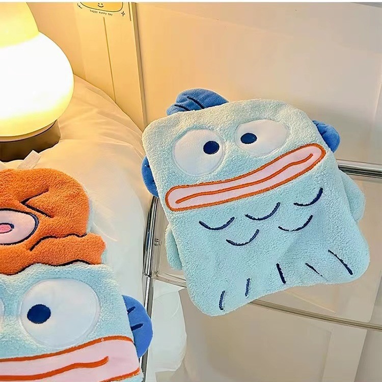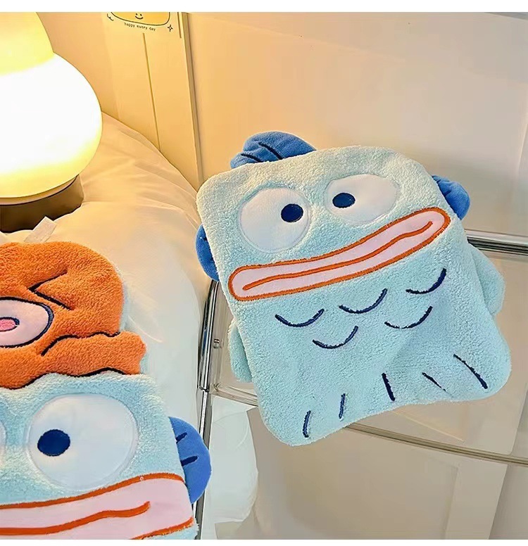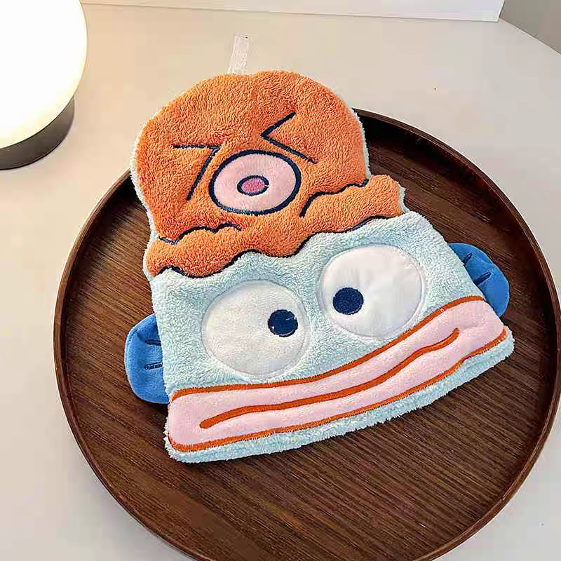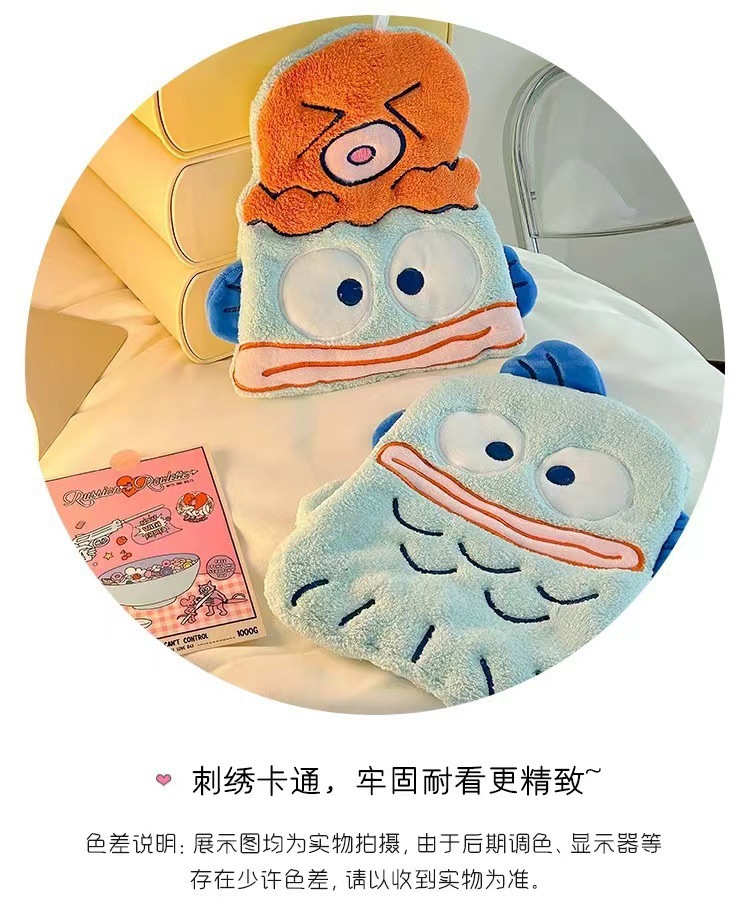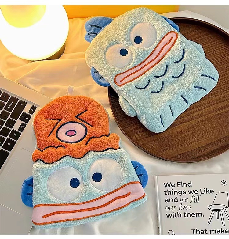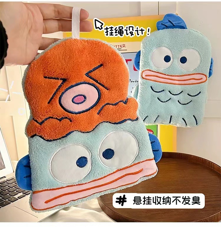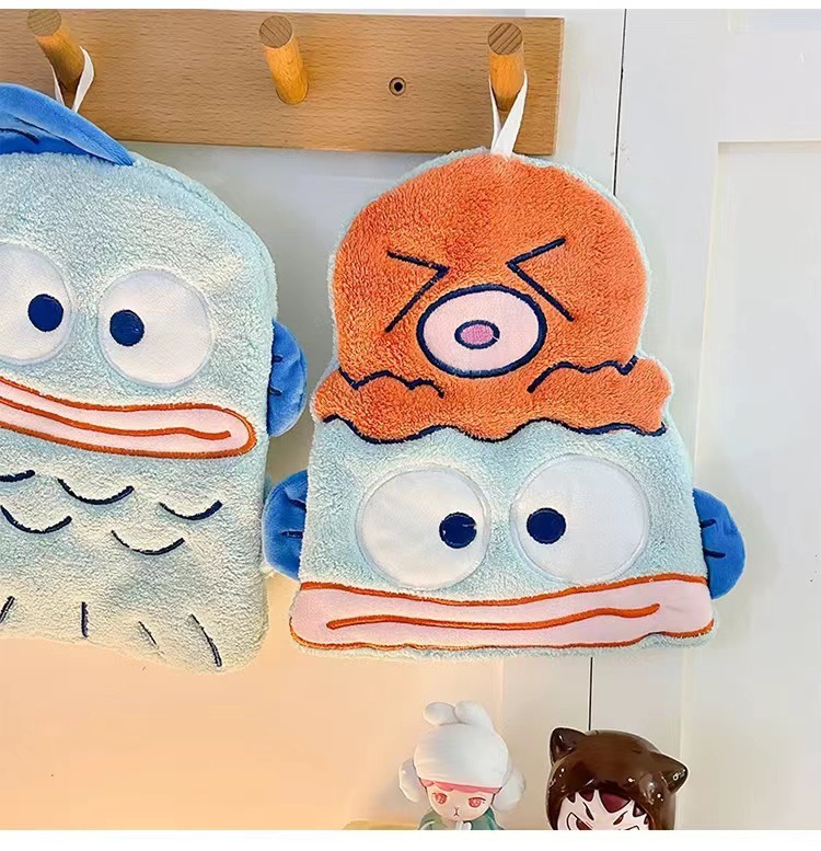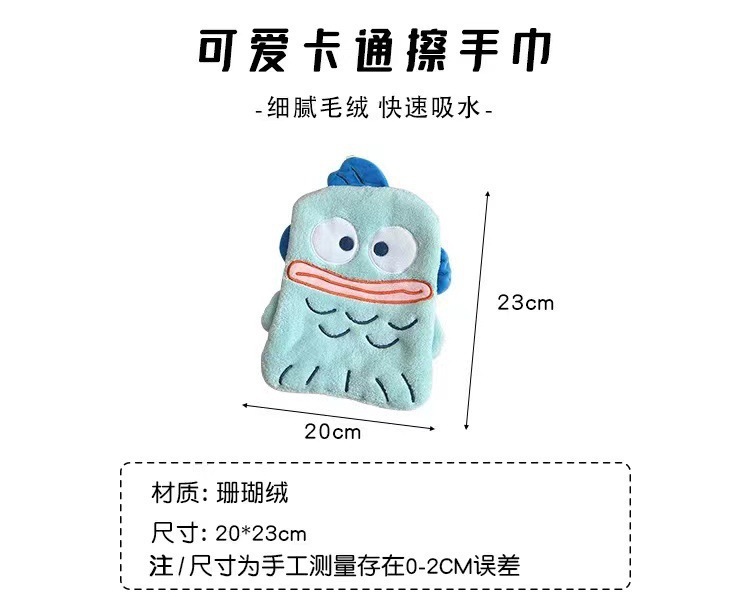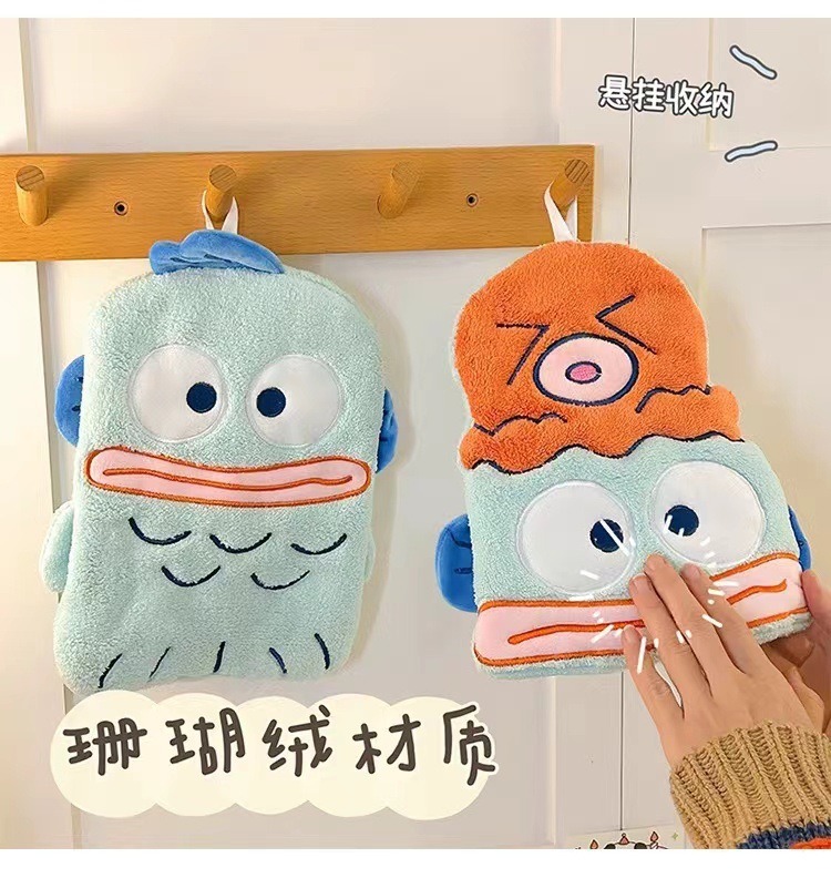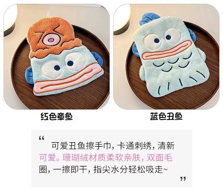 卡通丑鱼擦手巾珊瑚绒吸水速干儿童擦手小方巾章鱼可挂不臭擦手布