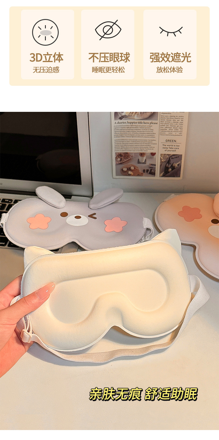 可爱儿童眼罩专用女士遮光睡眠学生午休舒适冰丝眼睛罩