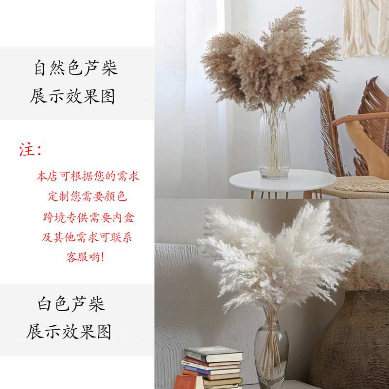 跨境爆头原色芦柴干花婚庆布置小蒲苇装饰摄影道具白色小芦苇花束