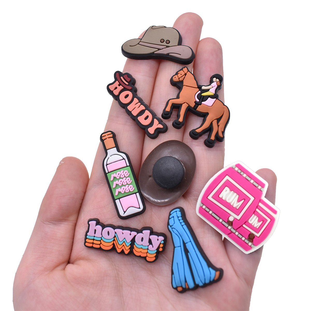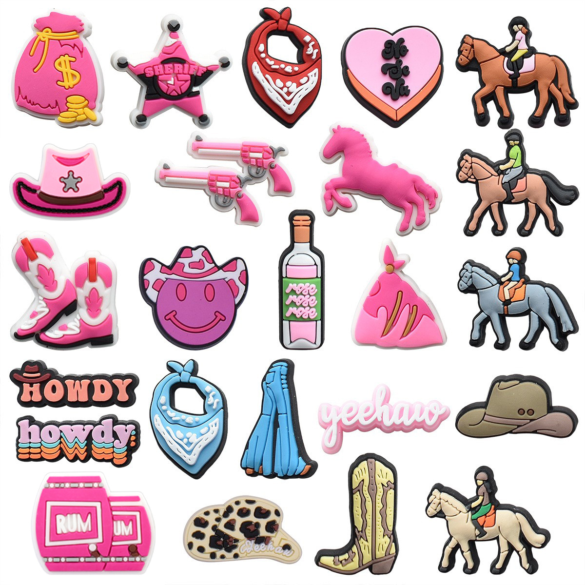 创意ins风西部牛仔鞋花鞋面装饰洞洞鞋配饰 卡通pvc鞋扣鞋花现货