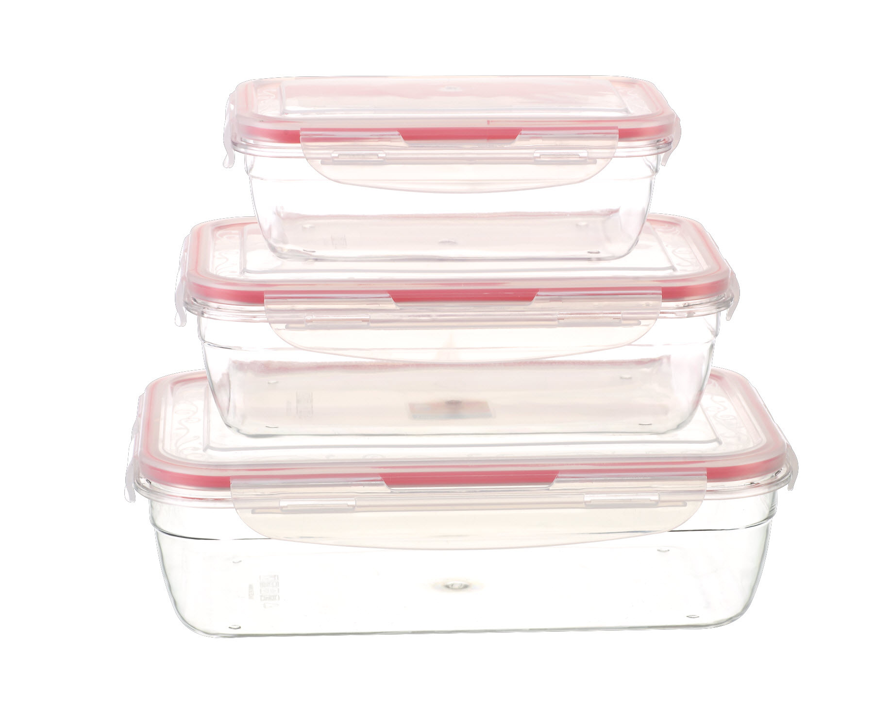 长方形塑料三件套保鲜盒PET密封罐塑料方形保鲜盒