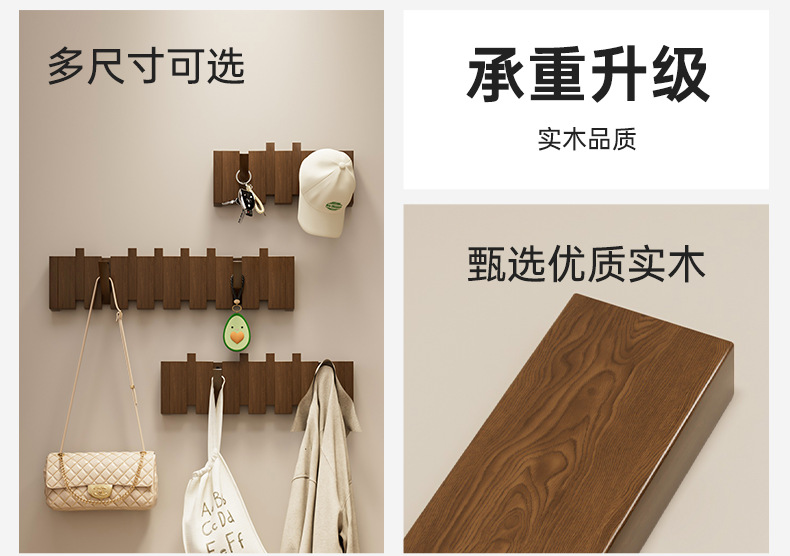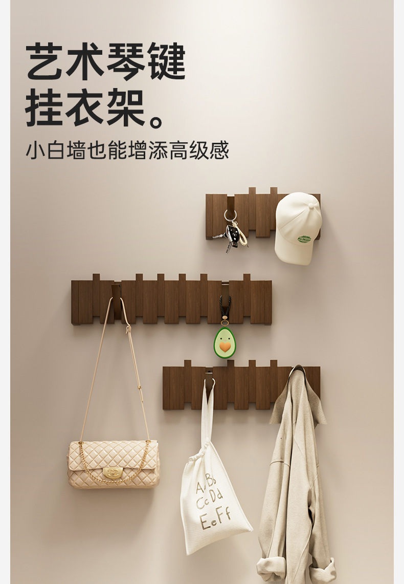 多功能实木钢琴键挂衣架壁挂衣帽架进门磁吸挂衣钩免打孔不占空间