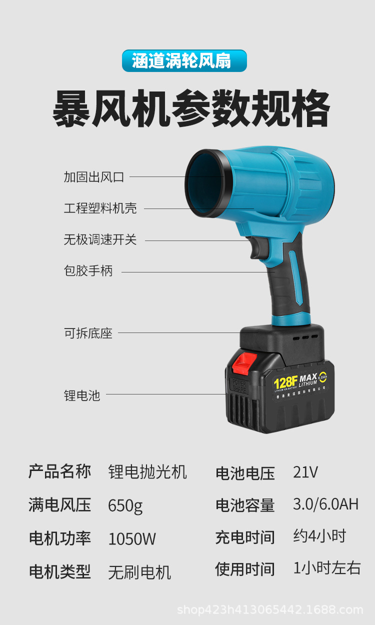 无刷飓风涵道暴力风扇洗车吹水除尘充电大功率涡轮吹水吹风机鼓风