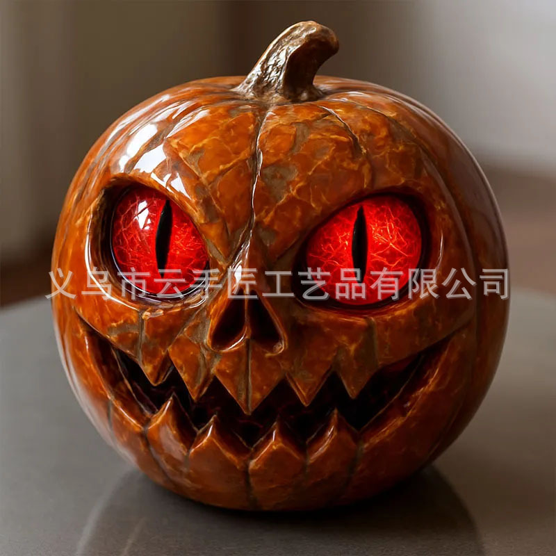 跨境新品Red-Eyed Pumpkin Figurine万圣节红眼南瓜小雕像道具