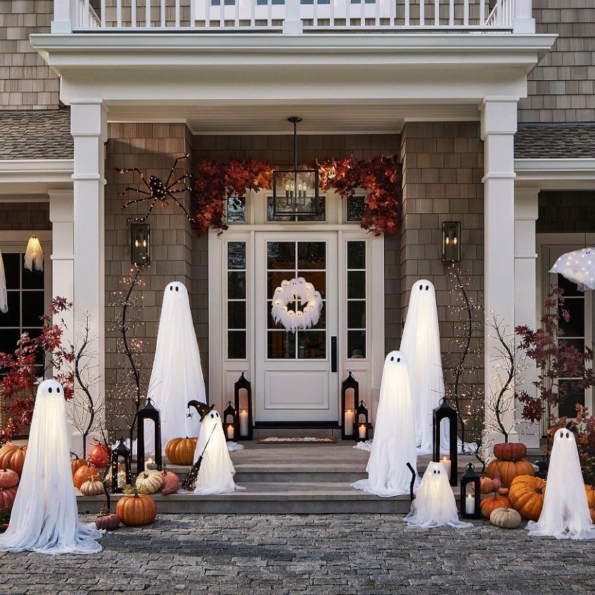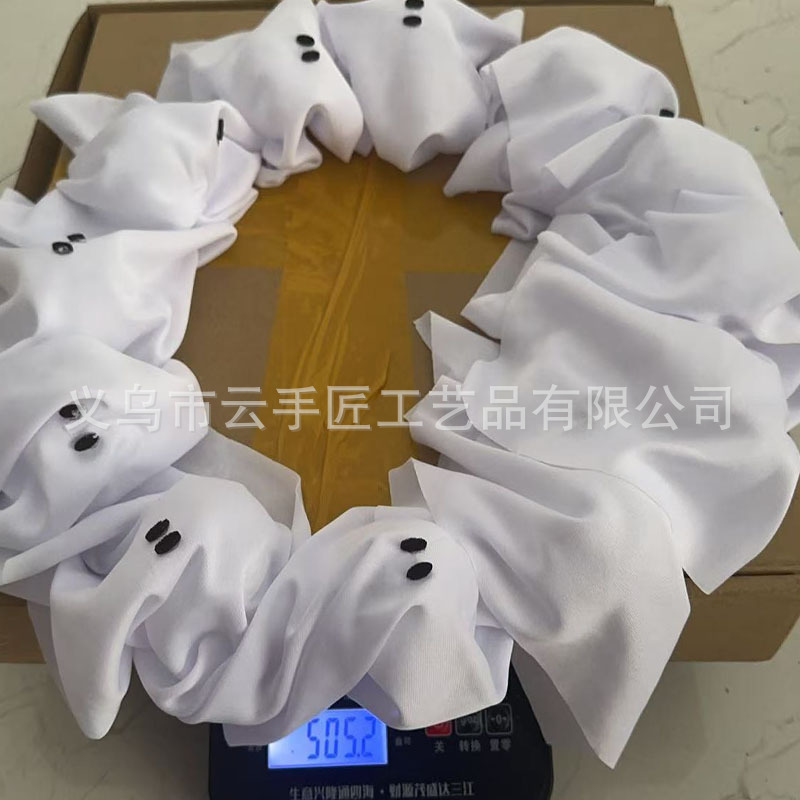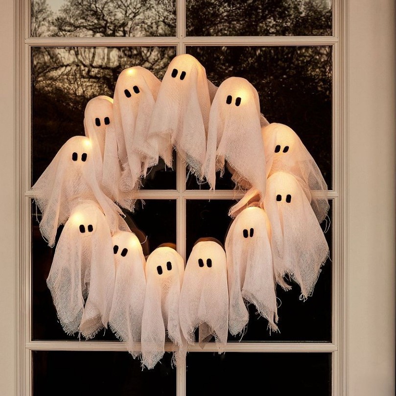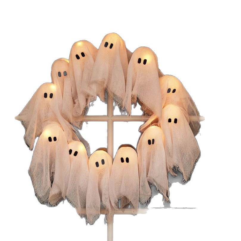 跨境TK热销Lit Ghosts Wreath万圣节点亮幽灵花环前门布置挂件