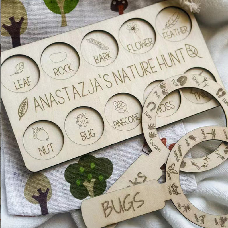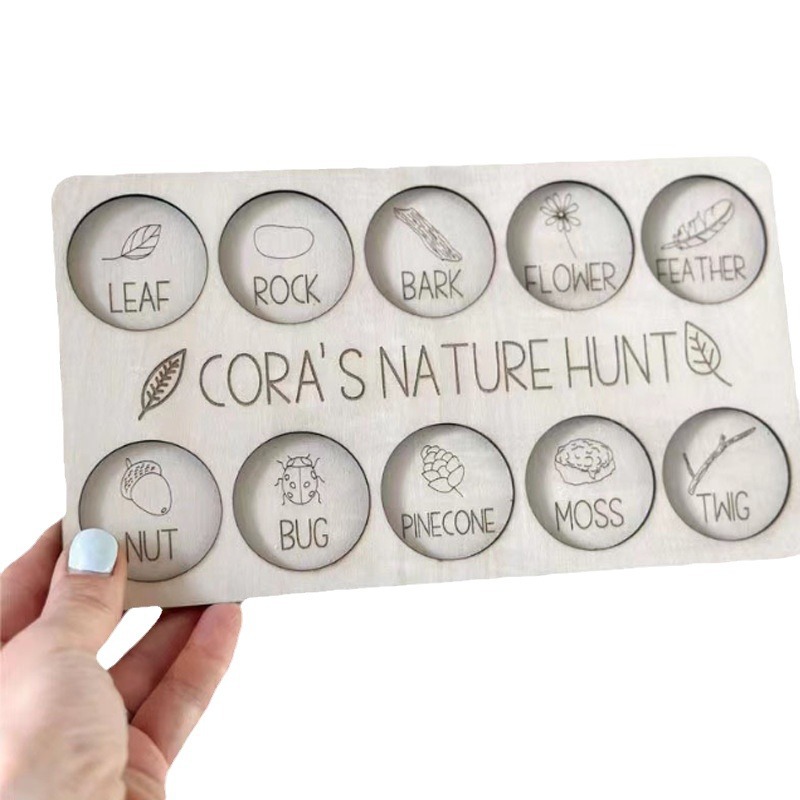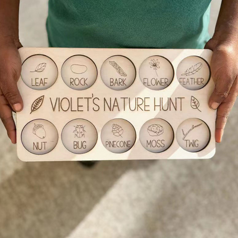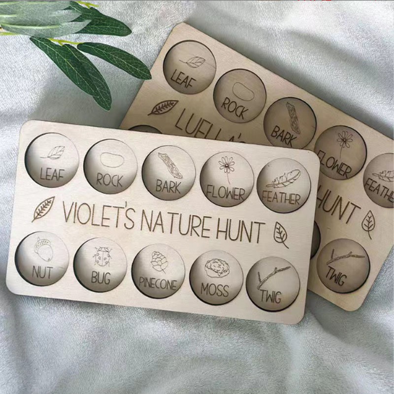 跨境新款Custom Nature Scavenger Hunt Gift 创意木质自然寻宝牌