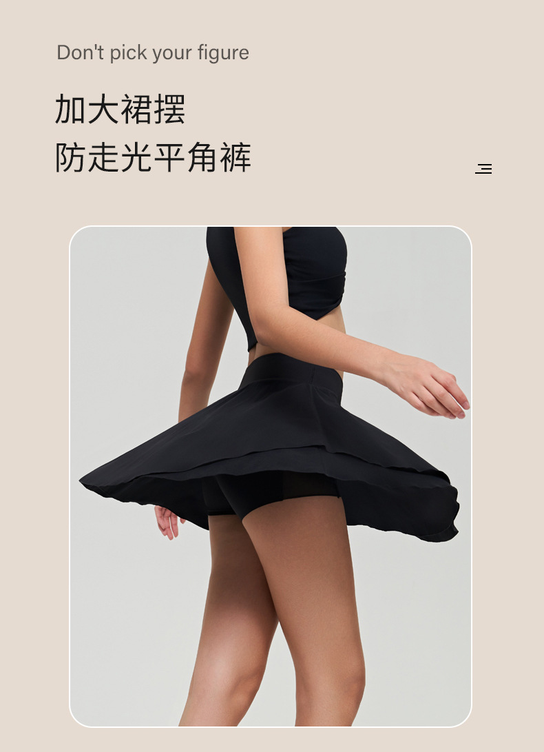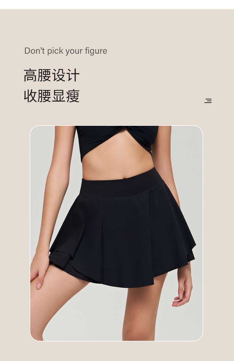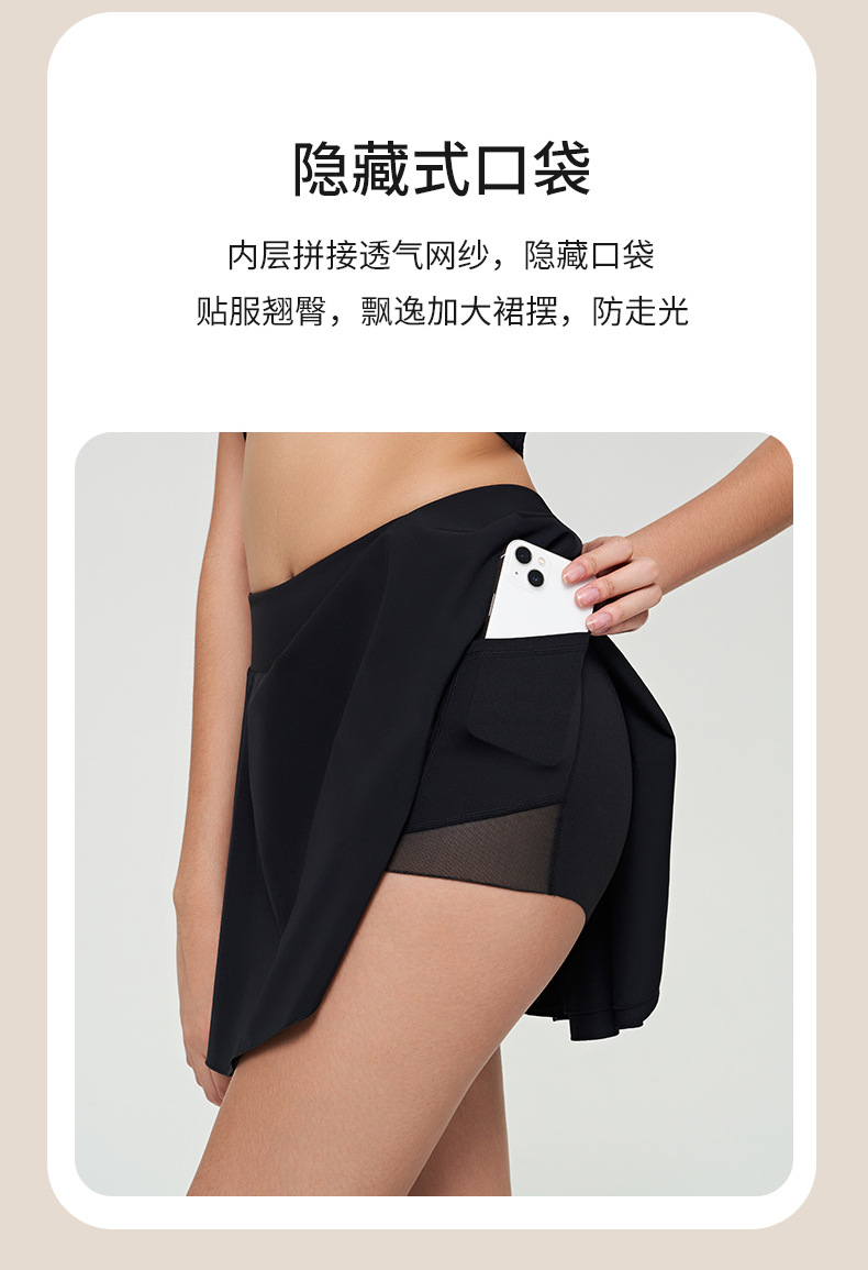 防走光假两件高腰网球裙运动短裙夏季羽毛球透气健身裸感速干女