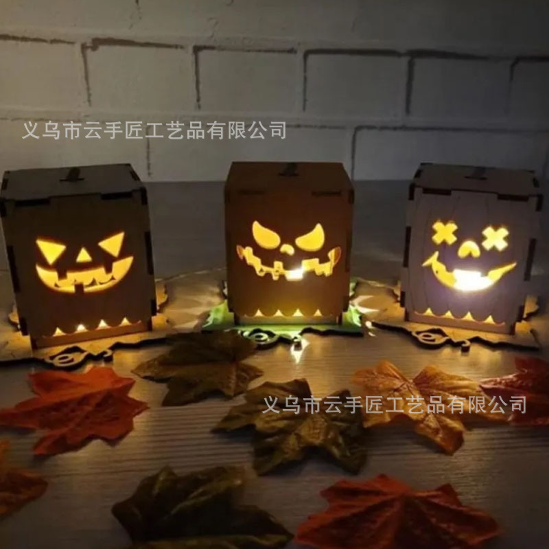 跨境新品Halloween Decoration ligh家具万圣节木质装饰灯光摆台