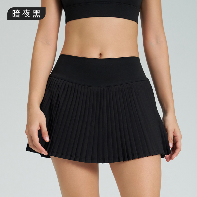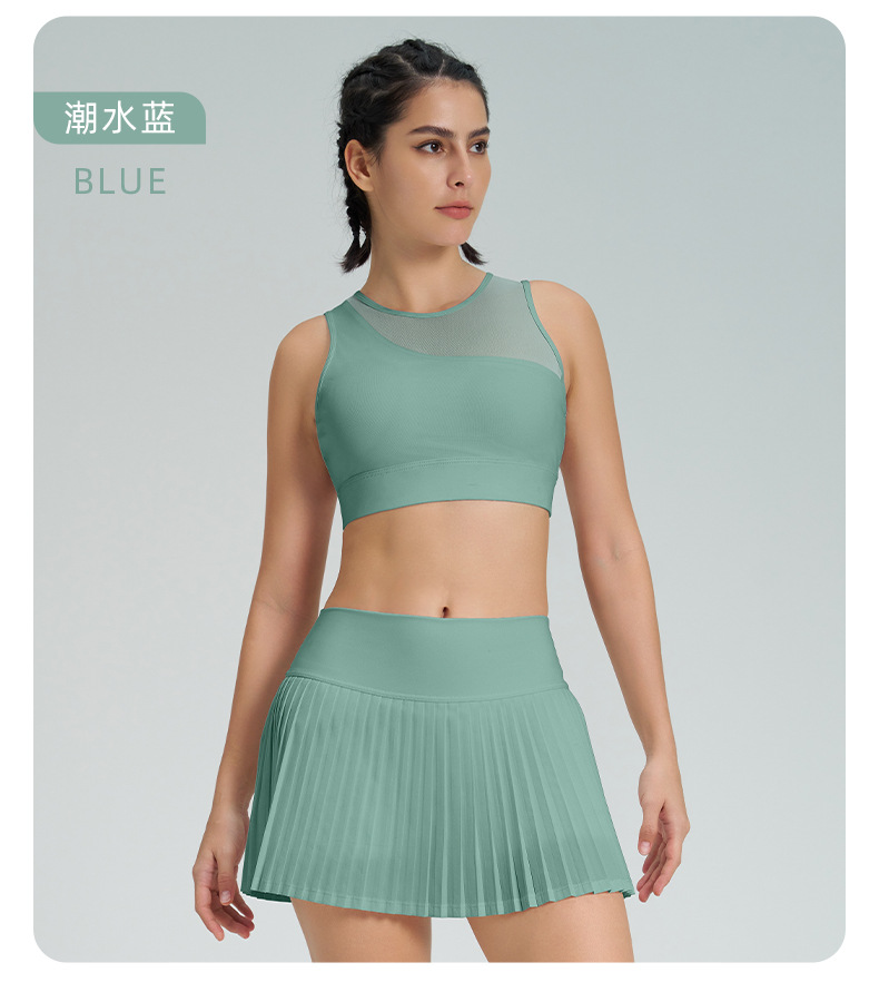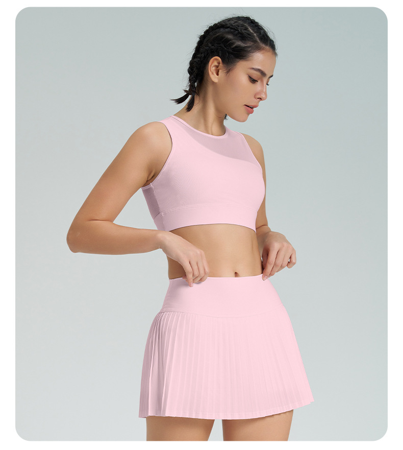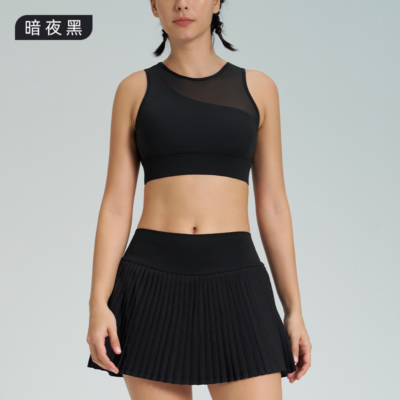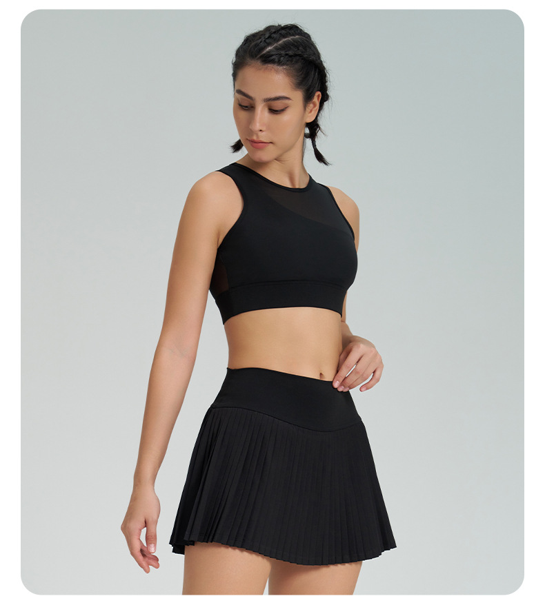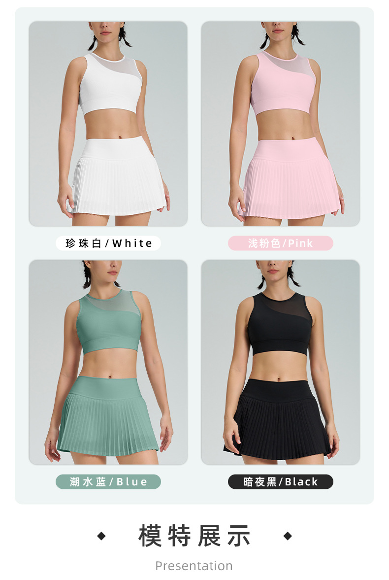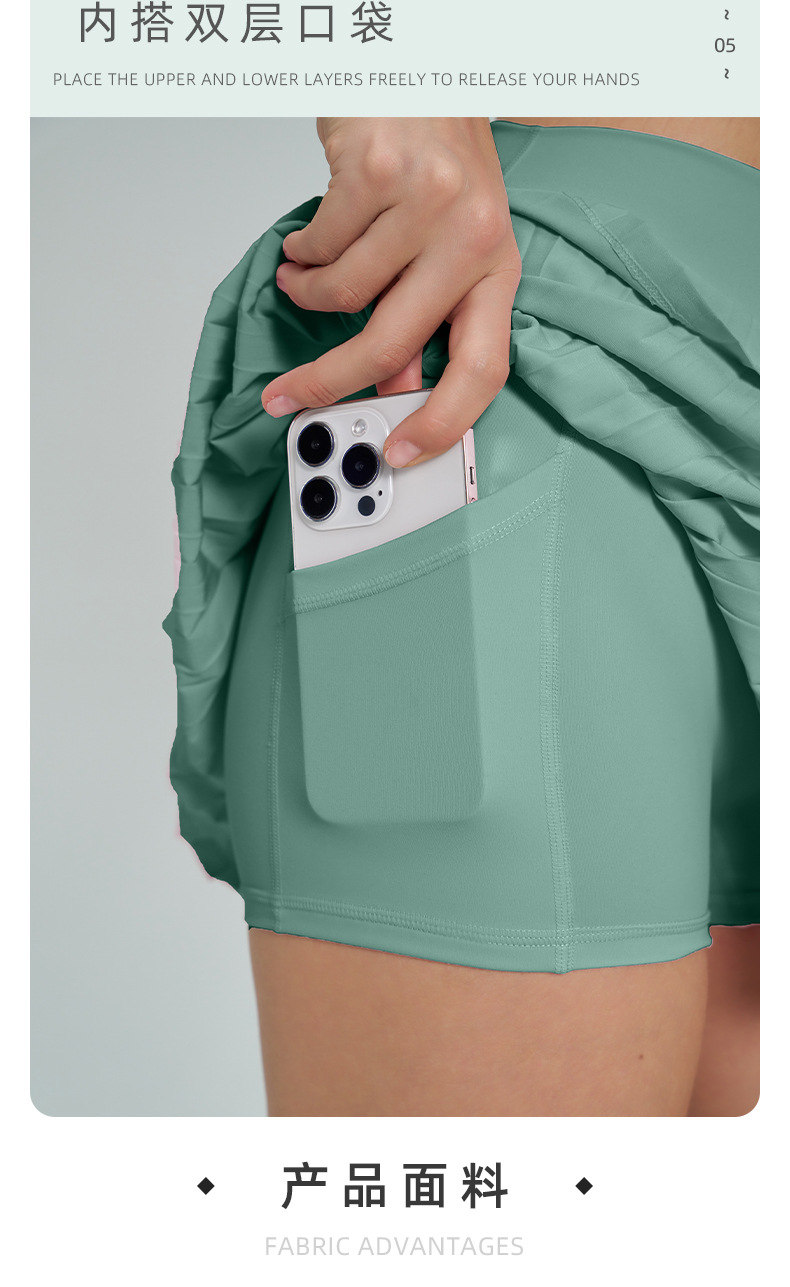 跨境新款运动短裙套装防走光网球百褶裙女假两件速干高腰瑜伽短裙