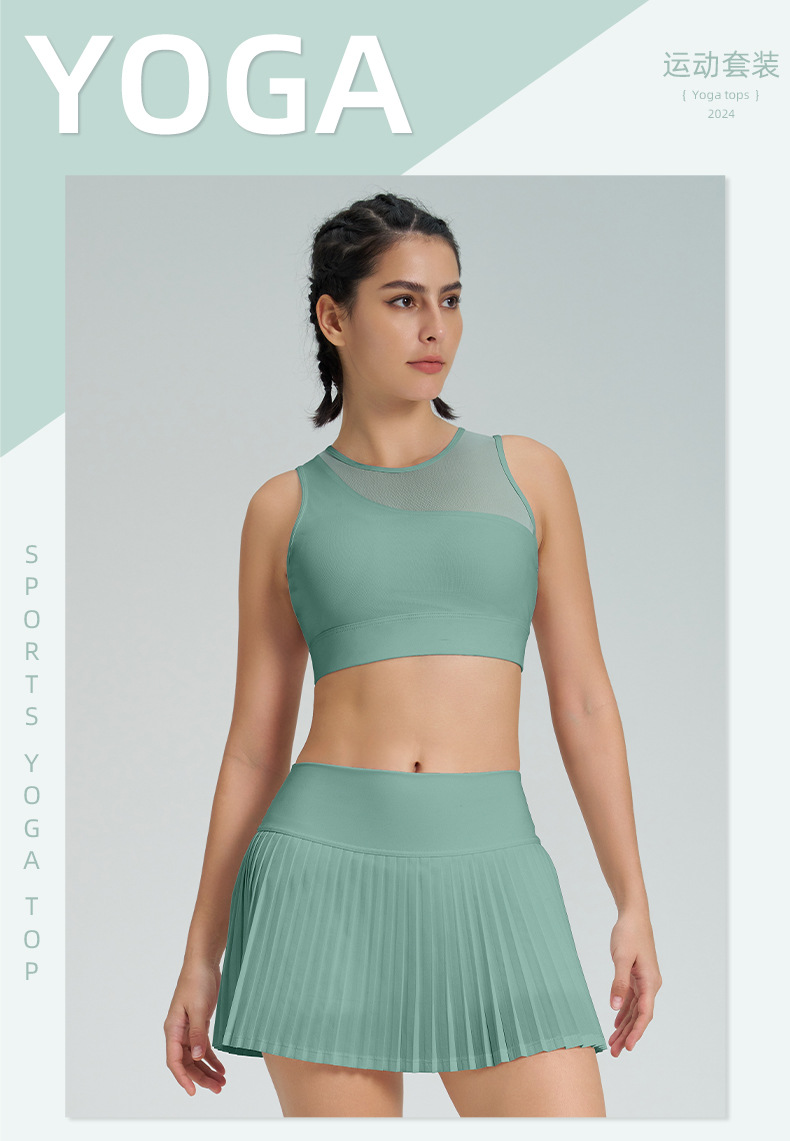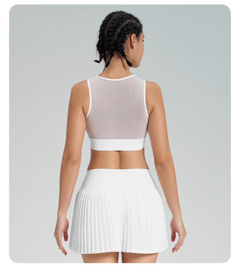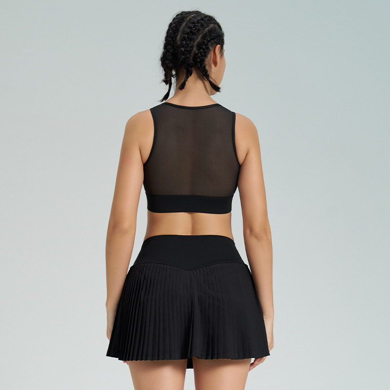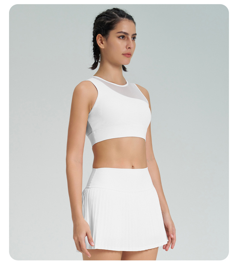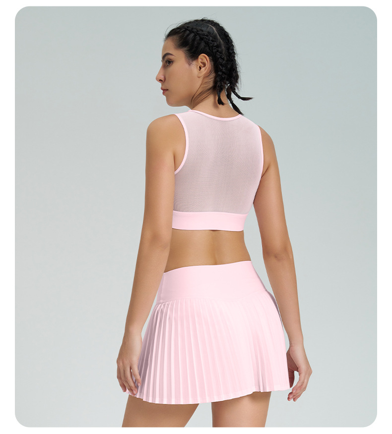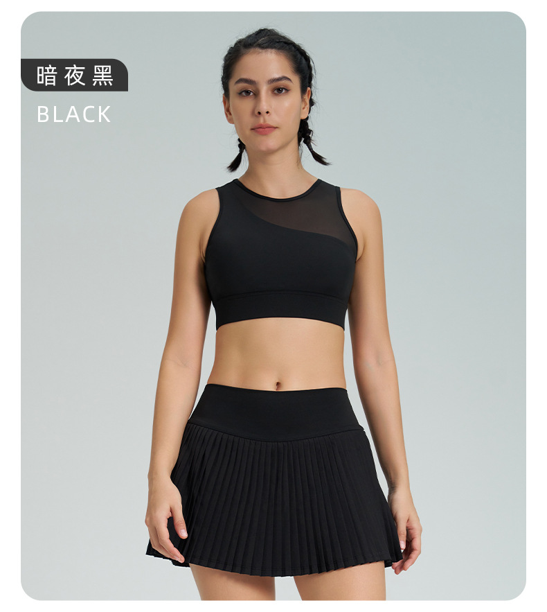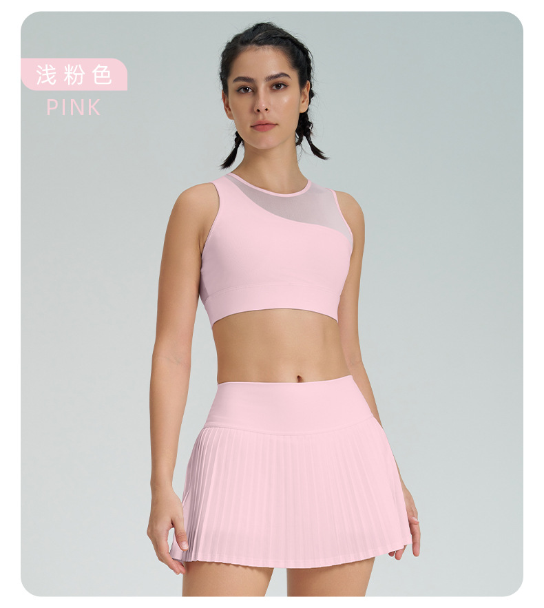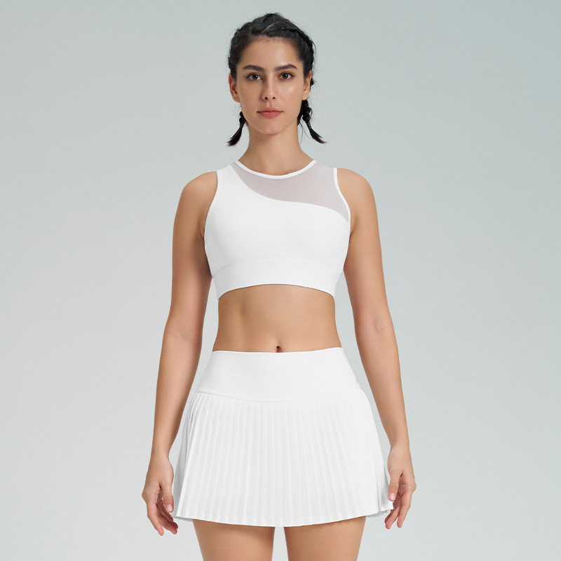 跨境新款运动短裙套装防走光网球百褶裙女假两件速干高腰瑜伽短裙
