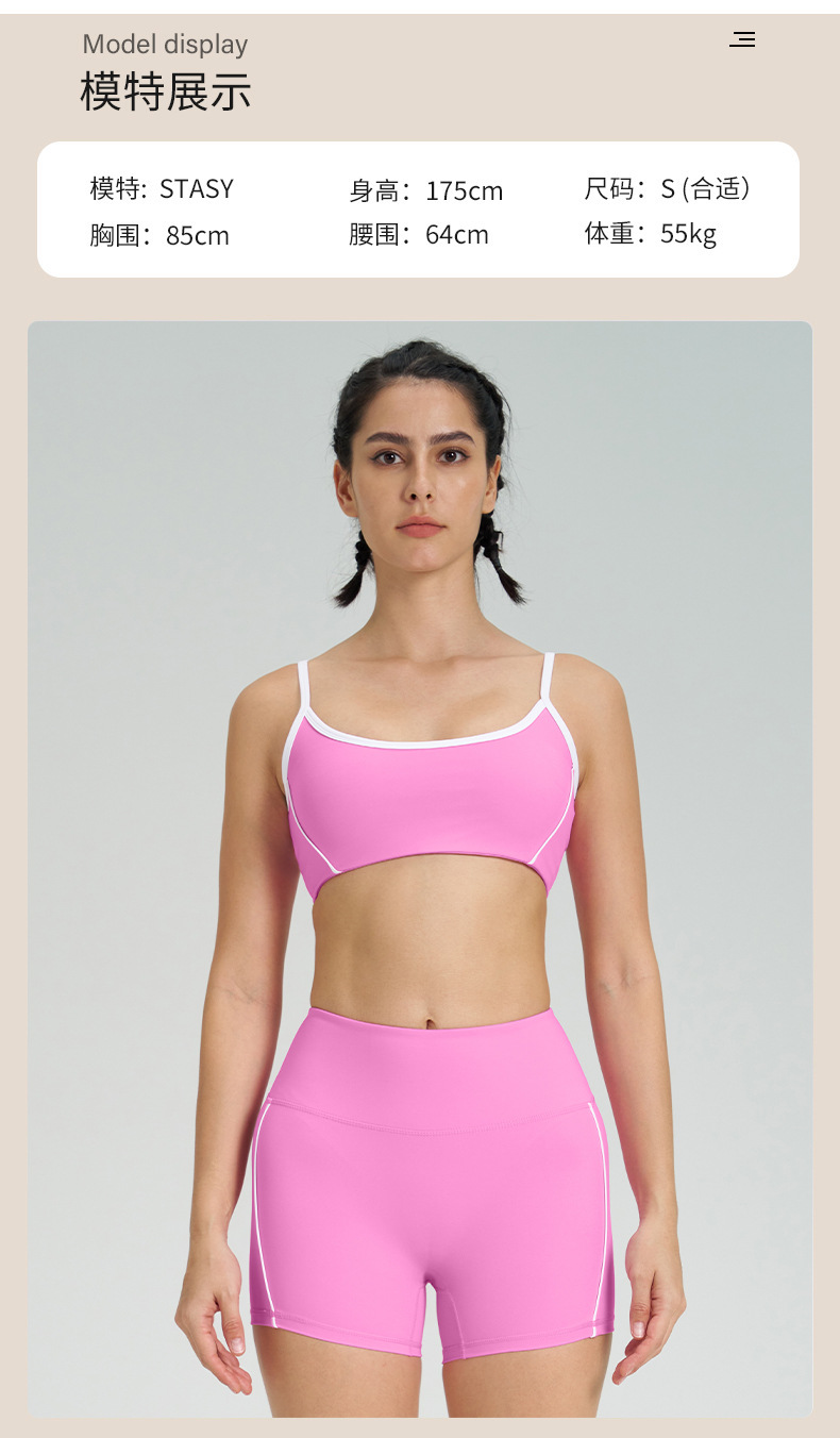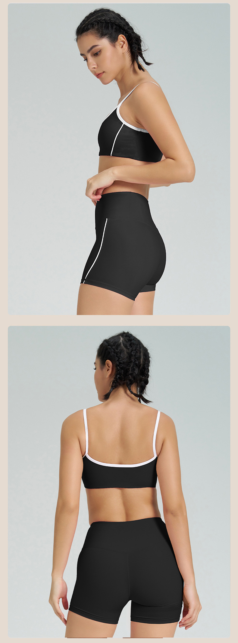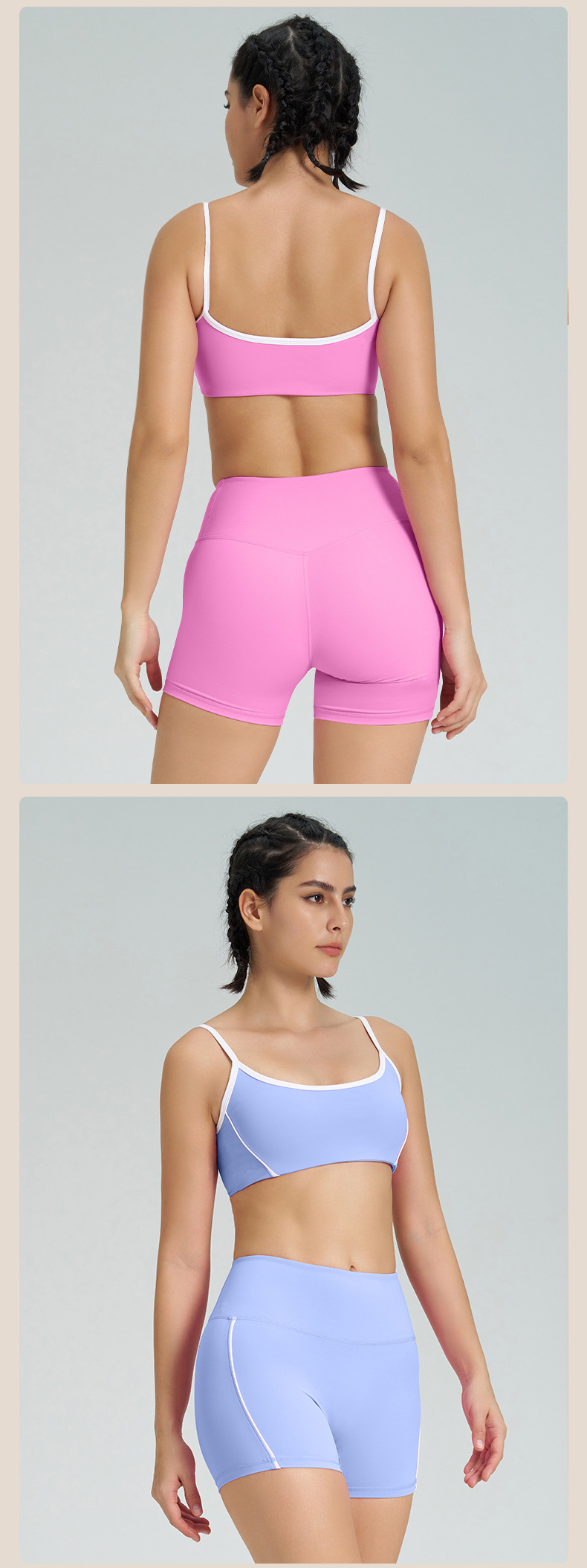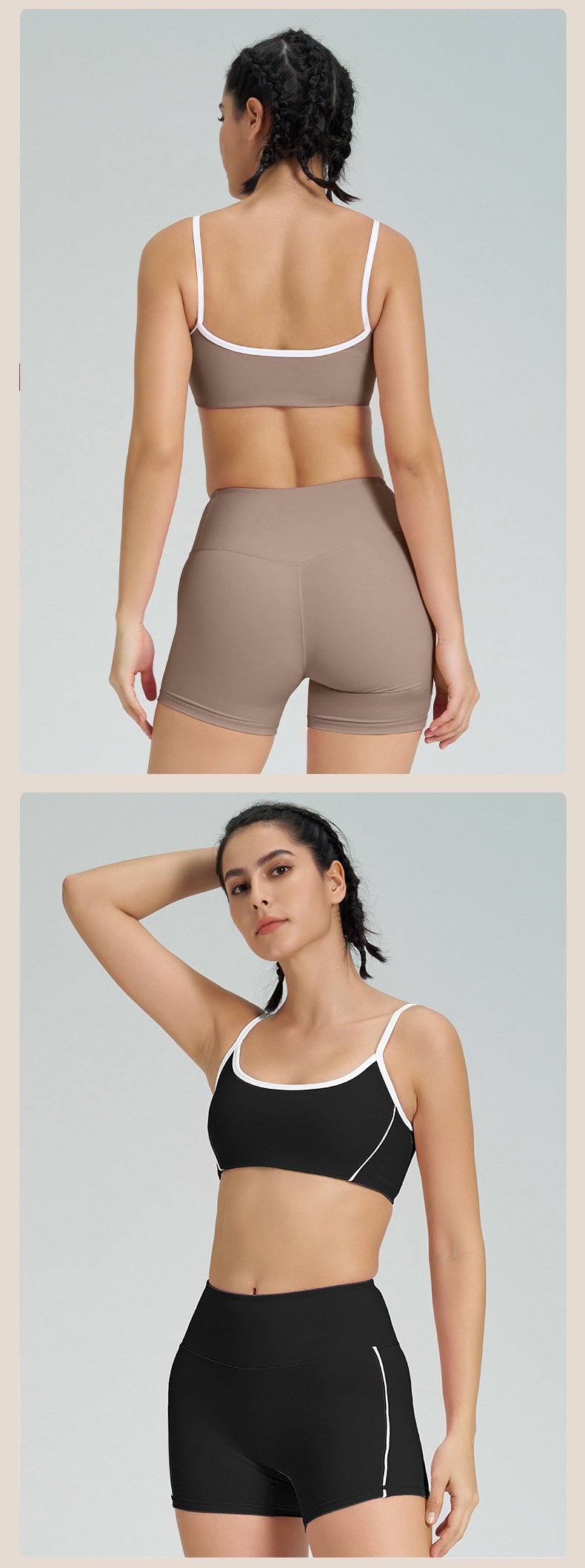 高腰紧身撞色跨境吊带防震聚拢高腰提臀跑步健身短裤瑜伽服套装女