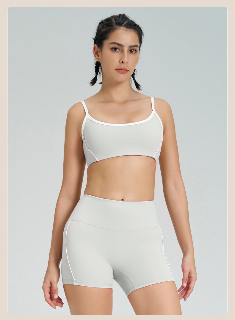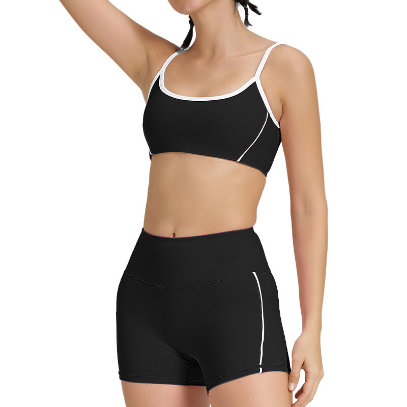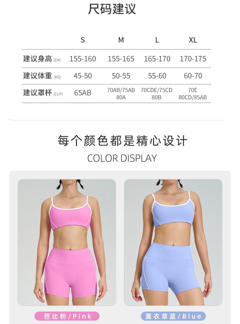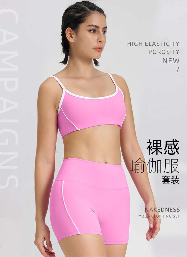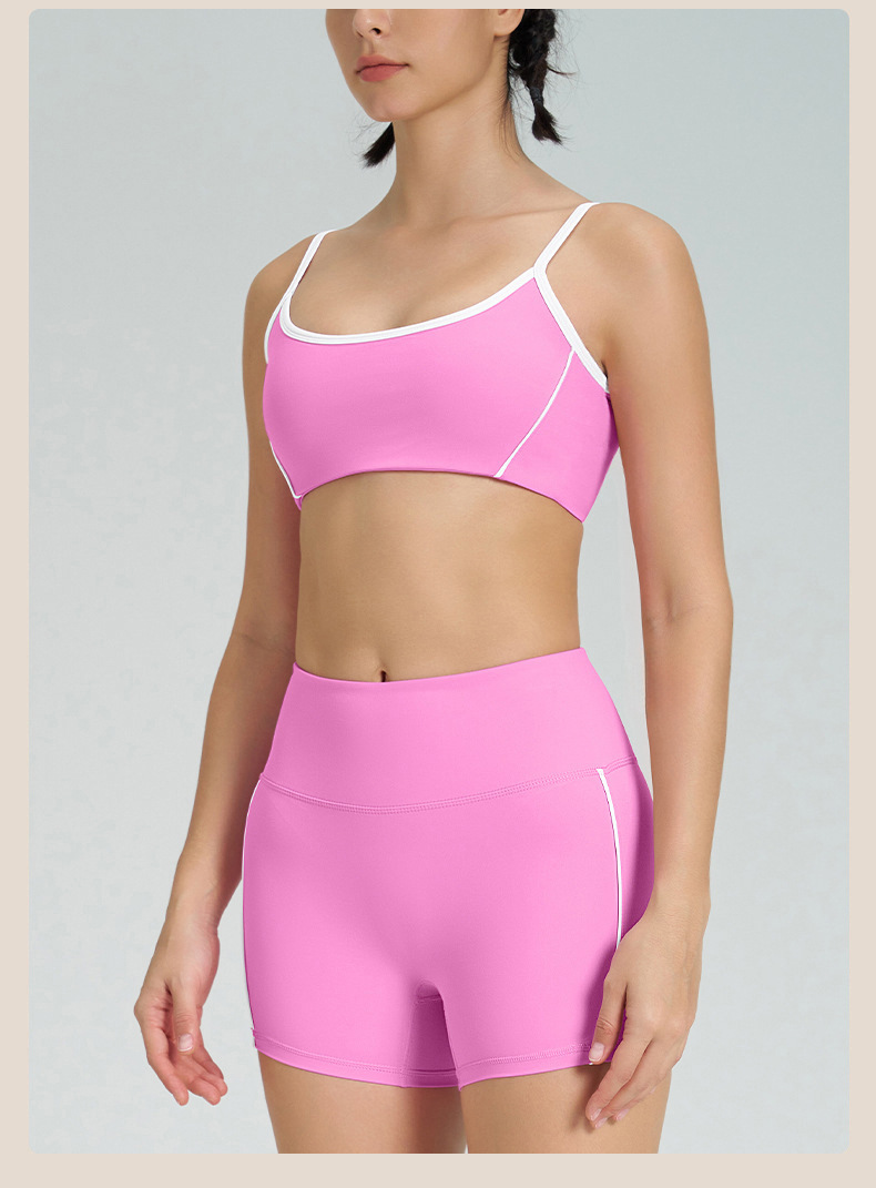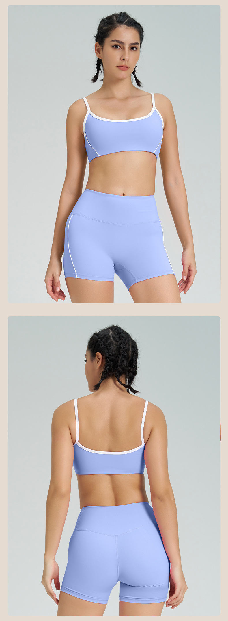 高腰紧身撞色跨境吊带防震聚拢高腰提臀跑步健身短裤瑜伽服套装女