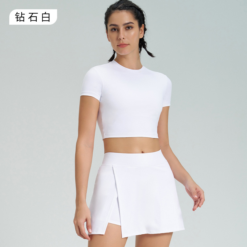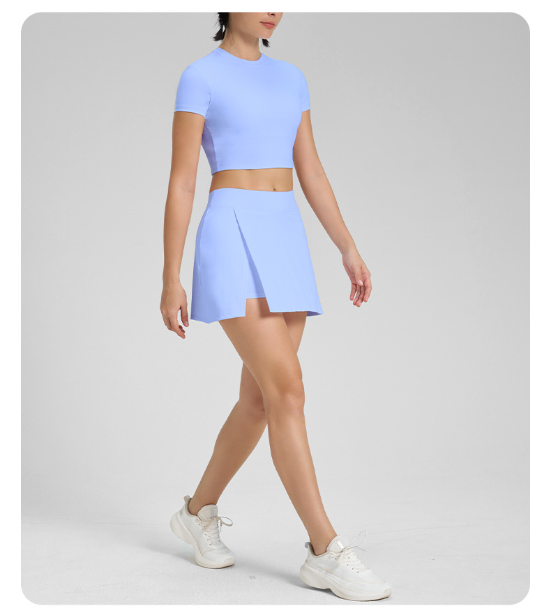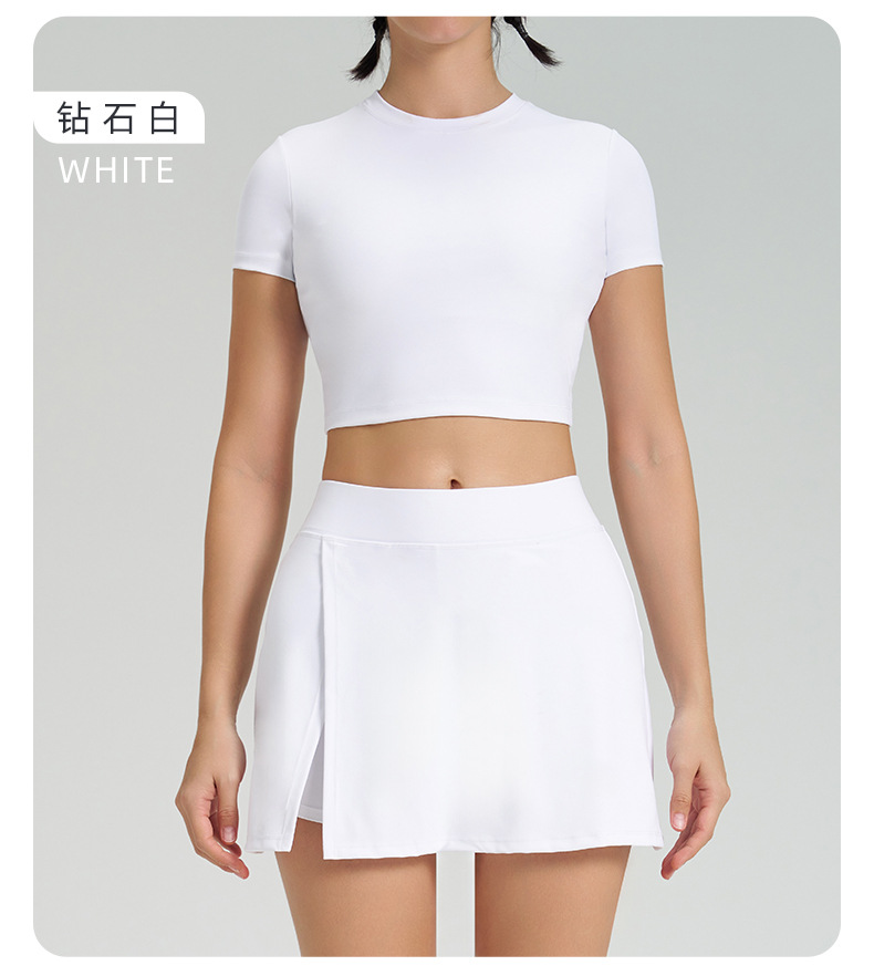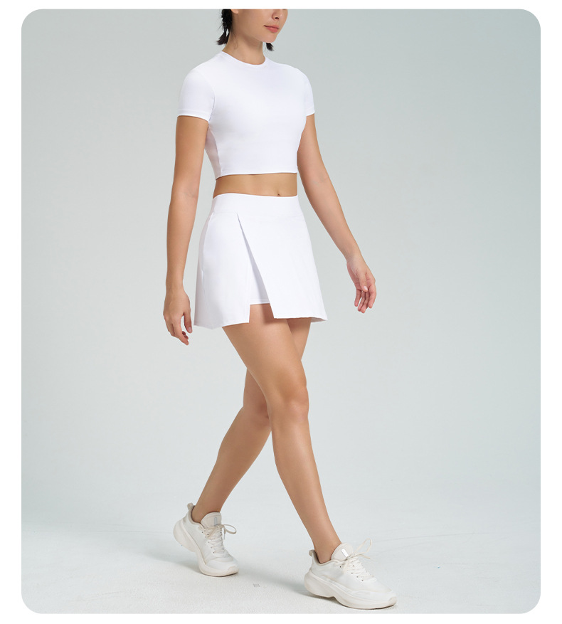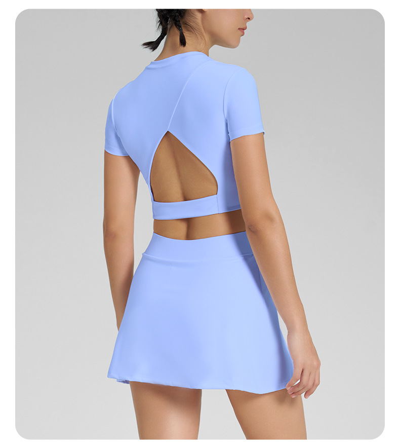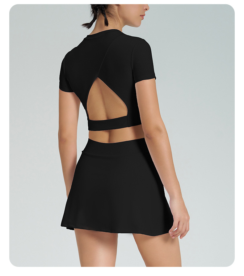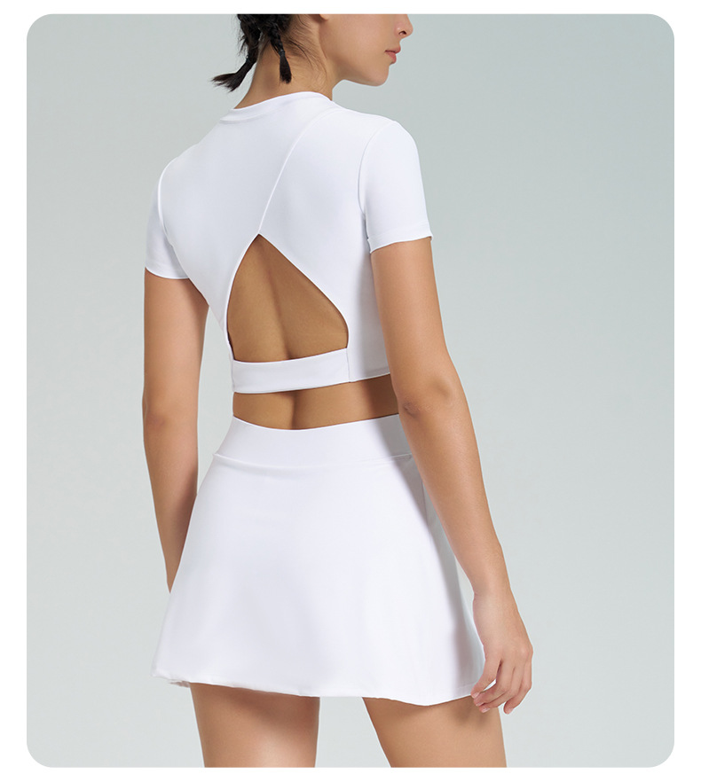 跨境网球裙美背镂空短袖带胸垫运动短裙速干a字版型女瑜伽裙套装