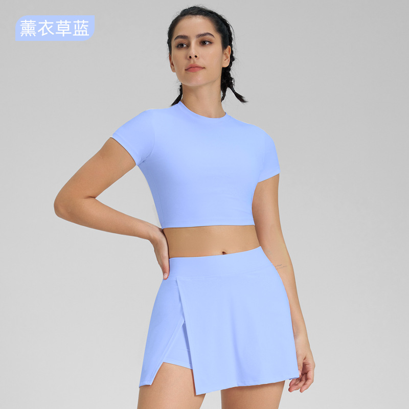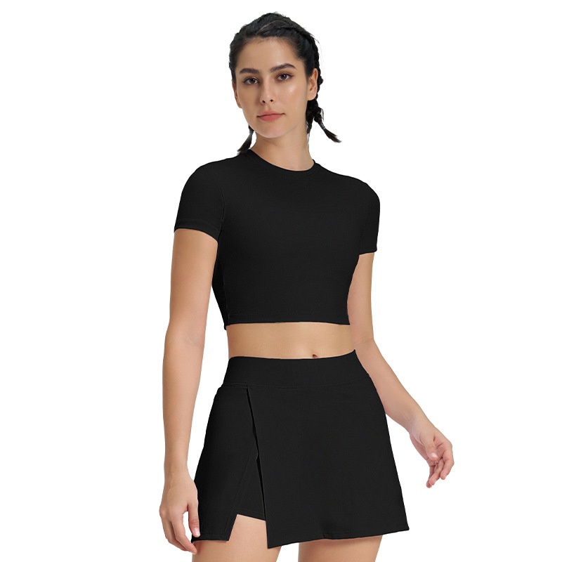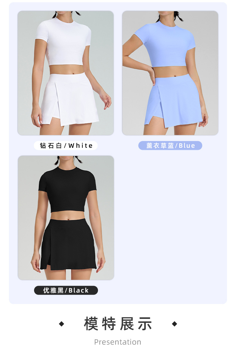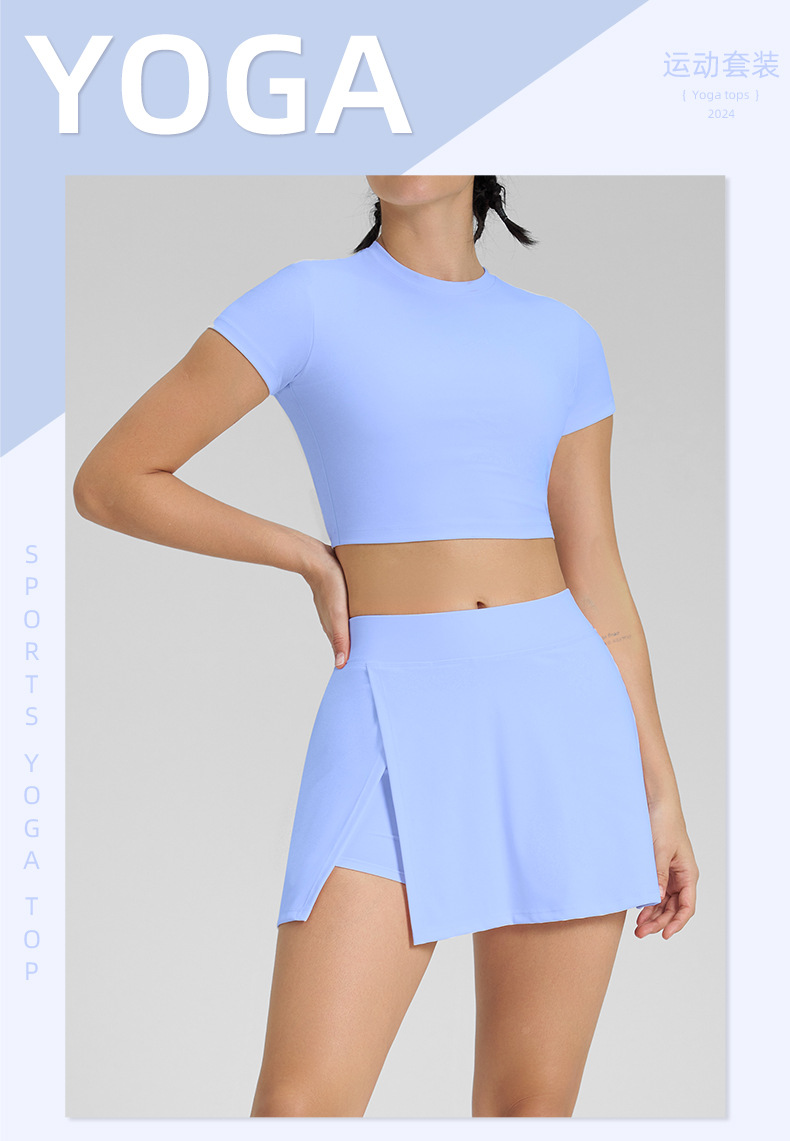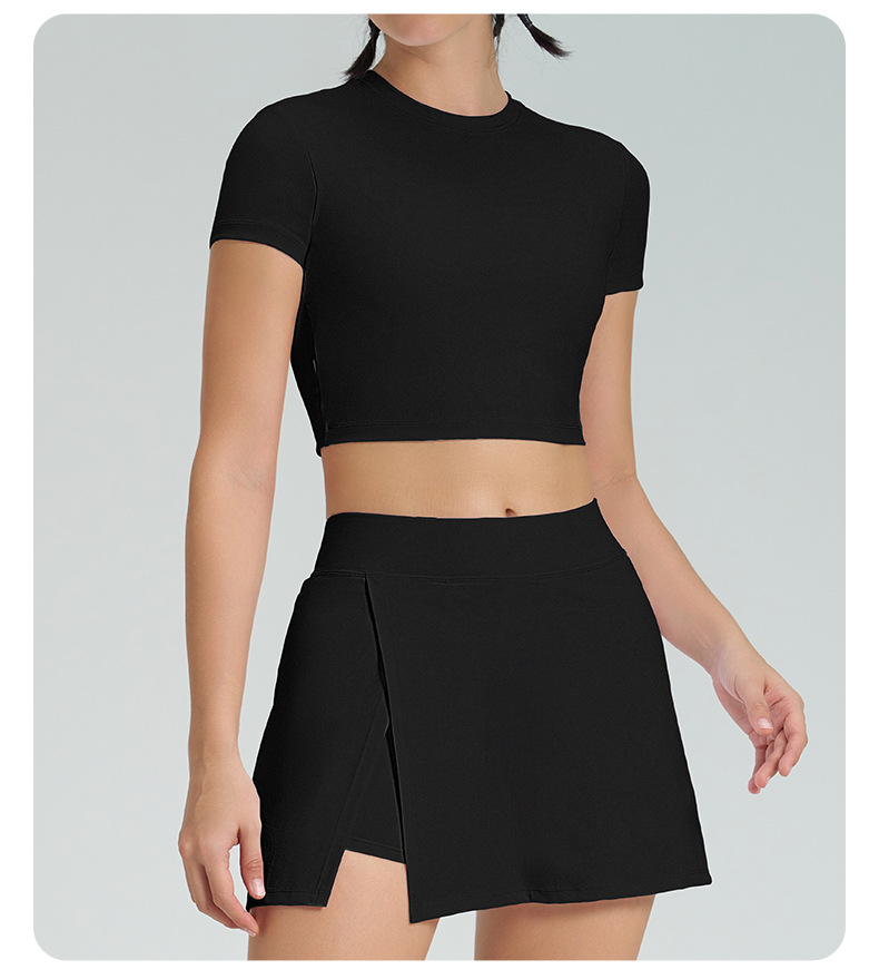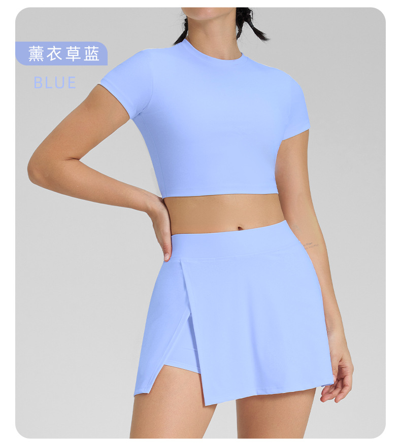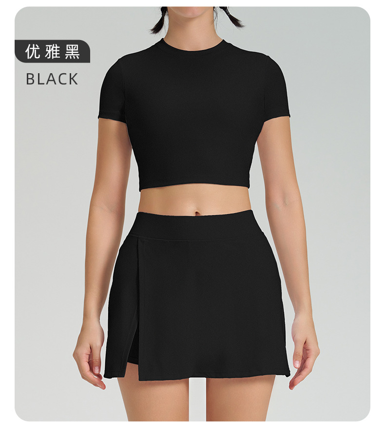 跨境网球裙美背镂空短袖带胸垫运动短裙速干a字版型女瑜伽裙套装