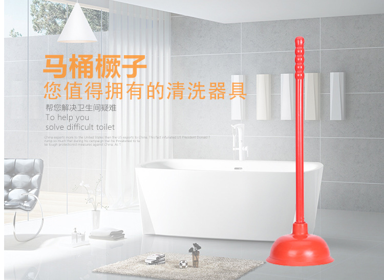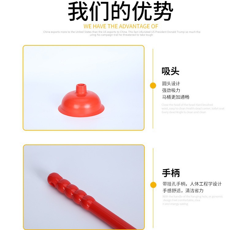 厂家现货PVC红色马桶吸 PP吸盘塑料杆下水管道疏通器