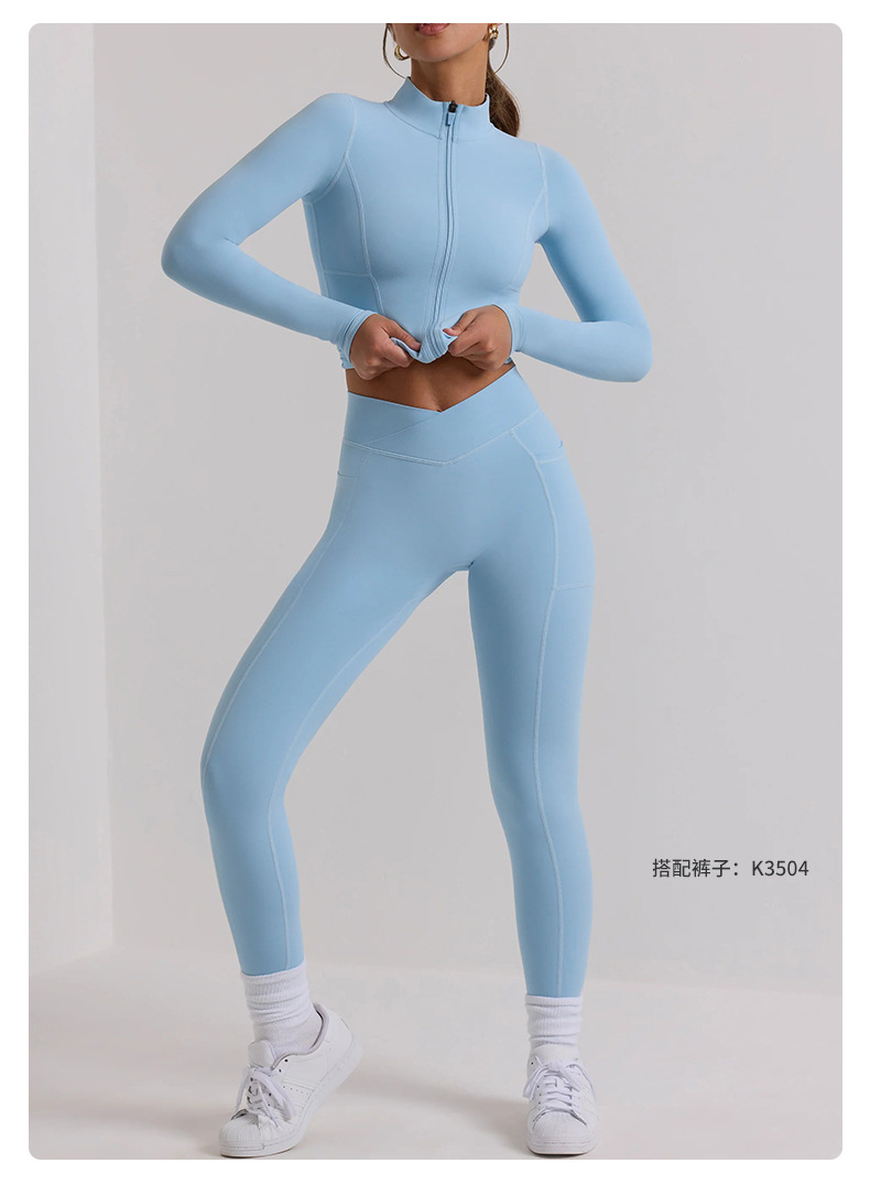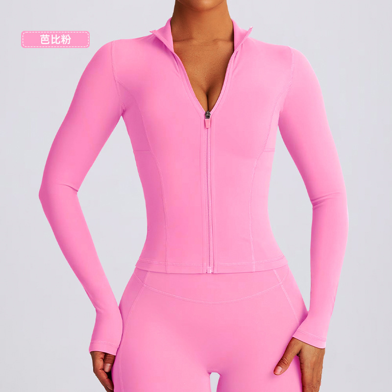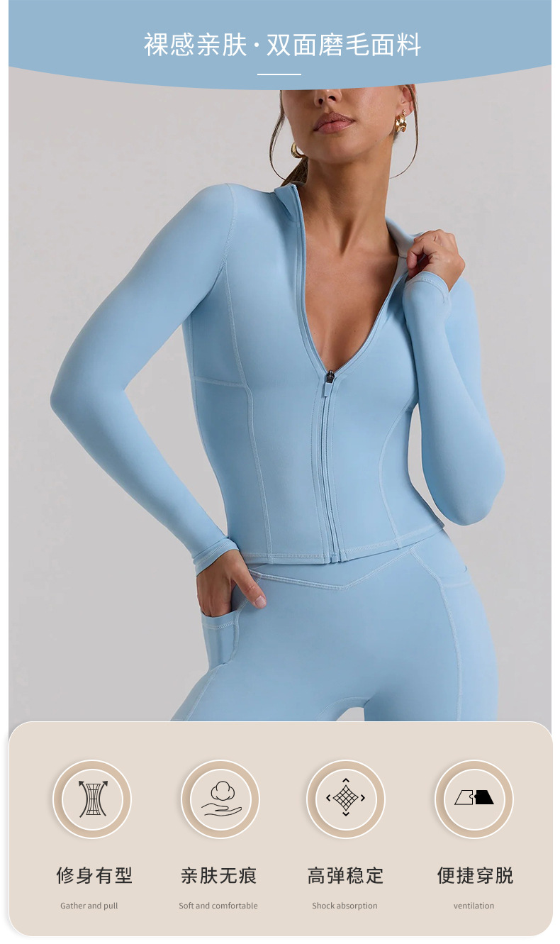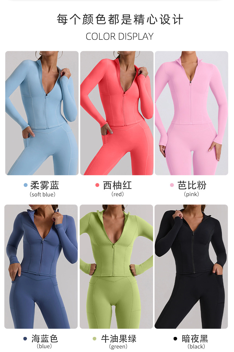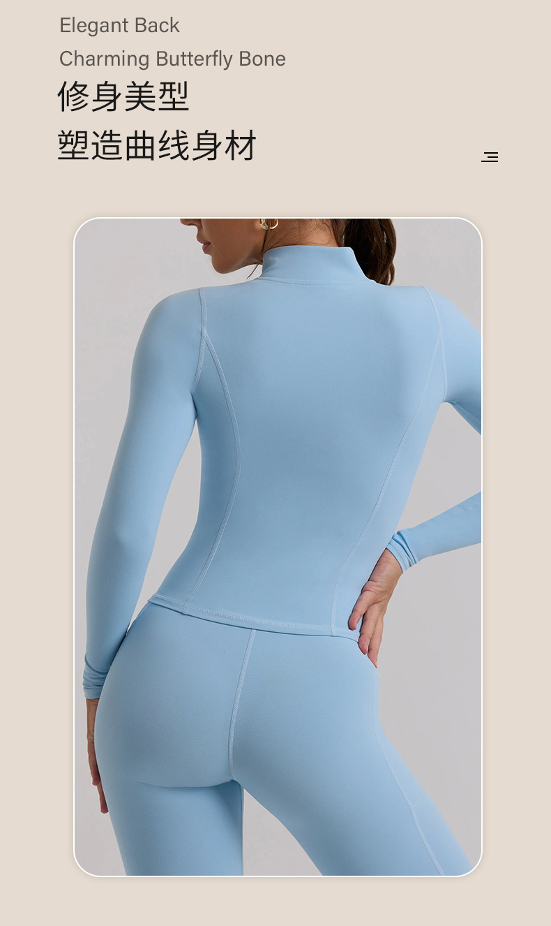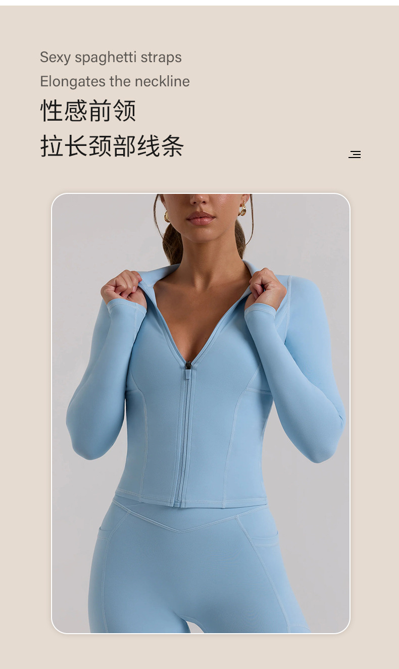 欧美新款长袖开衫瑜伽服运动外套女健身服收腹美体上衣户外休闲服