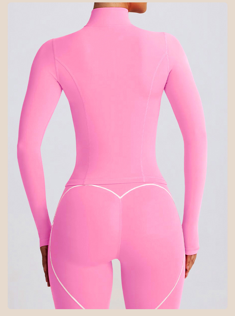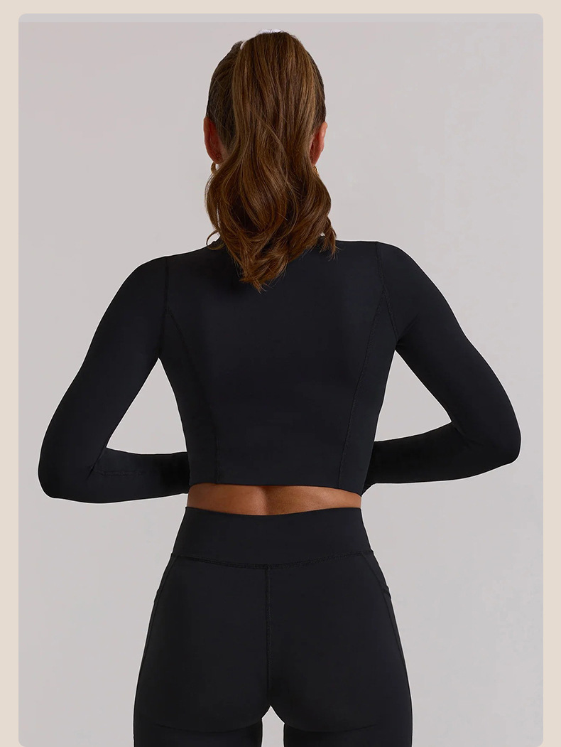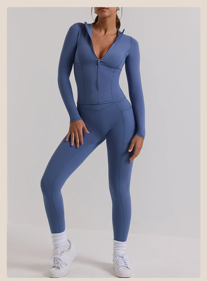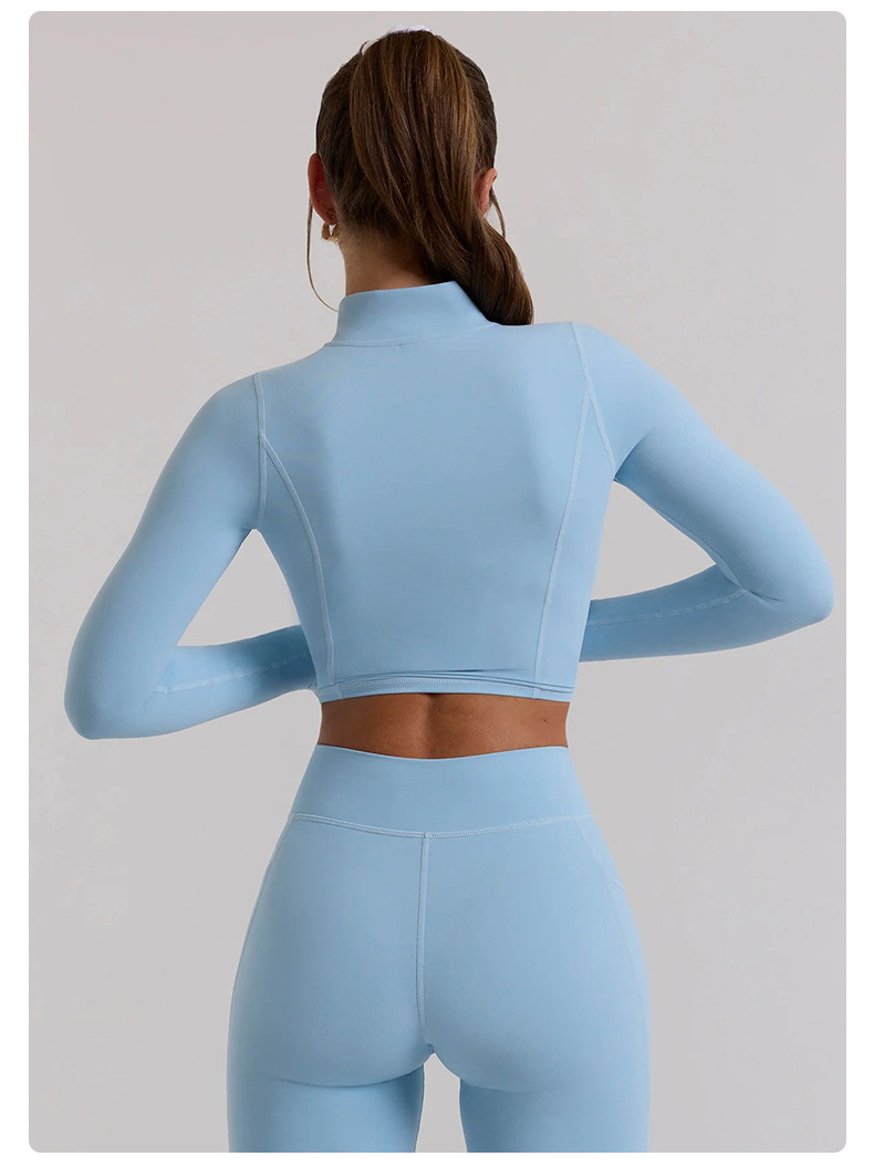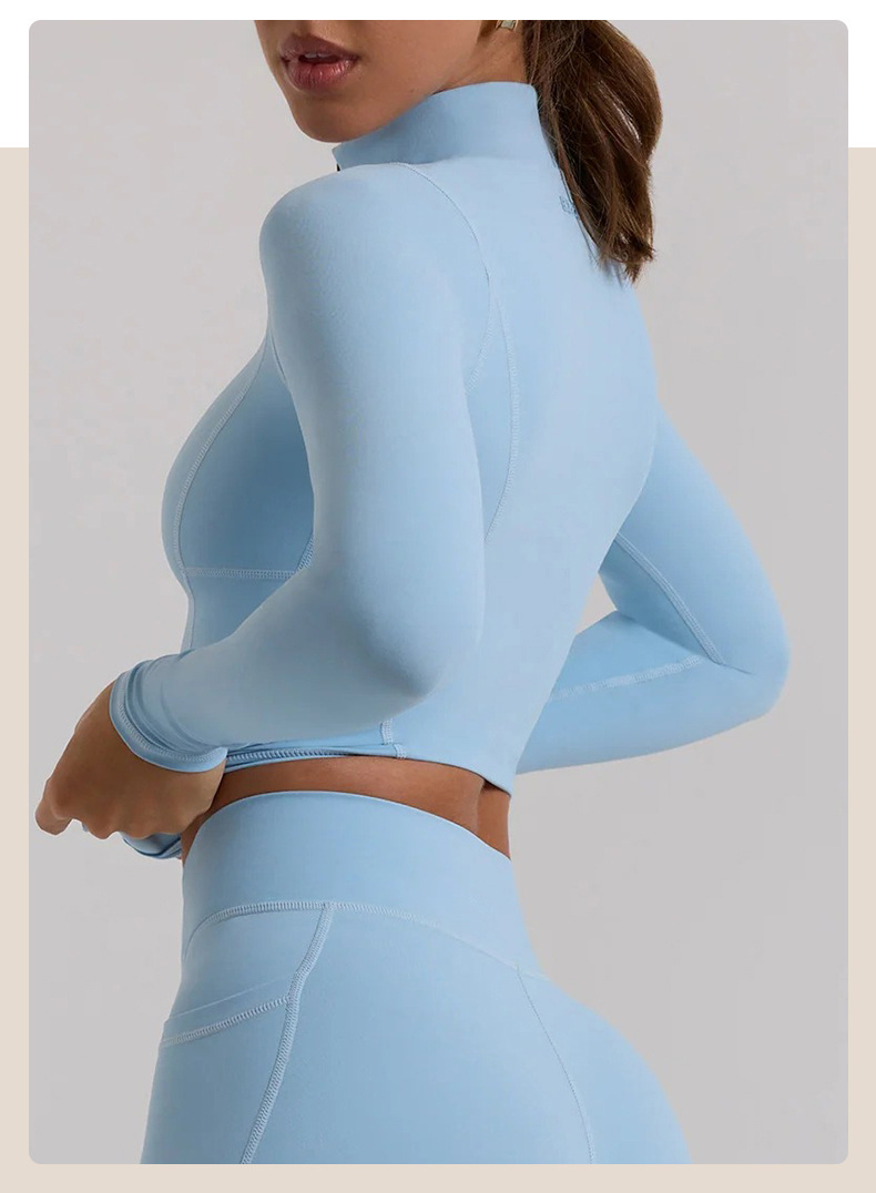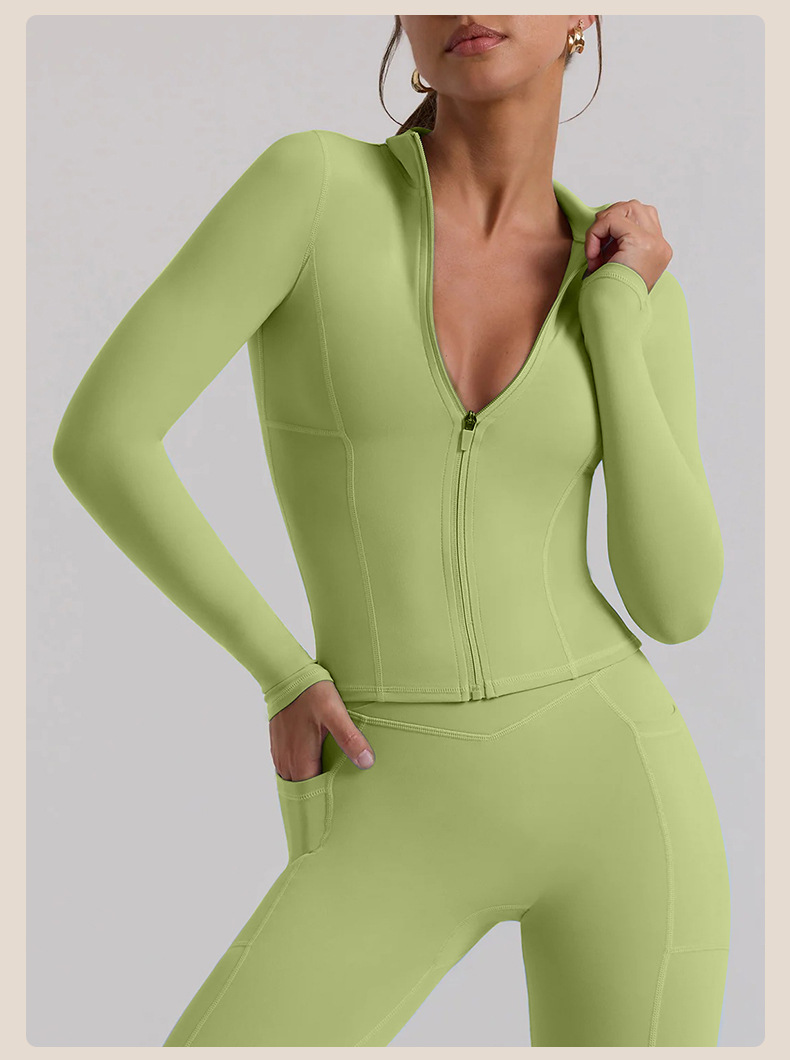 欧美新款长袖开衫瑜伽服运动外套女健身服收腹美体上衣户外休闲服