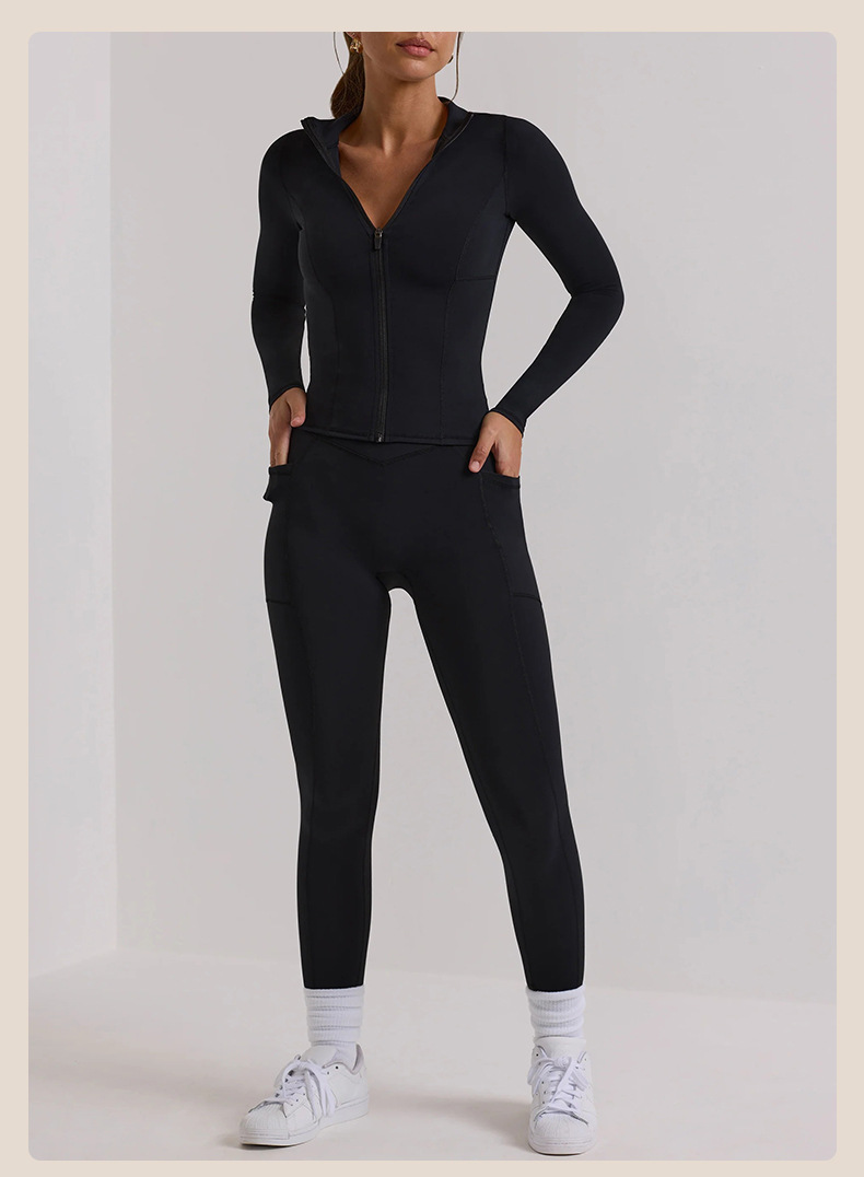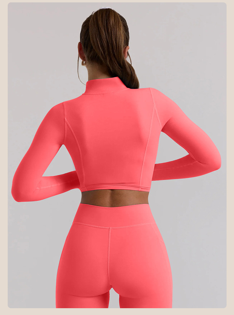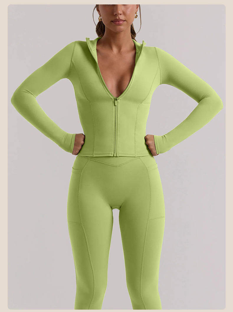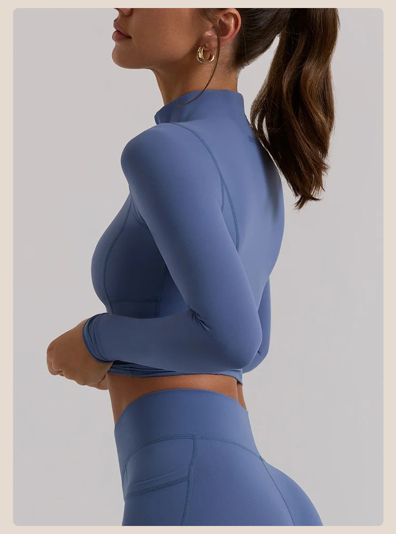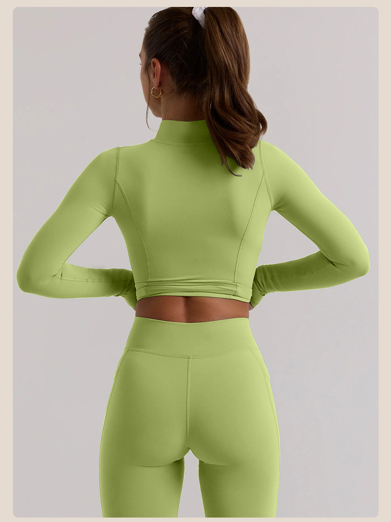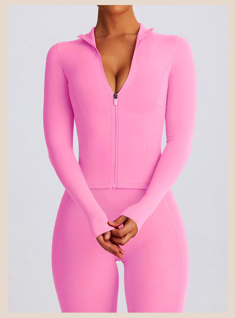 欧美新款长袖开衫瑜伽服运动外套女健身服收腹美体上衣户外休闲服
