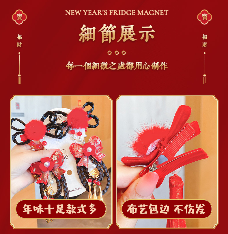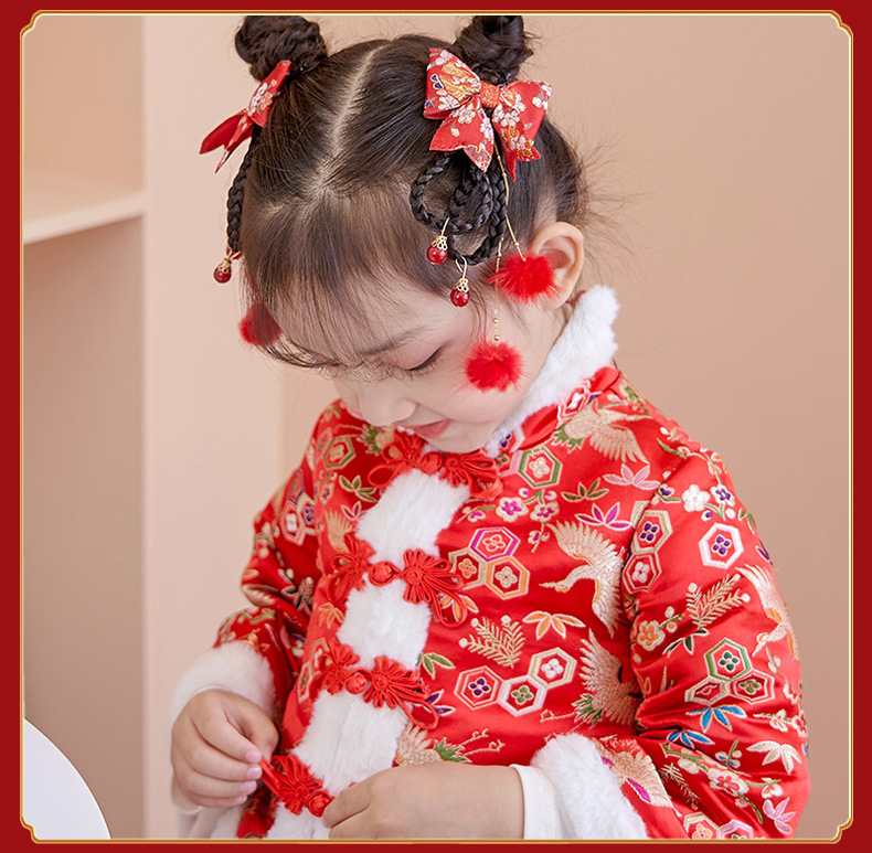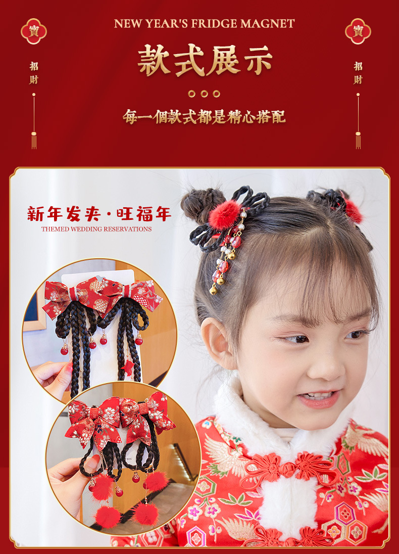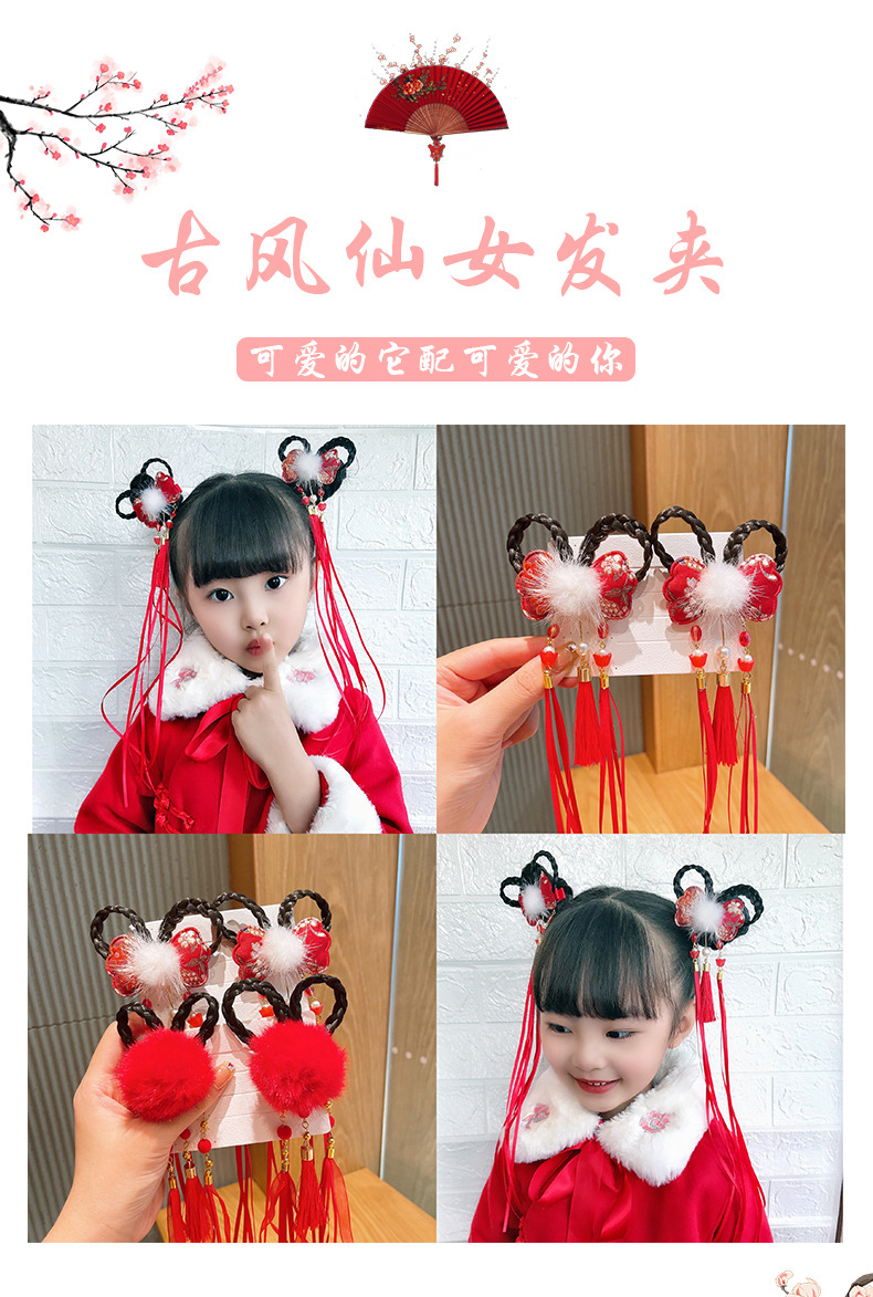 新款中国风儿童蝴蝶结假发汉服发夹古风流苏对夹宝宝新年头饰批发