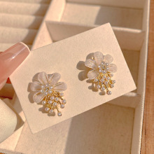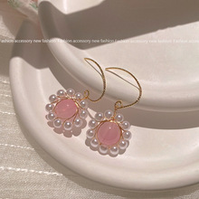 气质黑色山茶花珍珠耳环高级感耳钉复古小香风法式925银针耳饰女