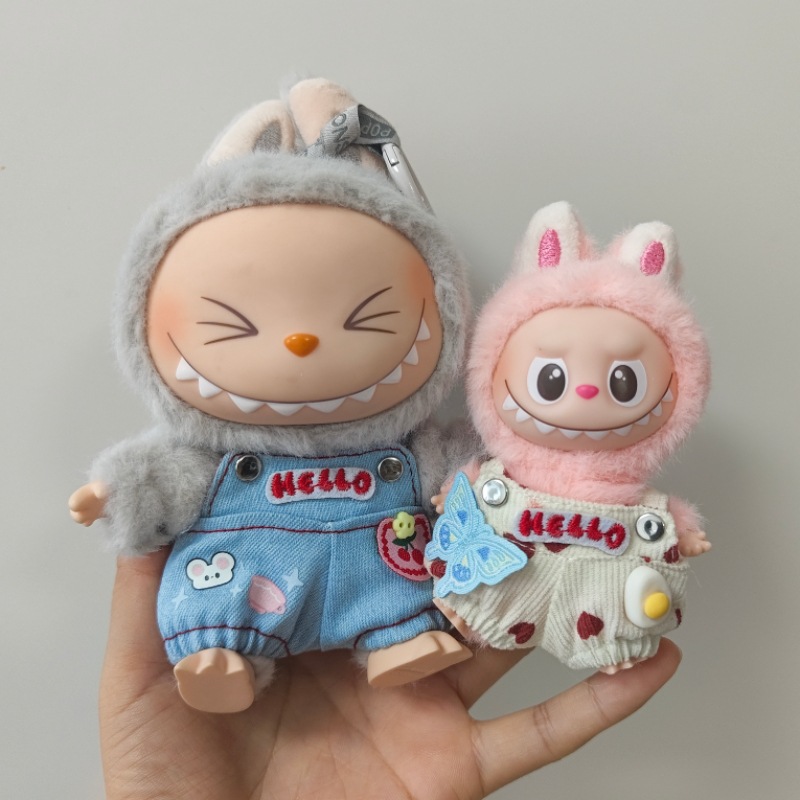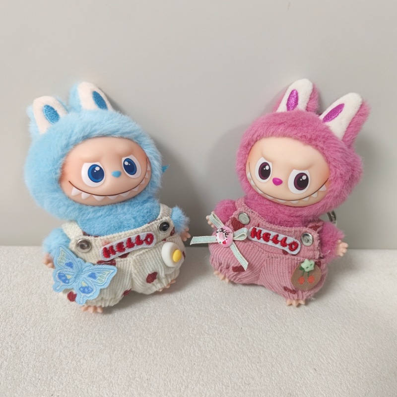 4代二代Labubu挂件衣服拉布布娃衣樱桃牛仔背带裤眼镜帽子着替套