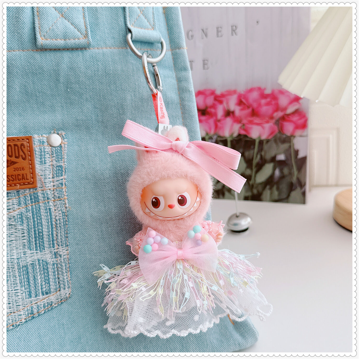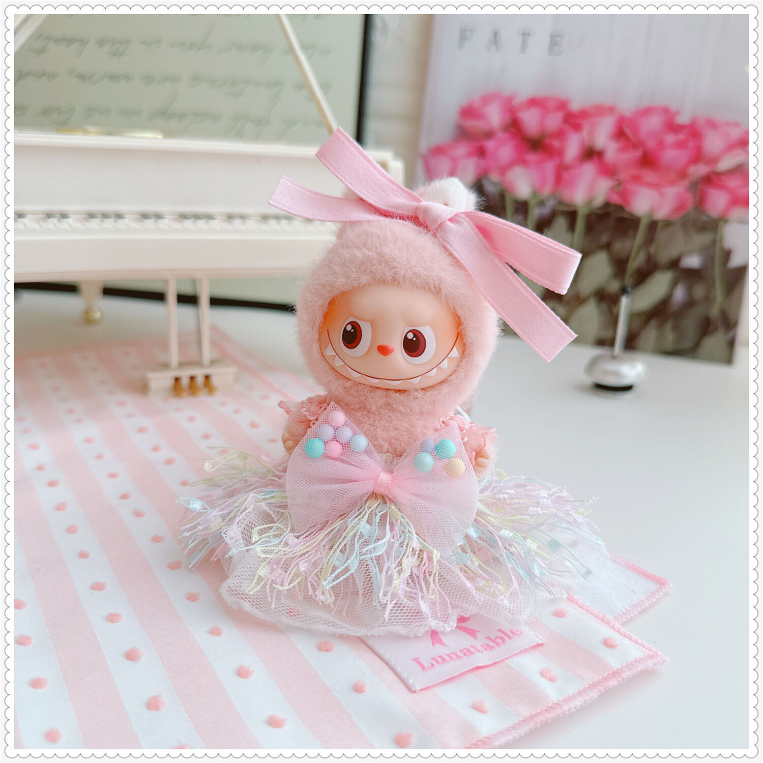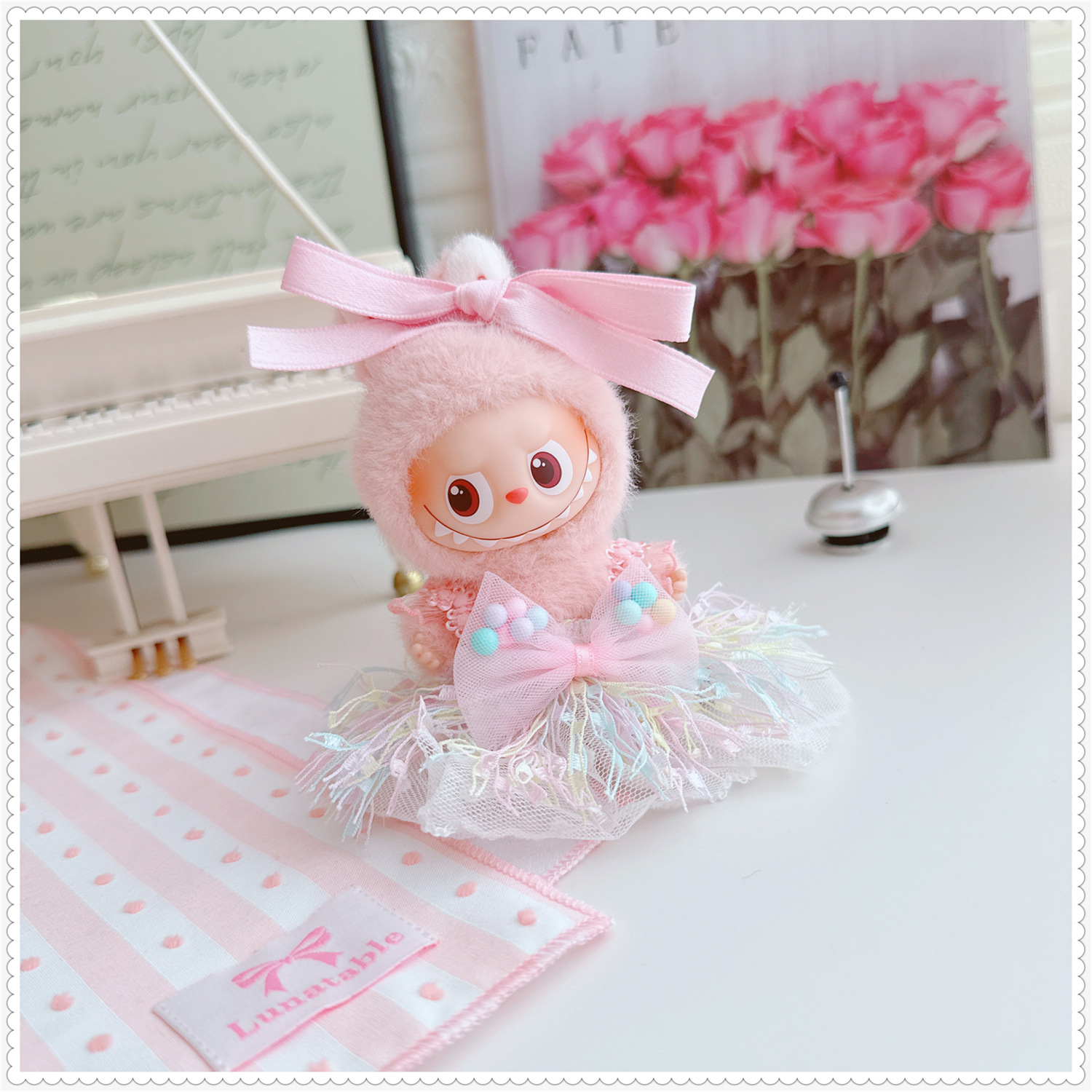 拉布布四代4.0娃衣套装衣服粉色吊带丝带裙Labubu娃娃衣公仔替换