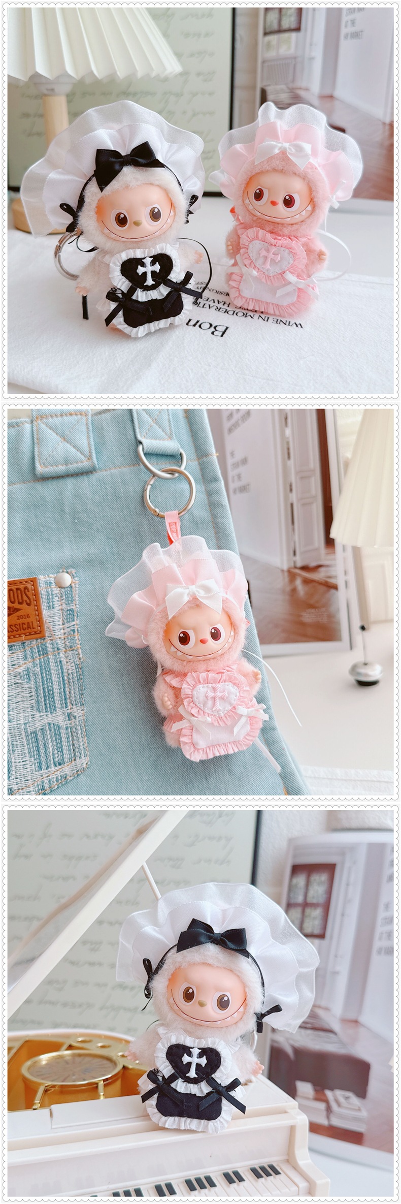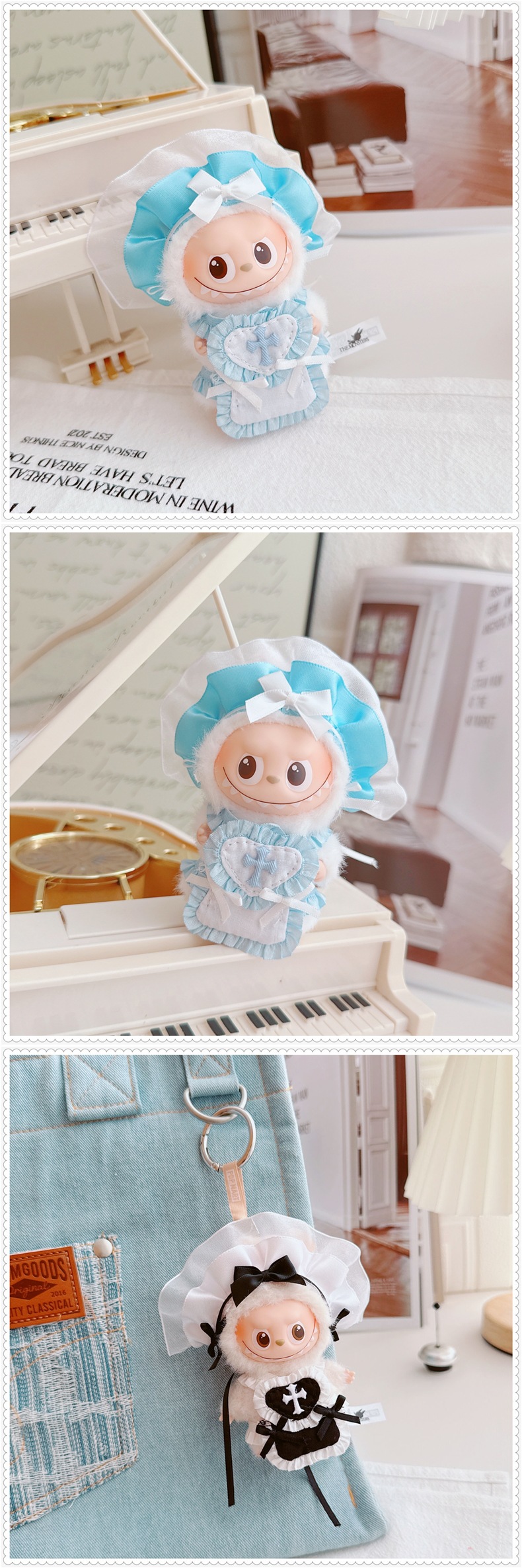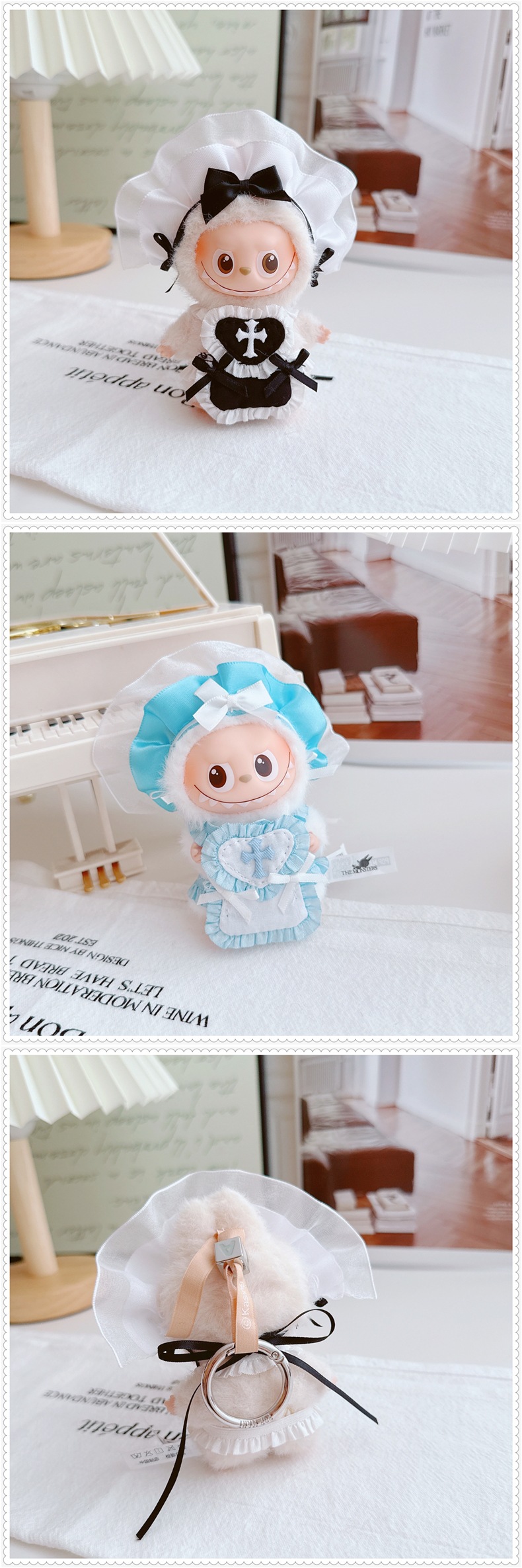 拉布布四代4.0娃衣套装衣服黑白粉蓝女仆Labubu娃娃衣公仔替换