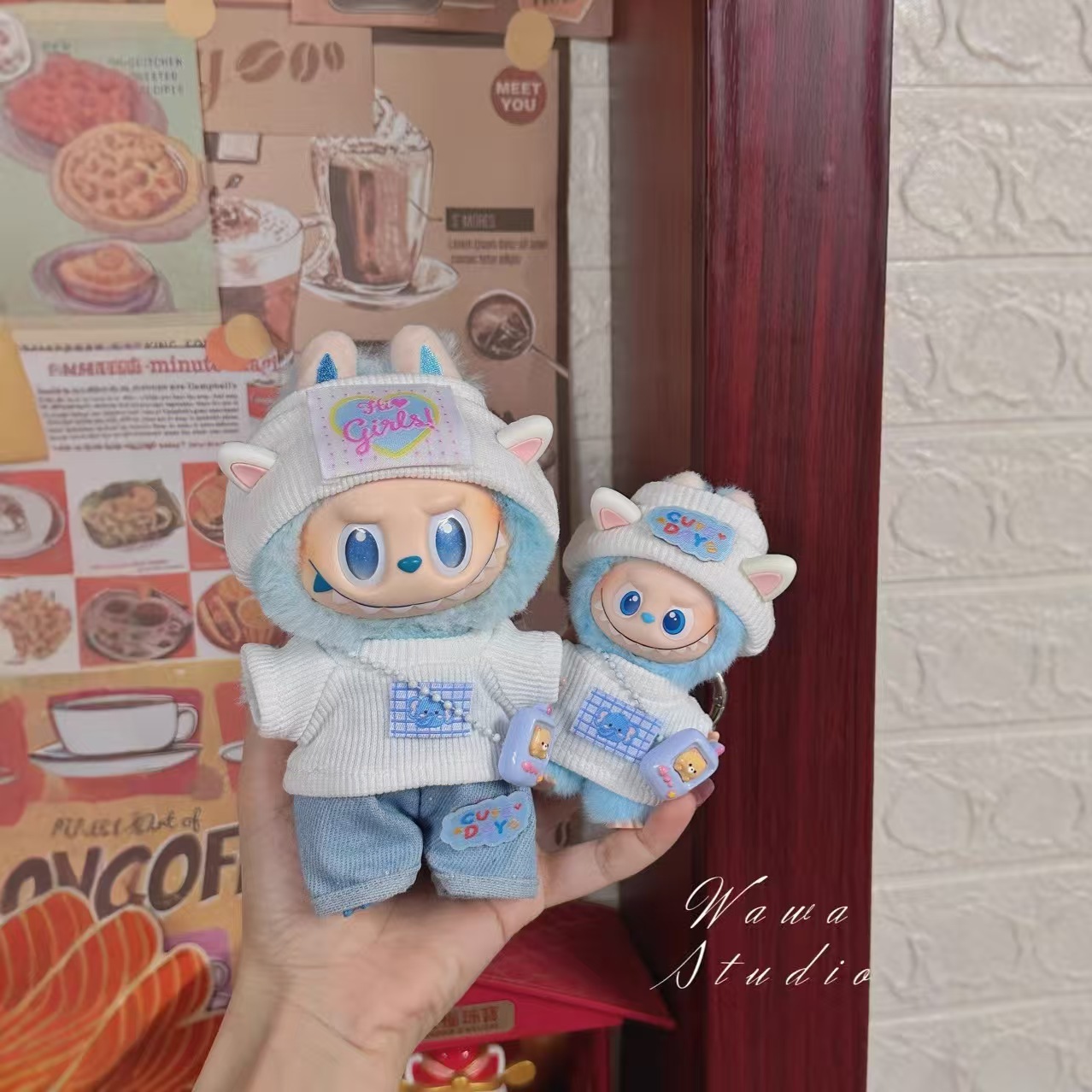 仅衣服】4.0拉布布衣服挂件着替小兔子背带裤适用labubu娃衣替换