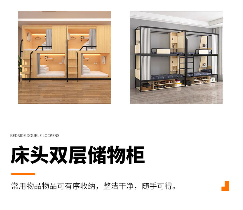 单双人太空舱学生宿舍高低床青旅电竞酒店钢木双层公寓床全包床