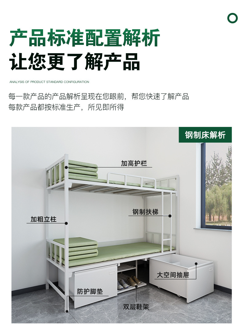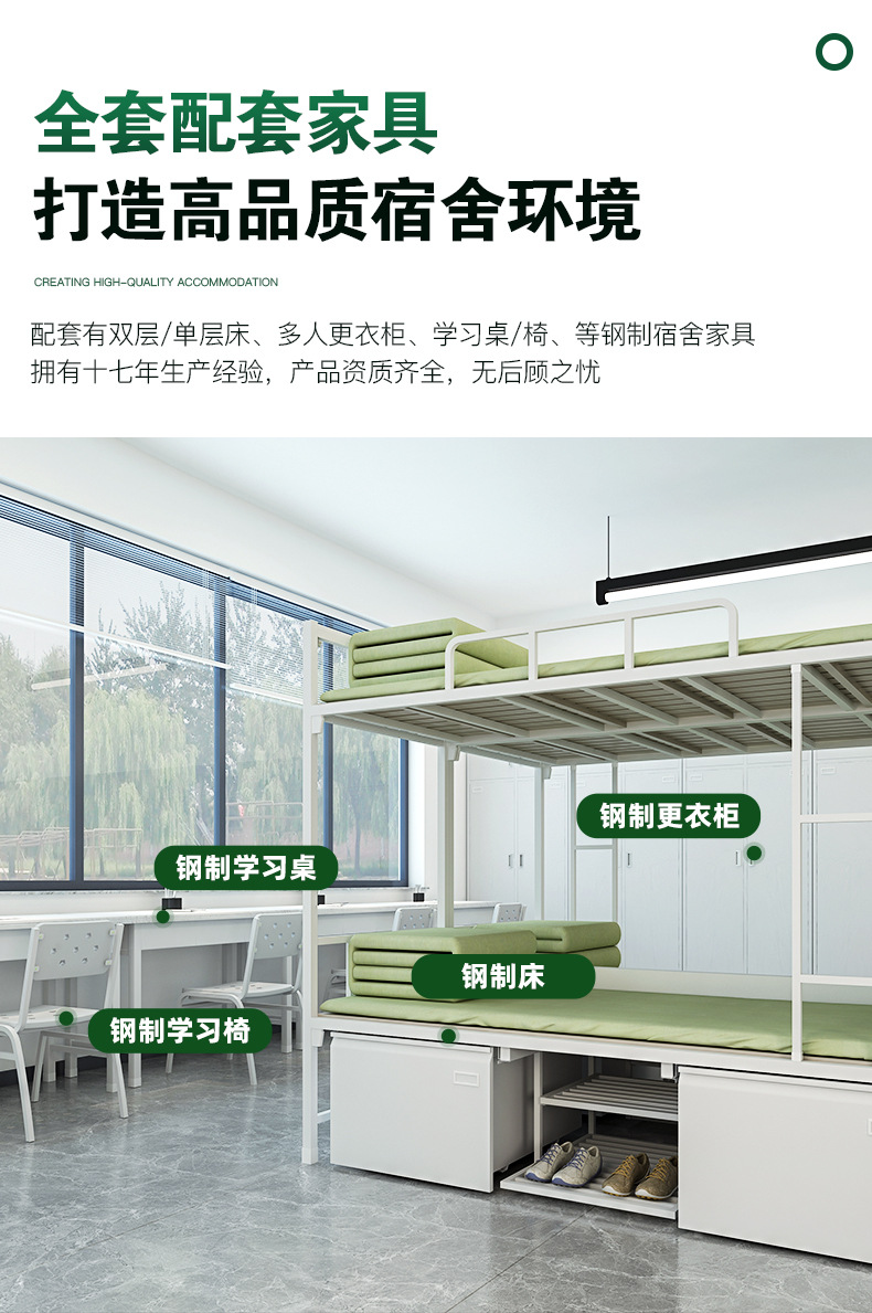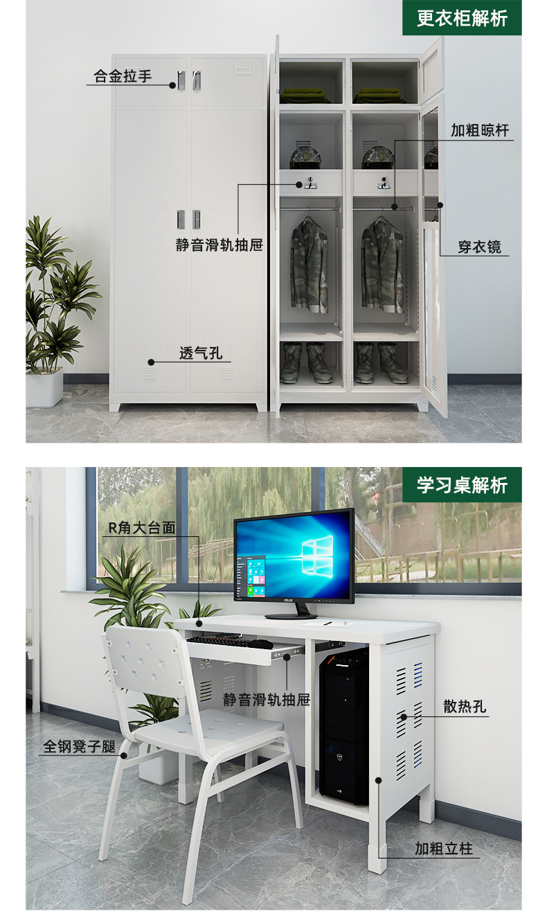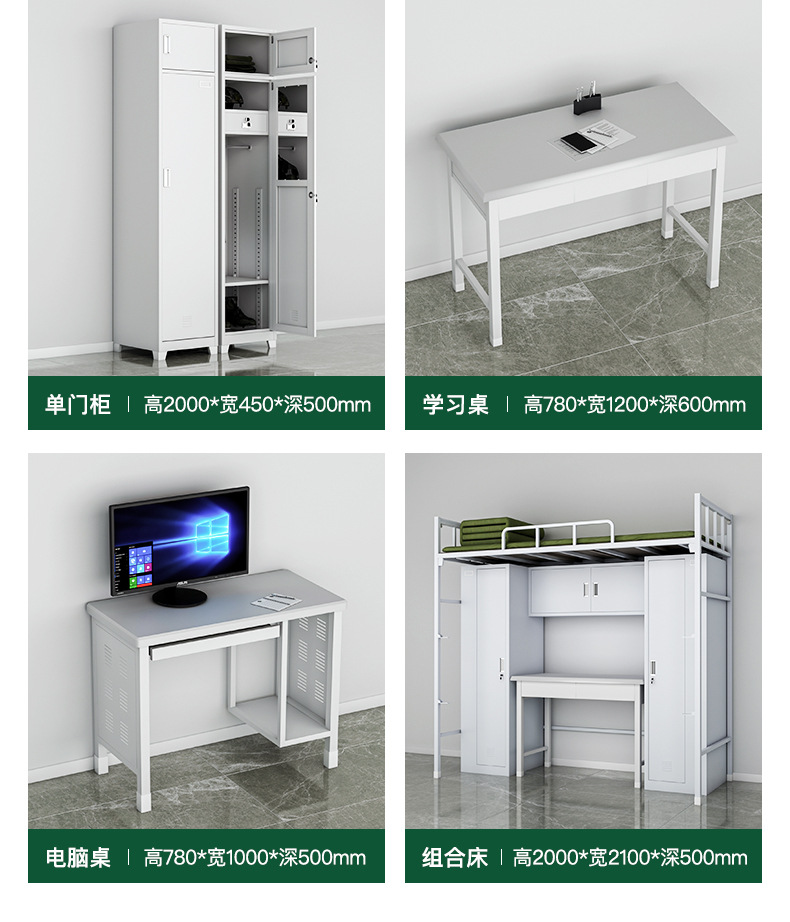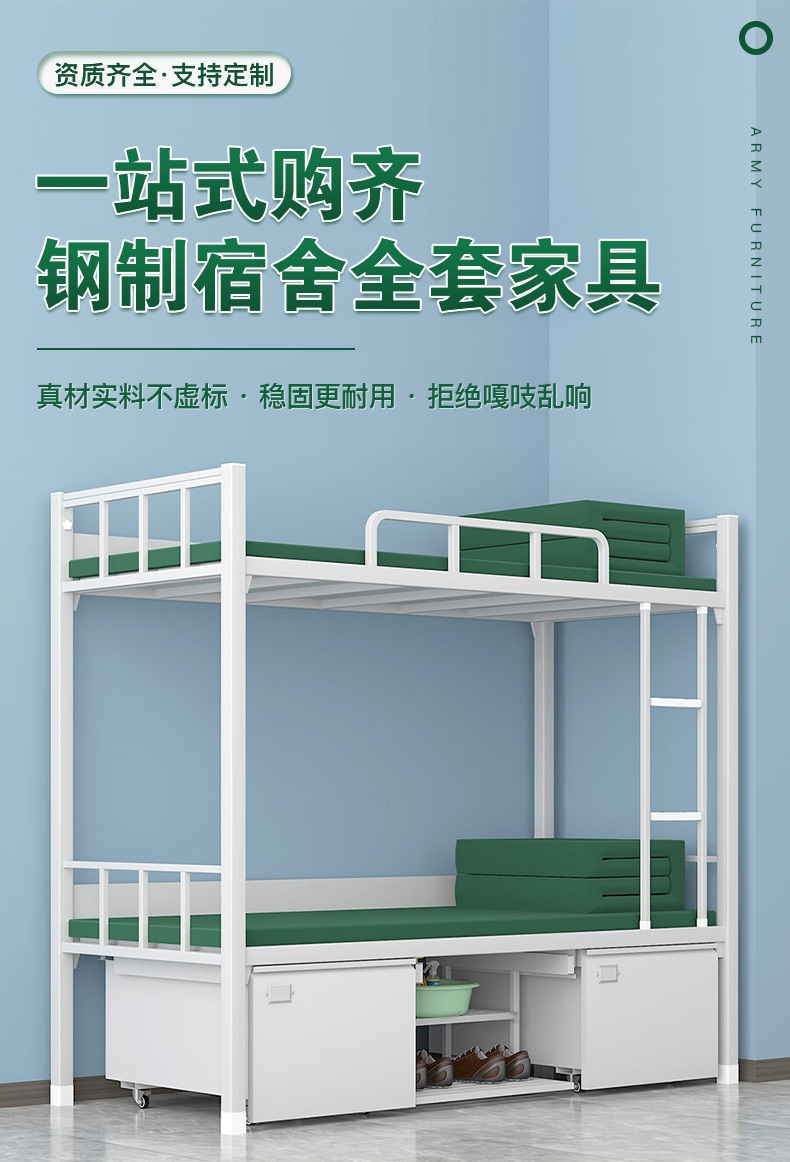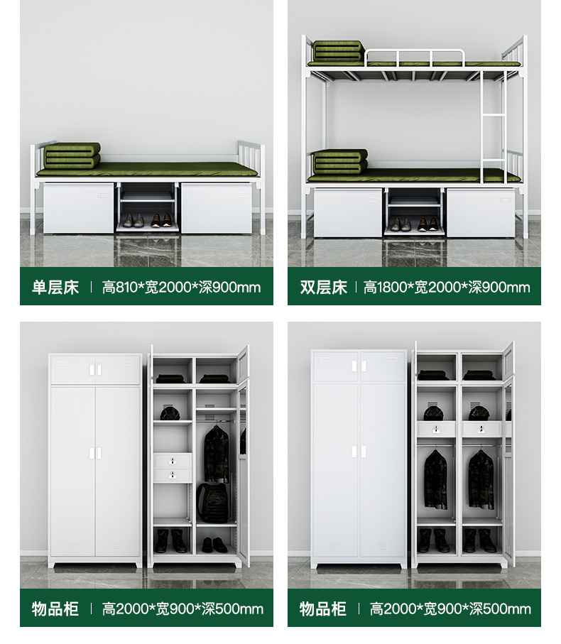 14款制式双层床营具单人床钢制上下铺带锁宿舍内务柜制式学习桌椅