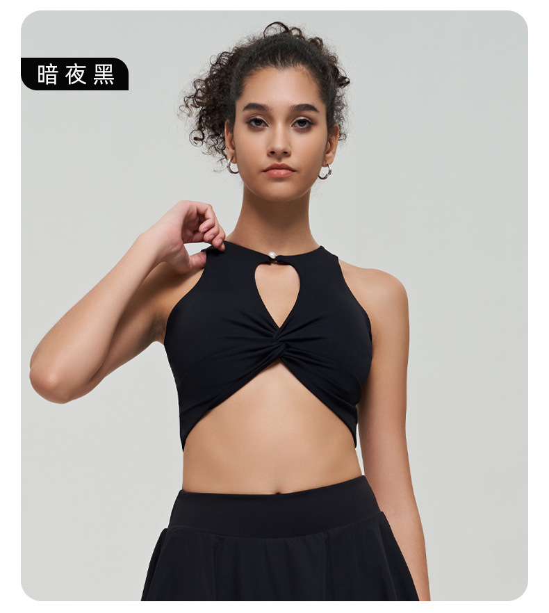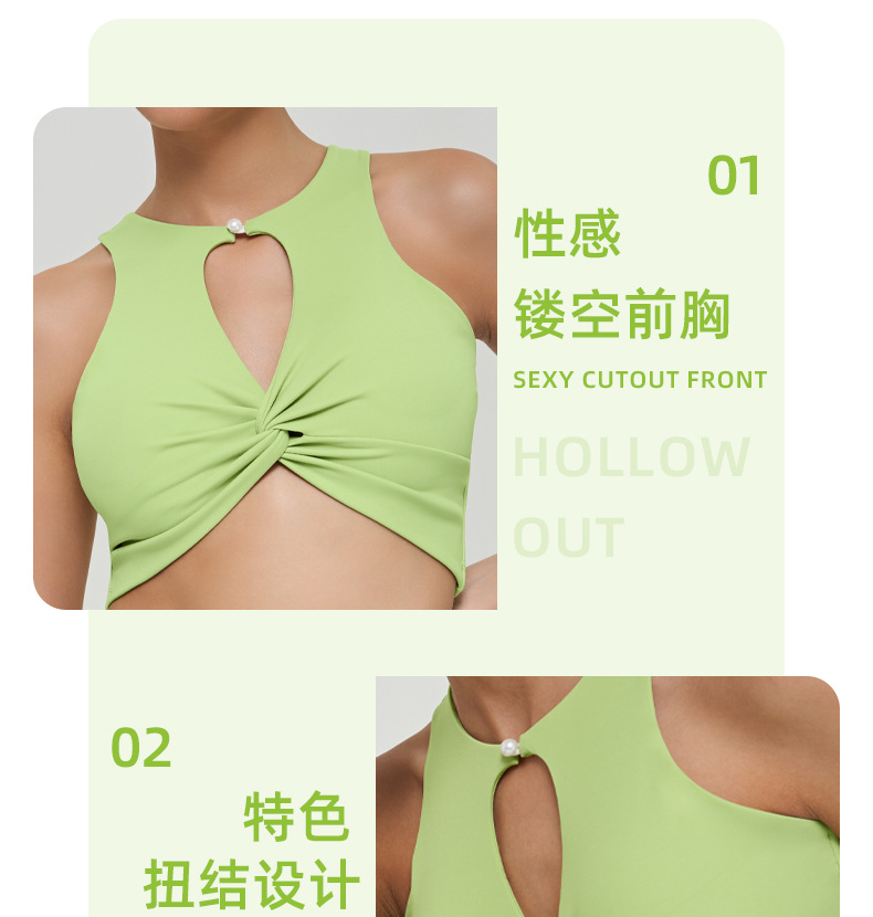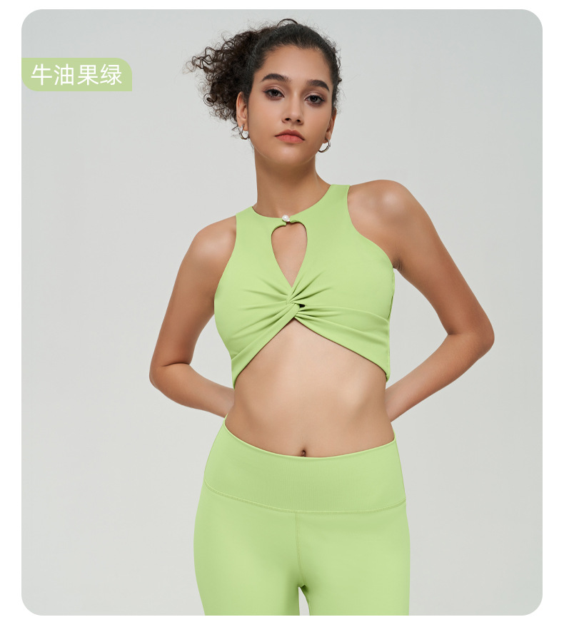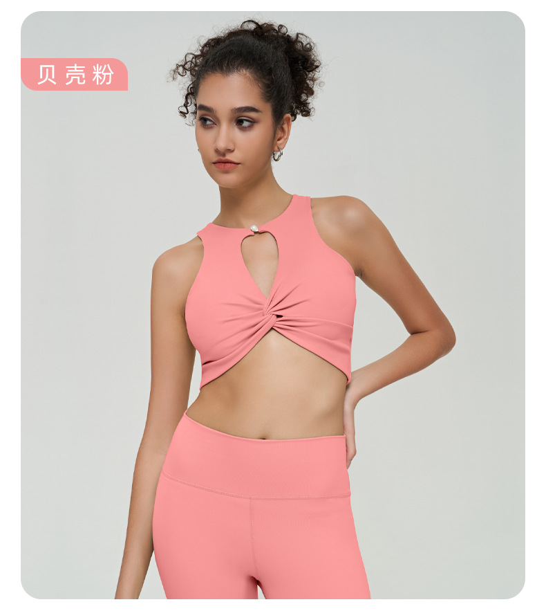 欧美新款扭结设计镂空上衣女运动美背背心普拉提健身瑜伽内衣批发