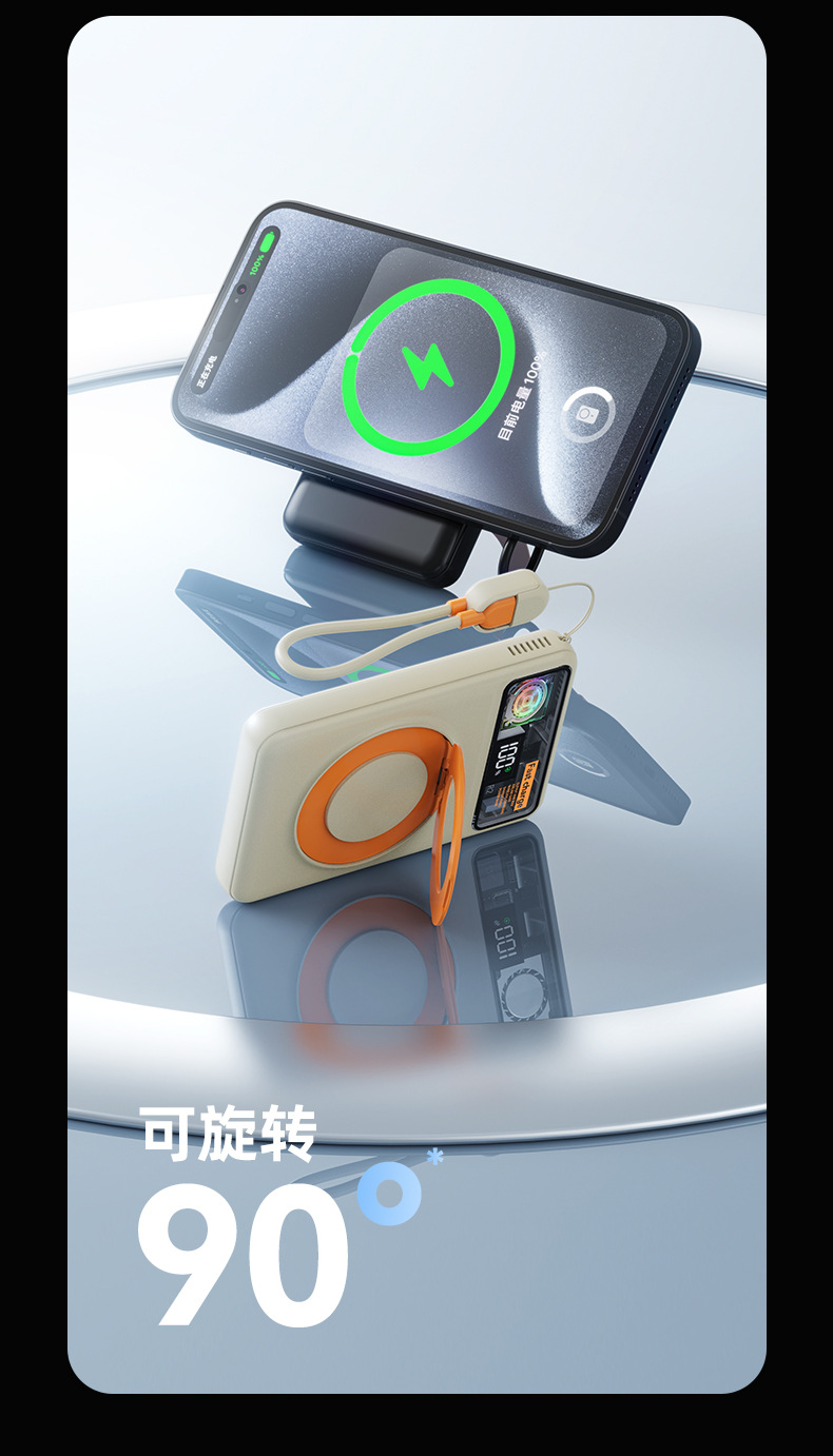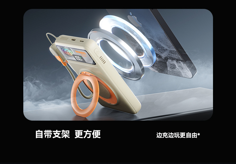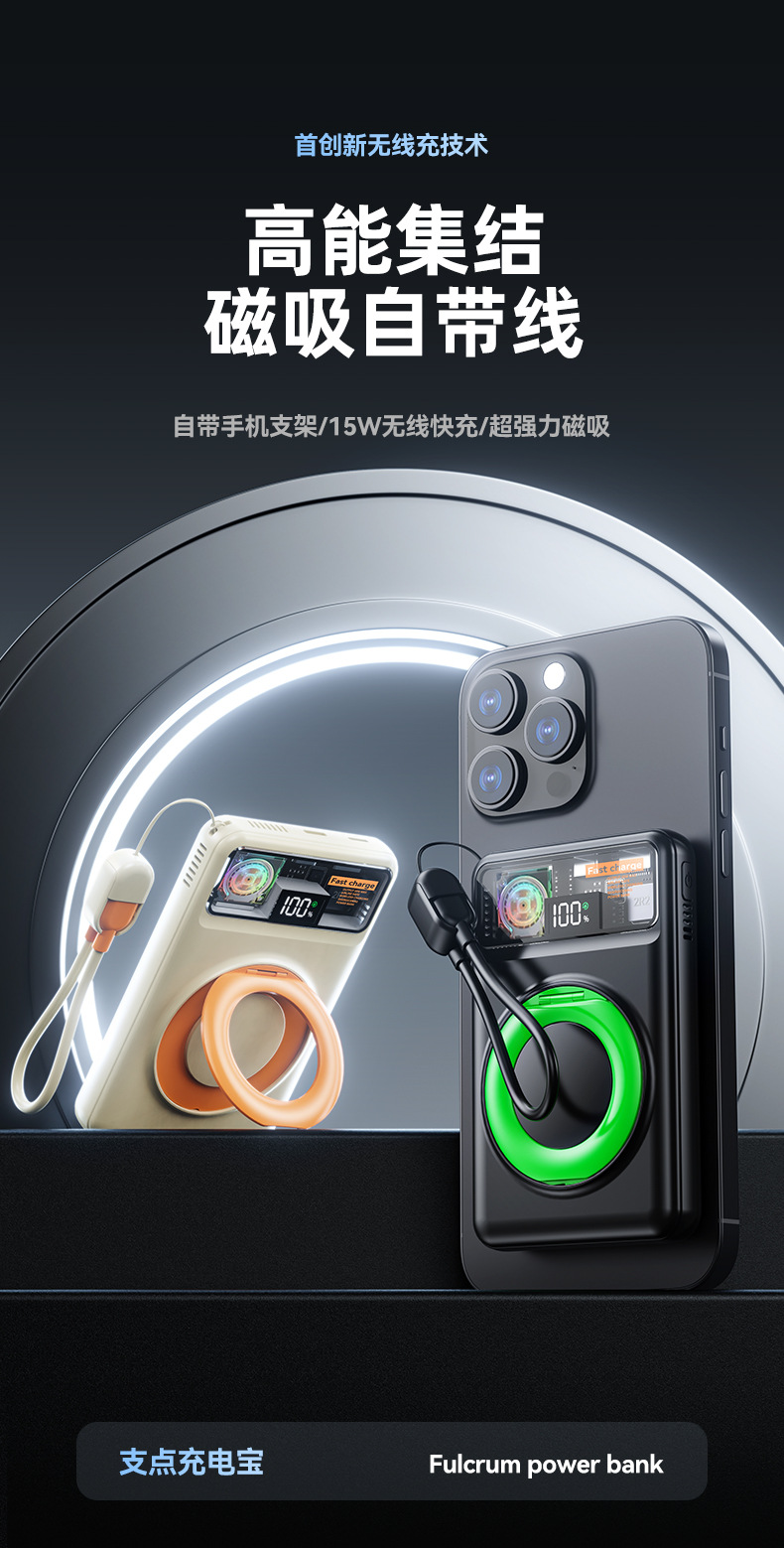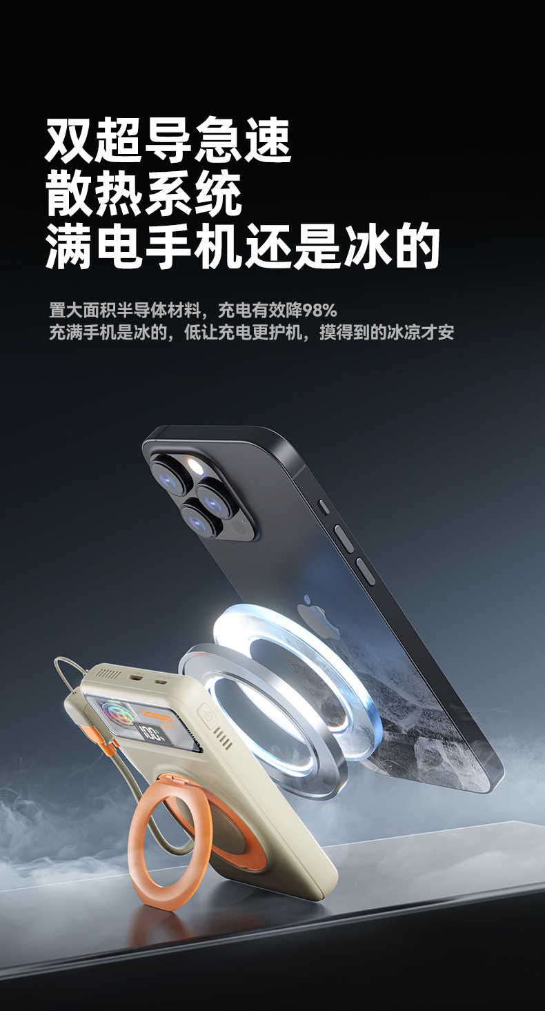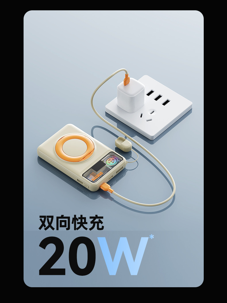 跨境磁吸支架快充22.5W散热充电宝自带可拆线10000毫安移动电源