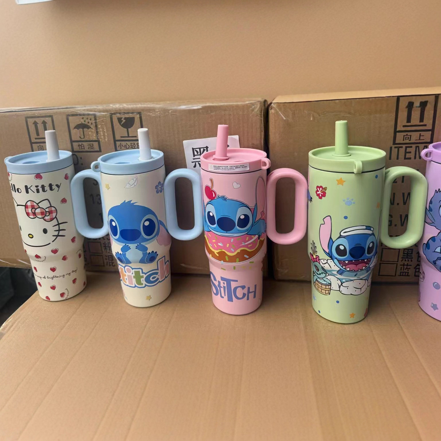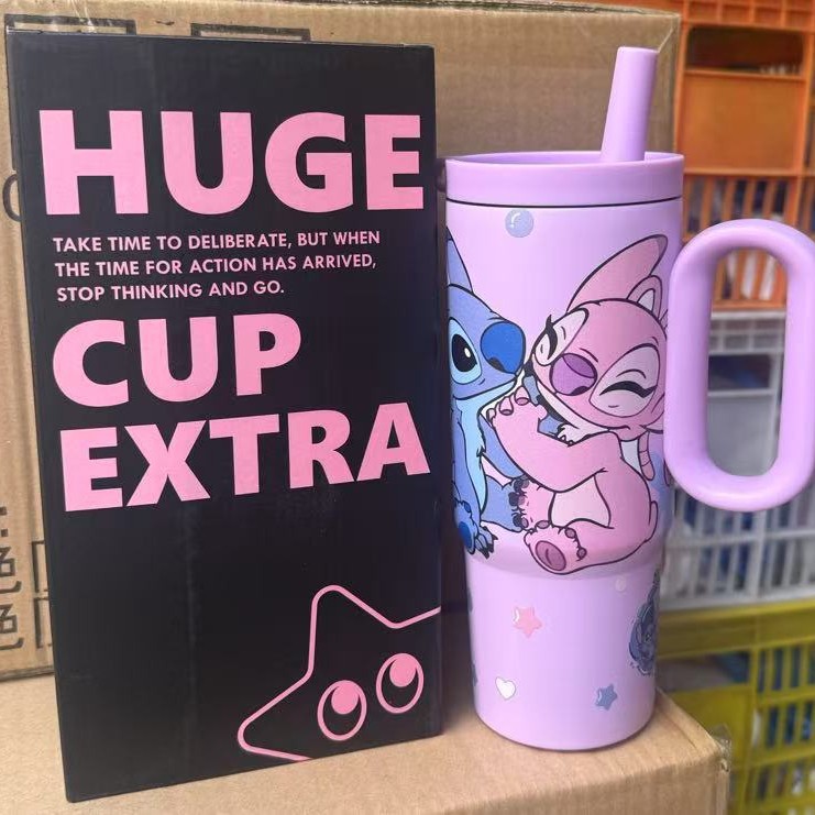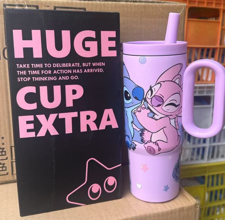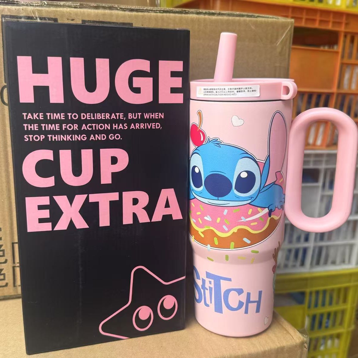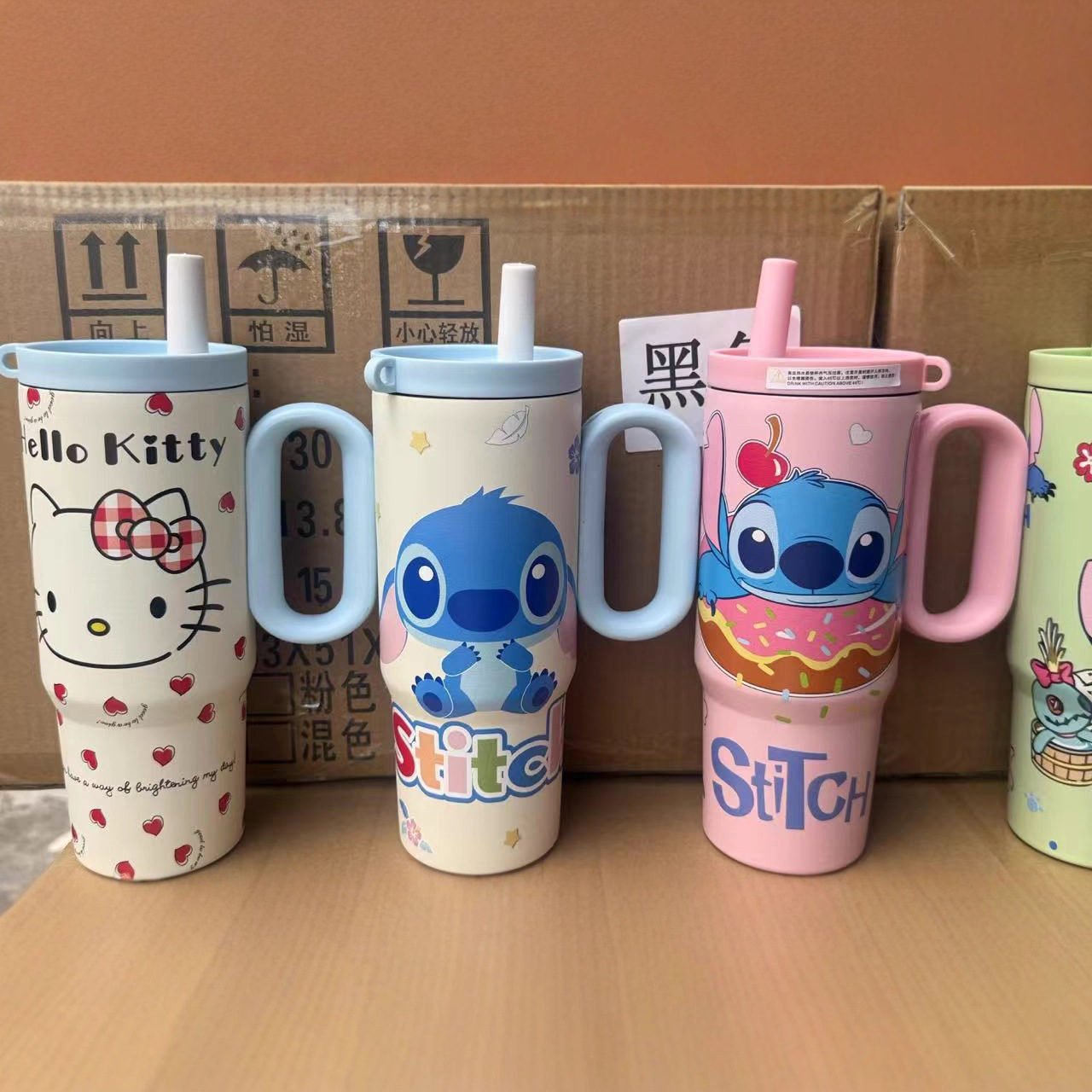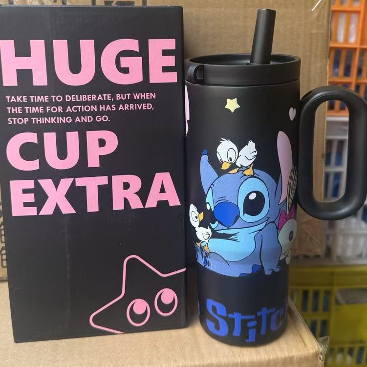 爆炸款男女生高颜值大容量水杯不锈钢吸管杯车载带把手冰霸杯