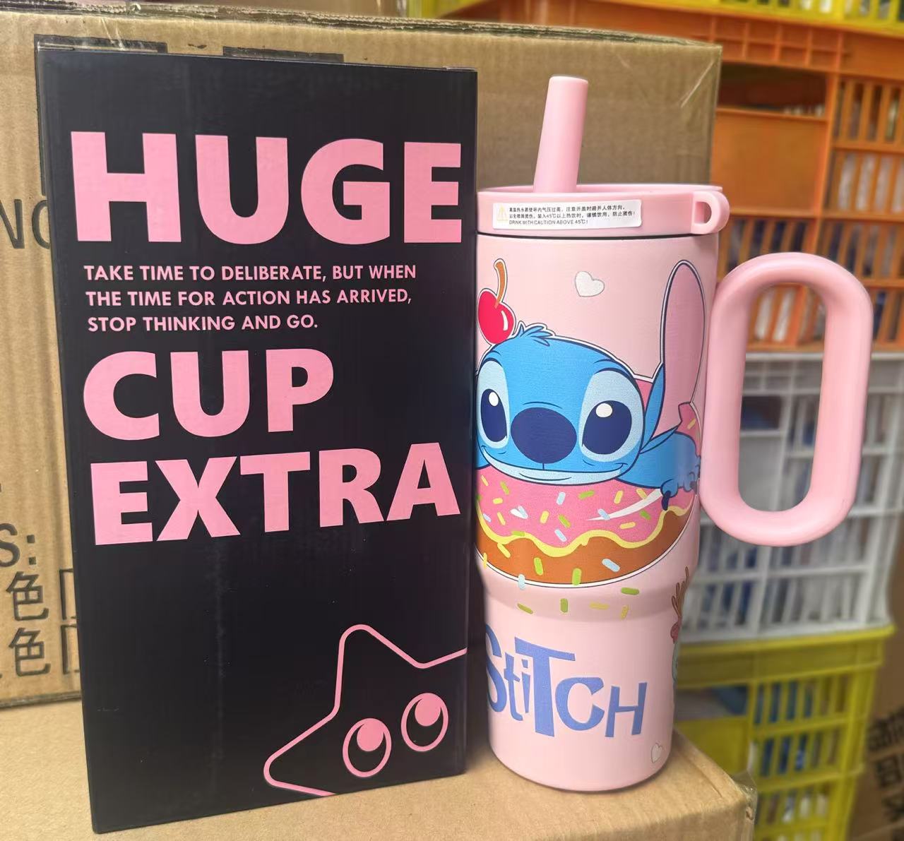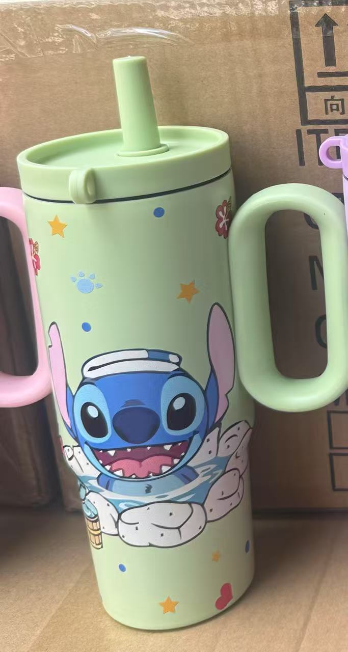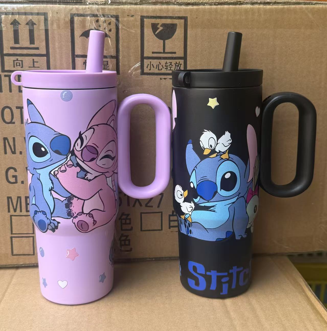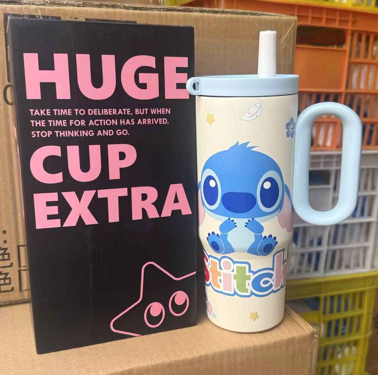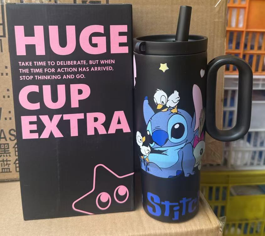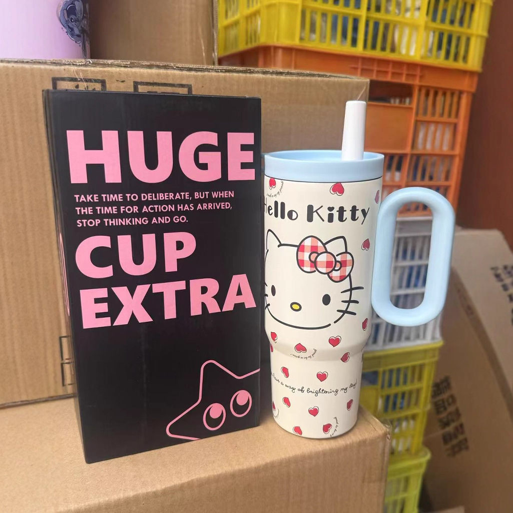 爆炸款男女生高颜值大容量水杯不锈钢吸管杯车载带把手冰霸杯