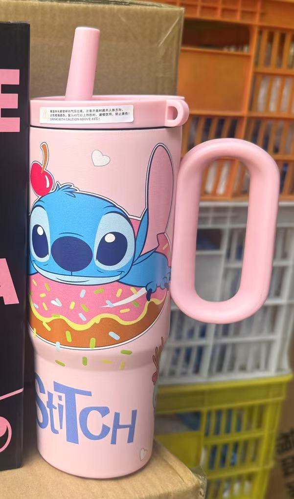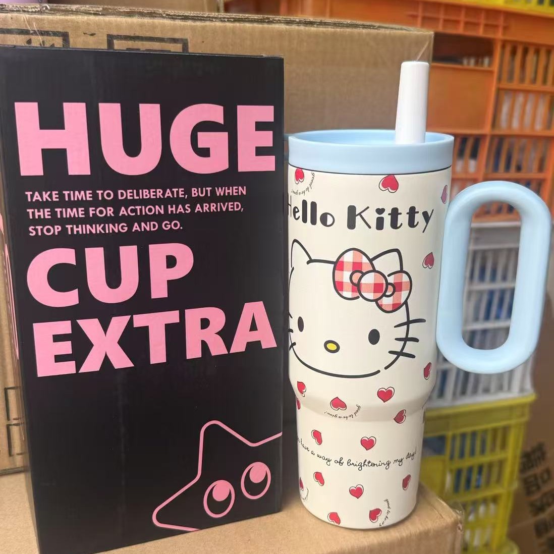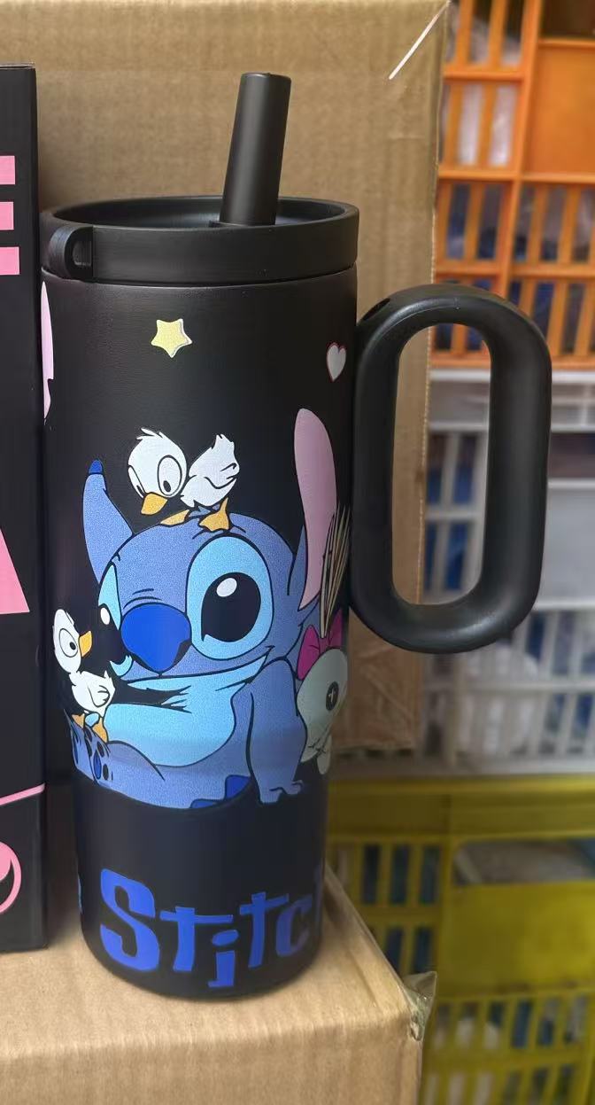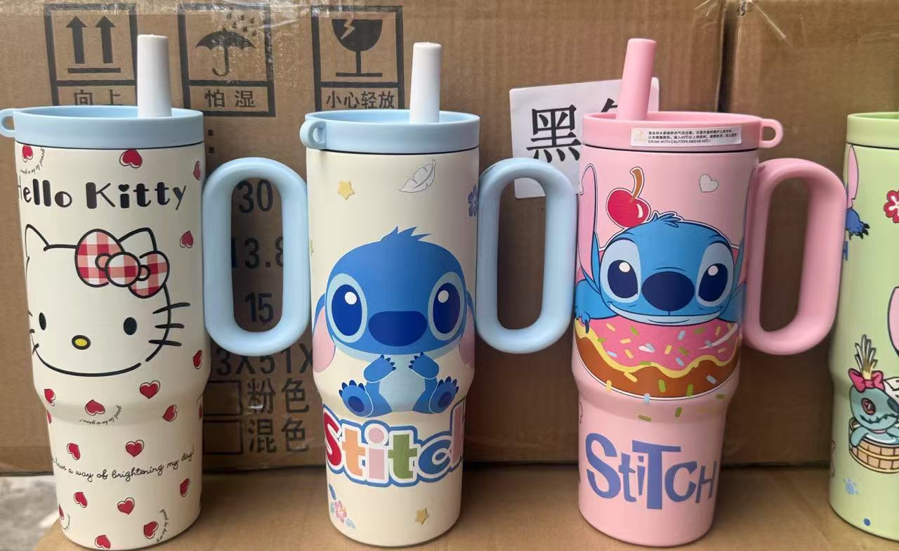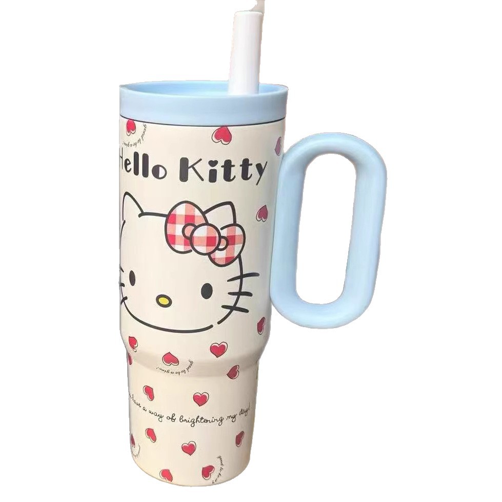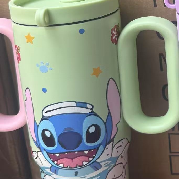爆炸款男女生高颜值大容量水杯不锈钢吸管杯车载带把手冰霸杯