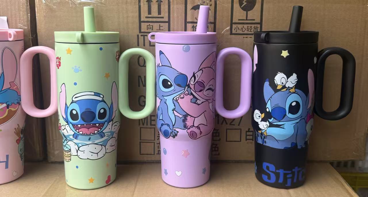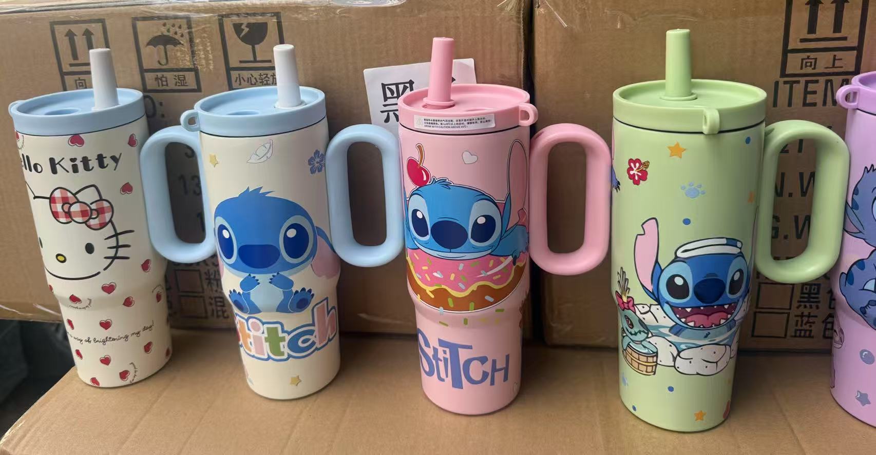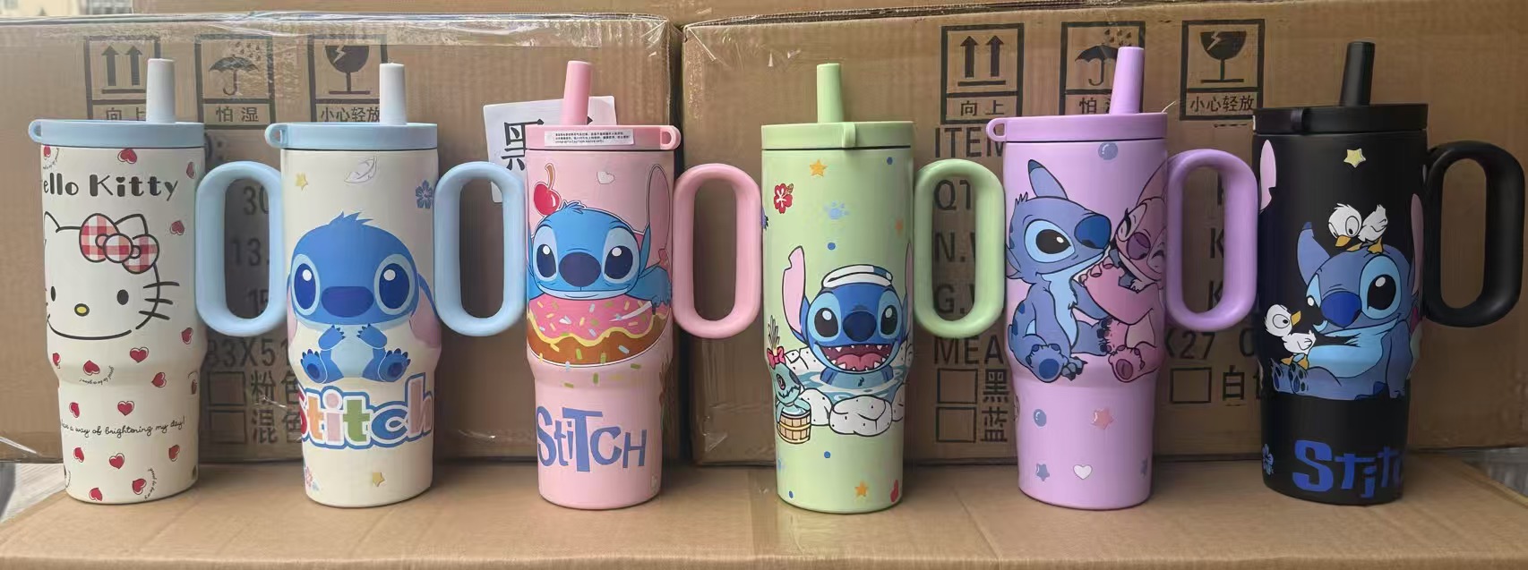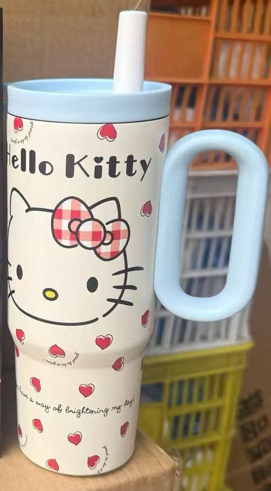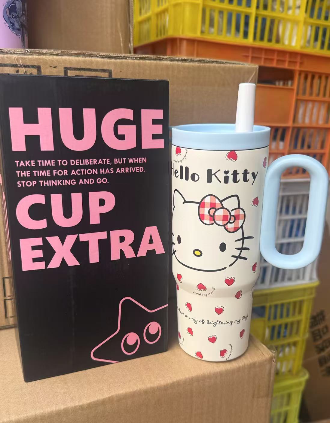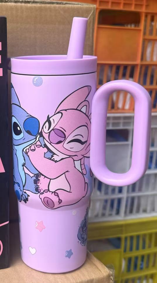 爆炸款男女生高颜值大容量水杯不锈钢吸管杯车载带把手冰霸杯