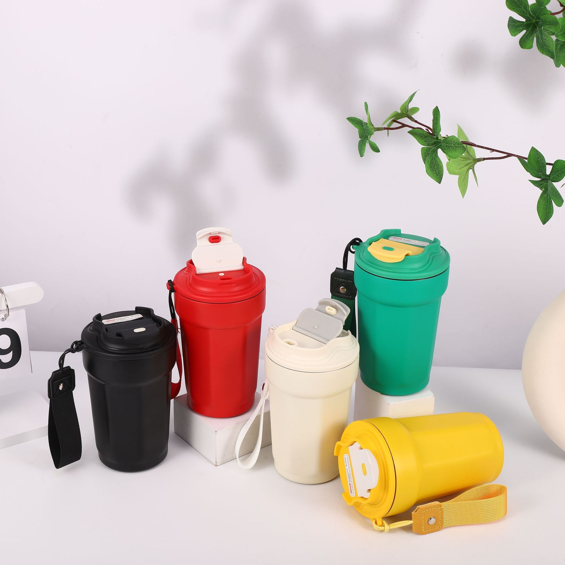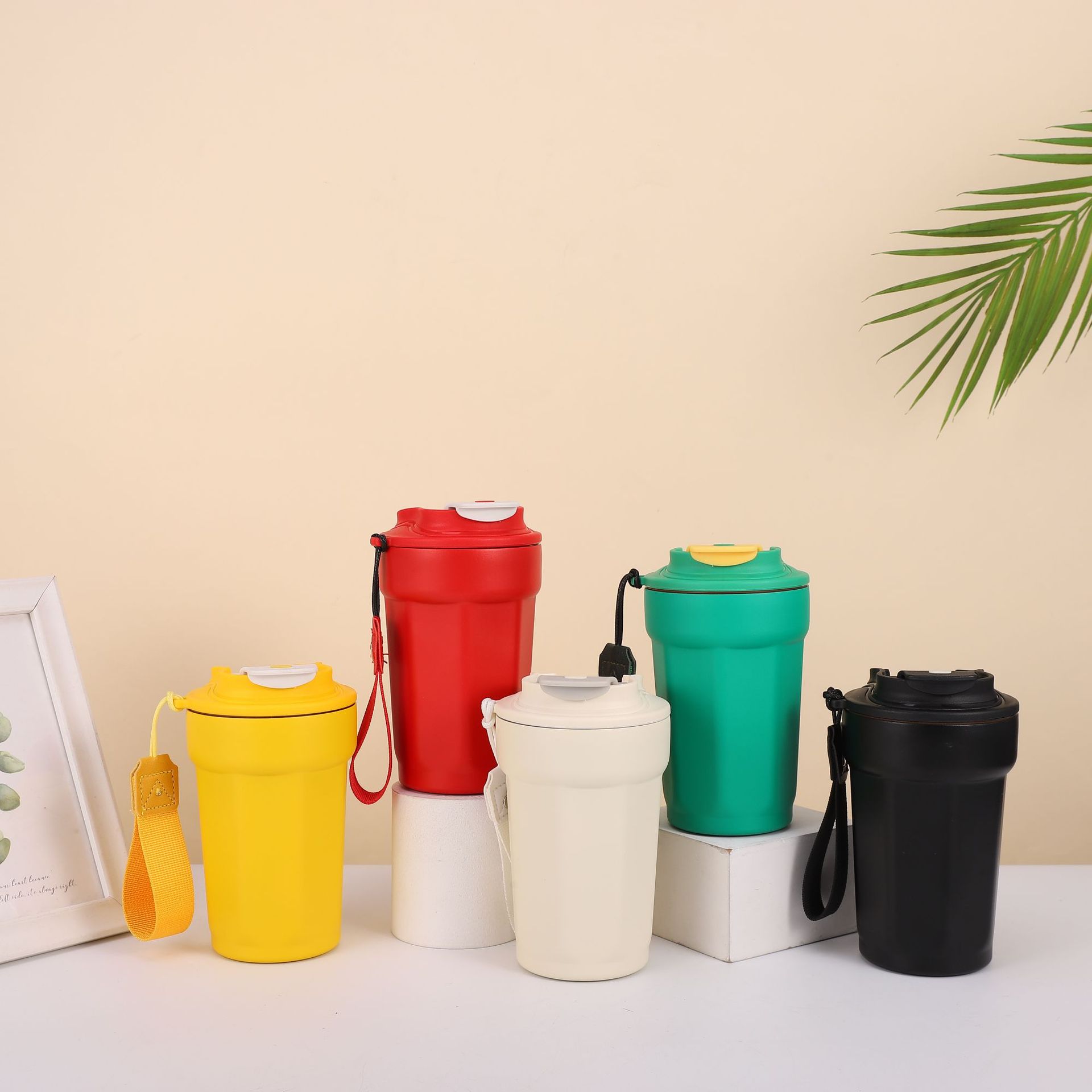 八角菱形咖啡杯扣盖316不锈钢保温杯办公休闲款随手杯便携式