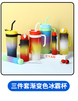 三件套渐变色冰霸杯大容量汽车便携手柄塑料水杯带吸管双饮车载杯