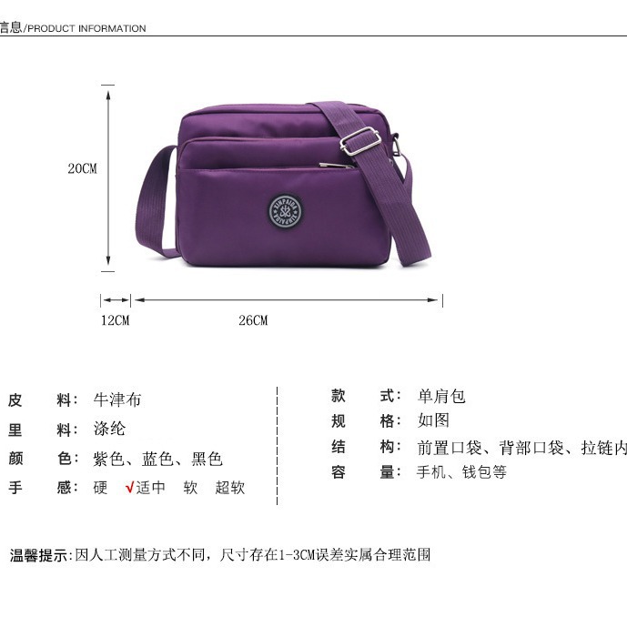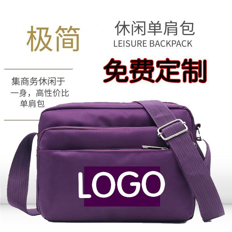 批发印制LOGO单肩斜挎包休闲小方包牛津布包四层拉链中年妈咪包