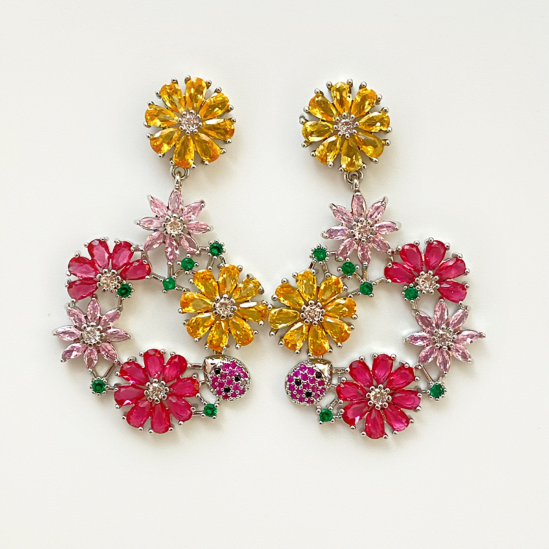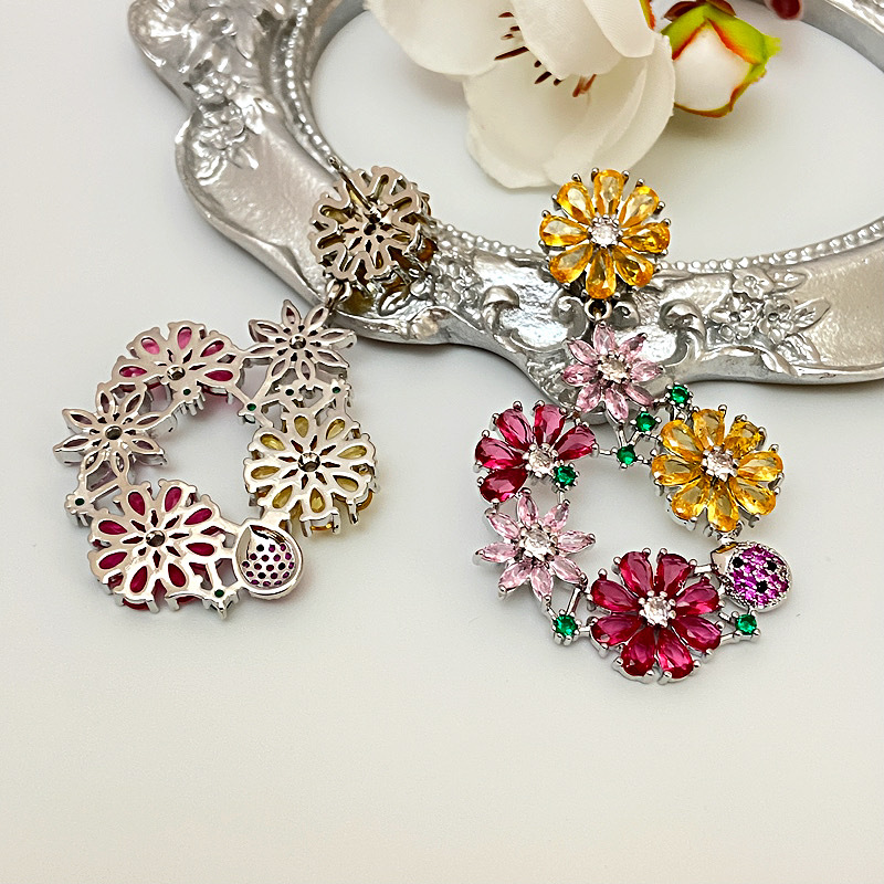 跨境甜美彩色锆石花朵耳环女高级感银针耳钉轻奢个性时尚耳饰批发