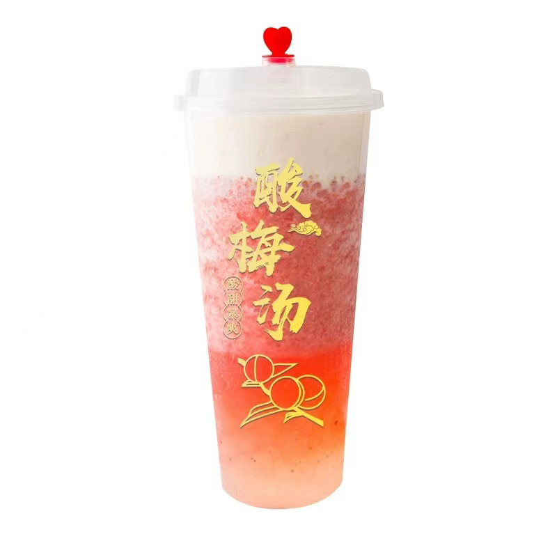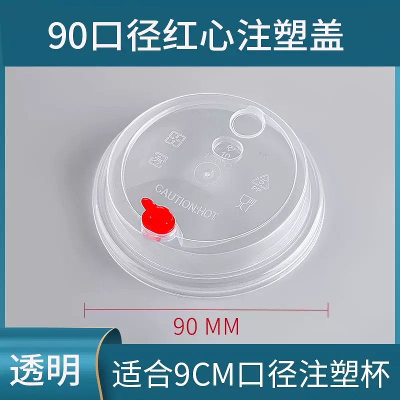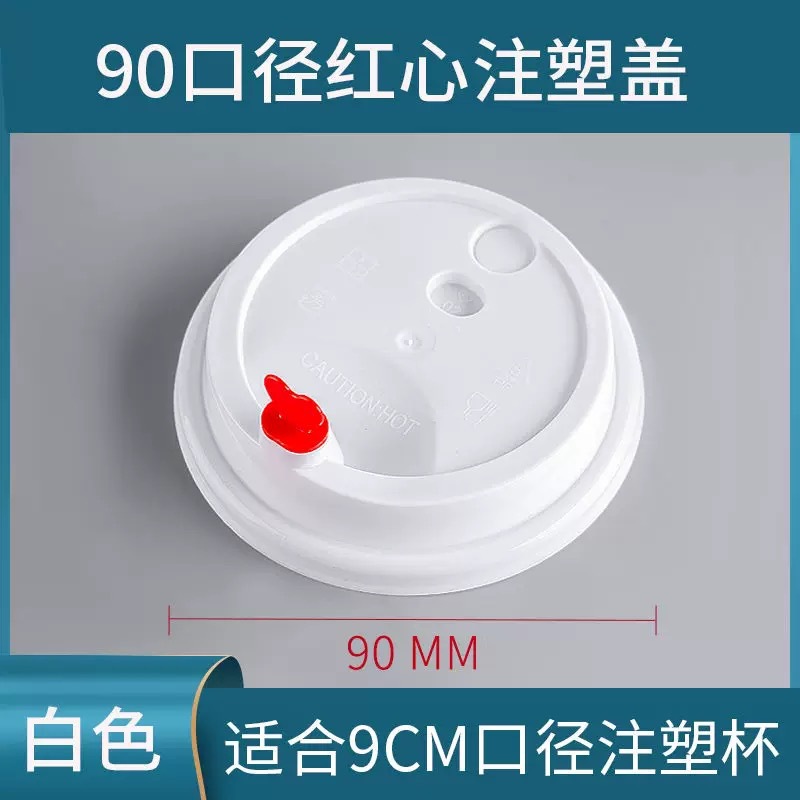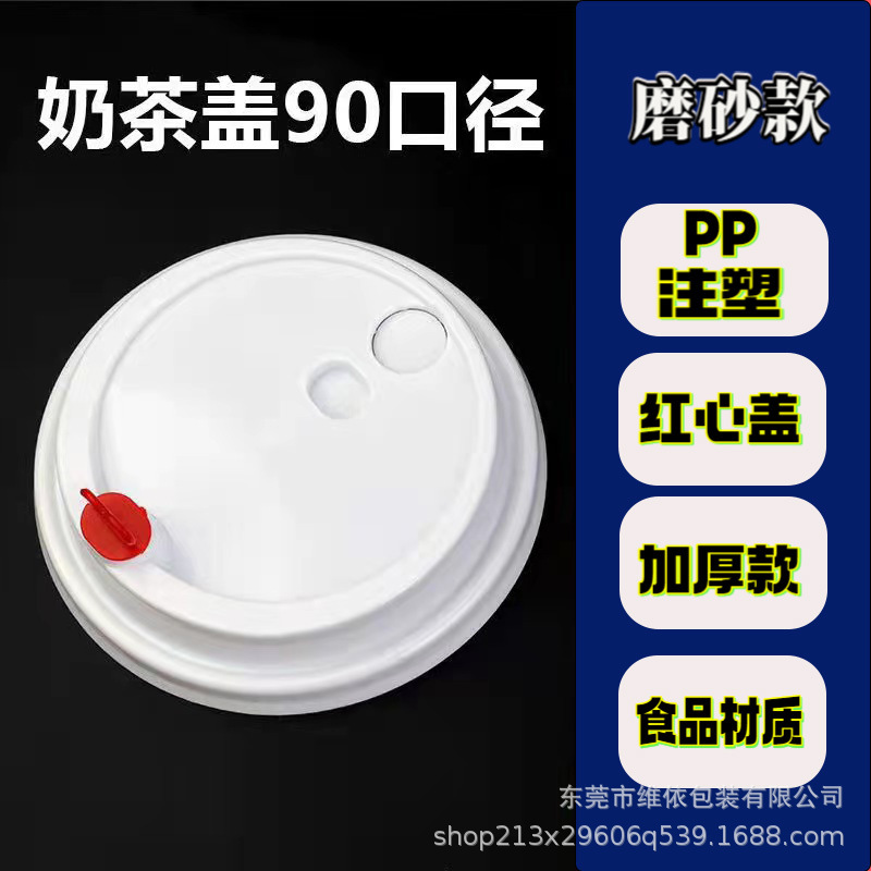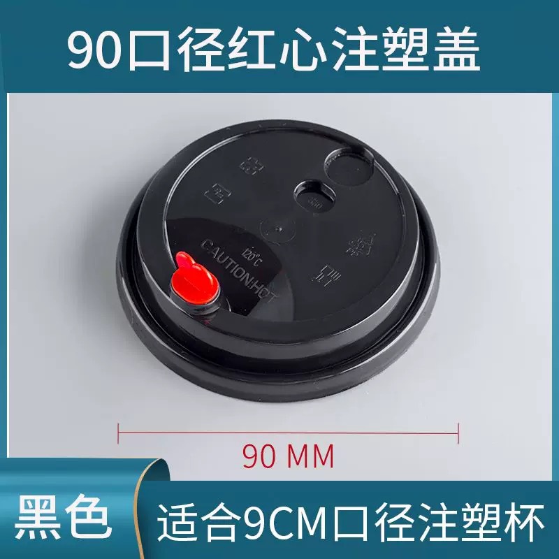 一次性90口径连体防漏盖注塑杯盖磨砂防漏盖奶茶杯子红色心塞通用